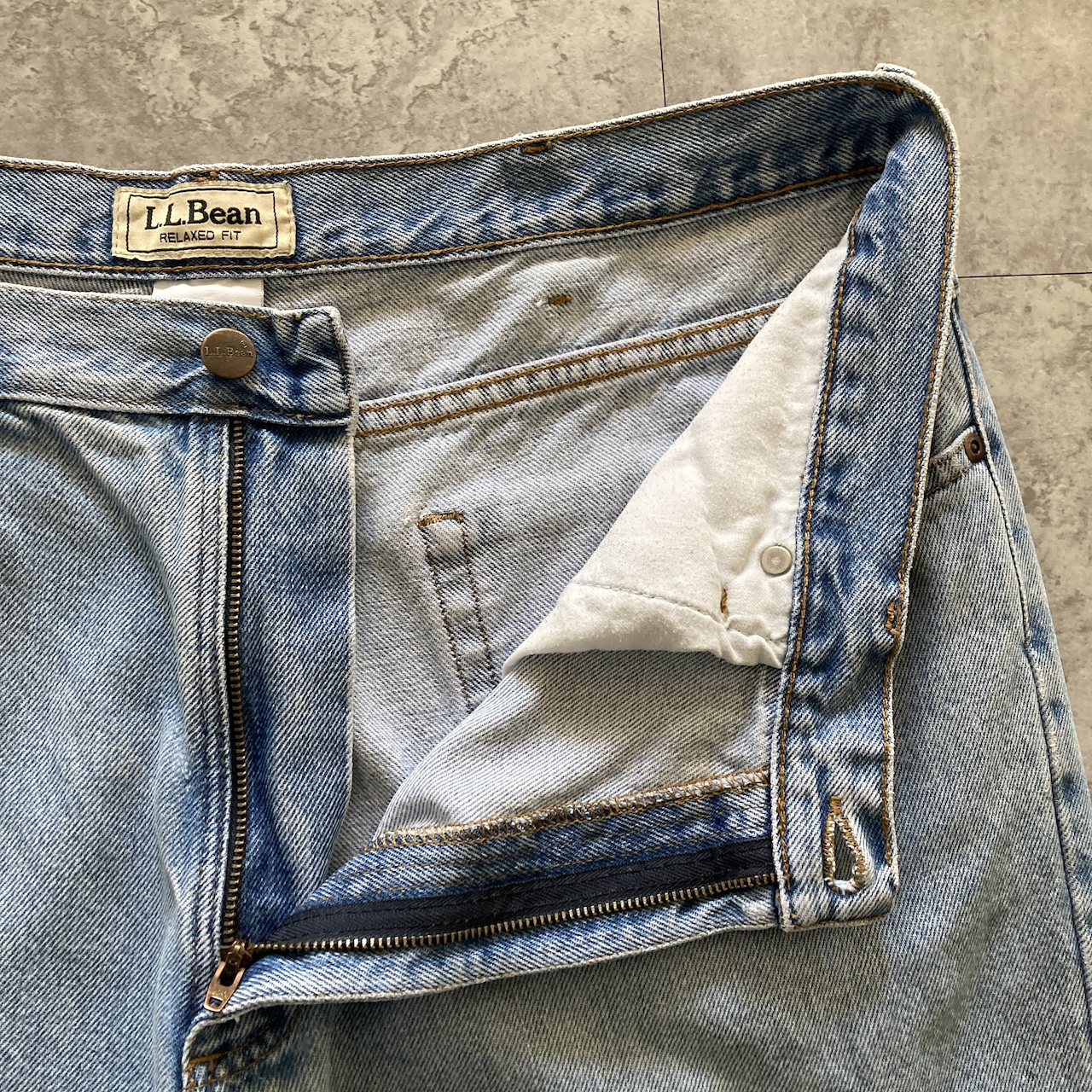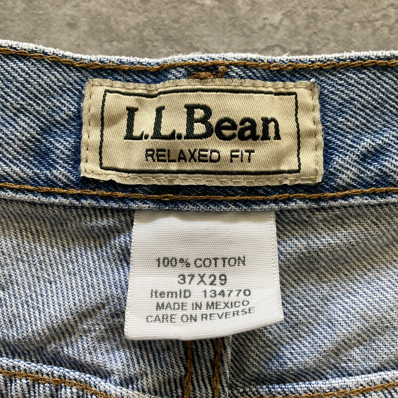【37×29】L.L.Bean エルエルビーン ジップフライ レザーパッチ ワイドデニム バギーパンツ ジーンズ