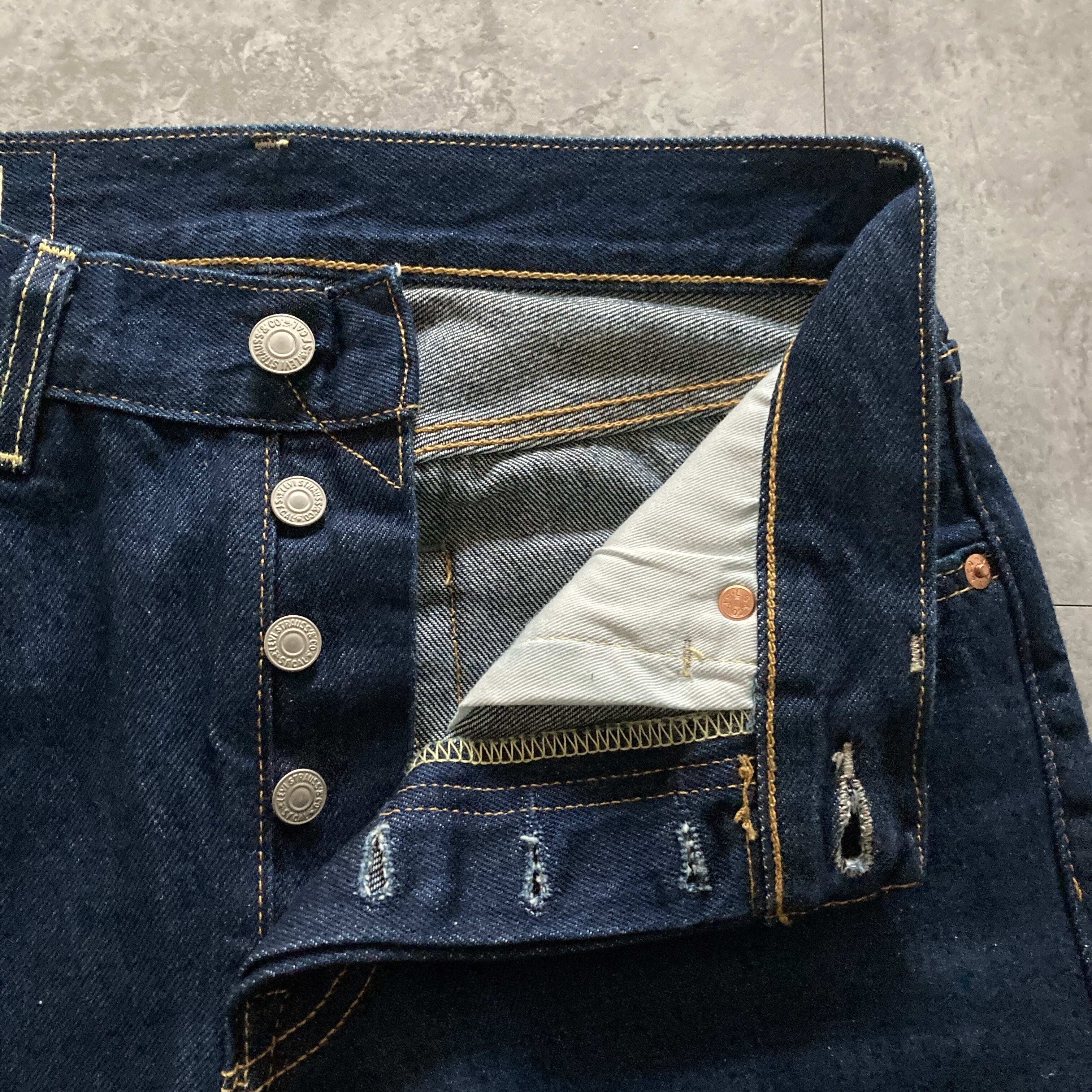 【美品 W28 L32】Levis 501 ‘54 リーバイス PREMIUM ボタンフライ BIGE レザーパッチ チェーンステッチ 濃紺 デニムパンツ ジーンズ