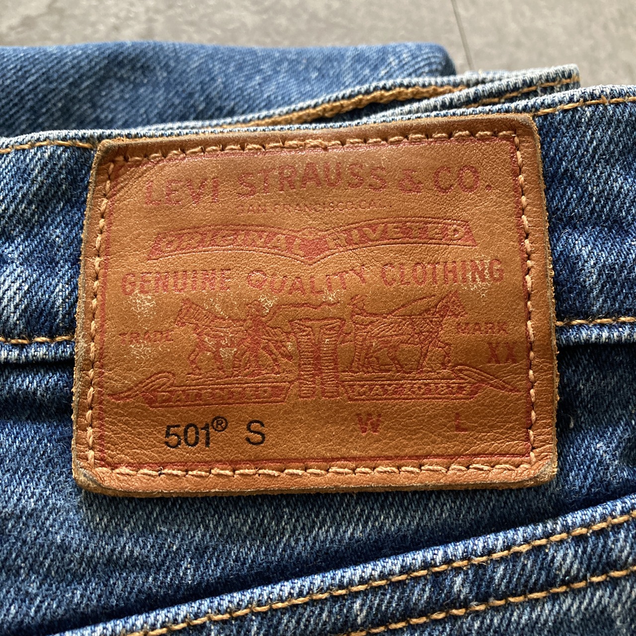 【W32 L30】Euro Levis 501 ユーロリーバイス PREMIUM トルコ製 ボタンフライ BIGE レザーパッチ デニムパンツ ジーンズ