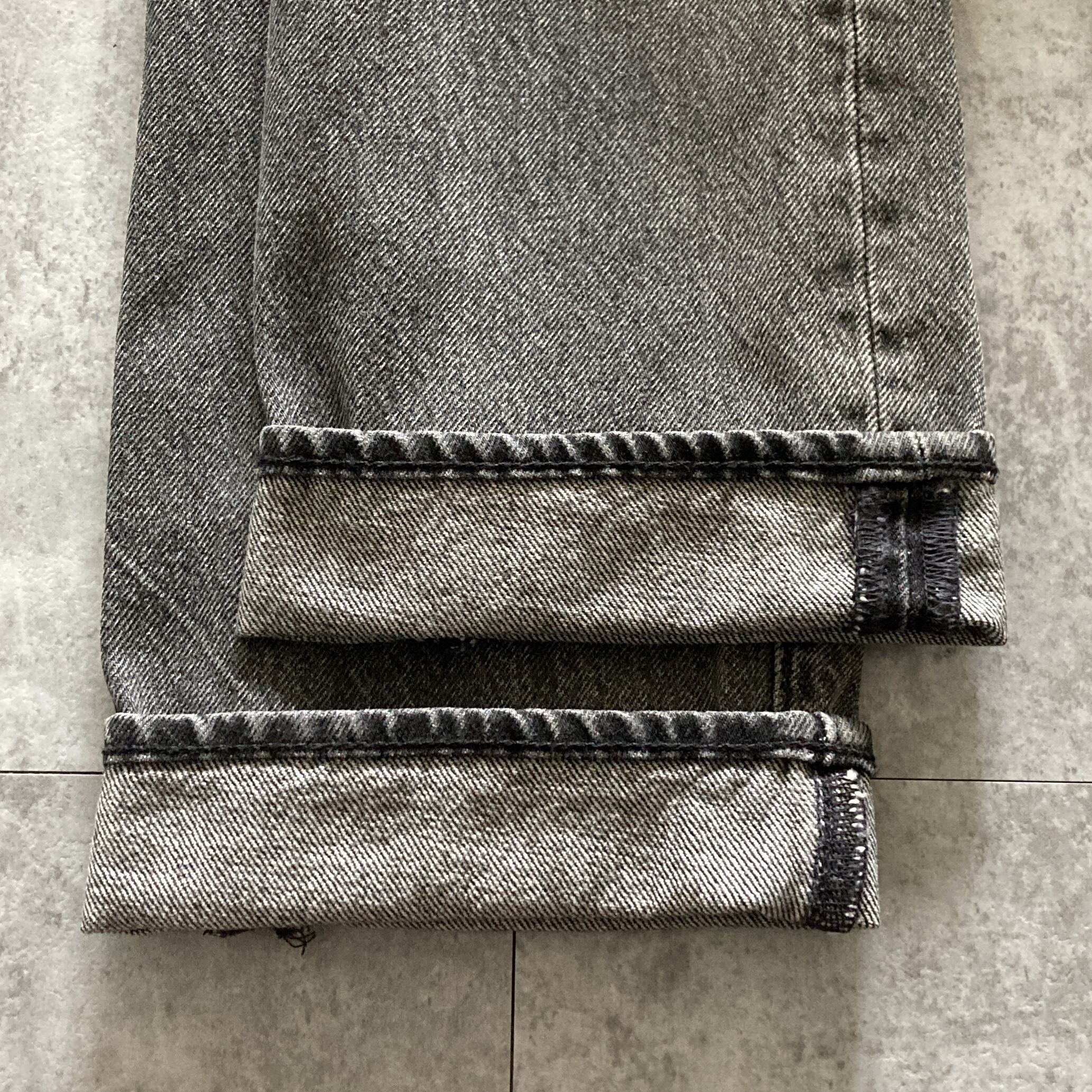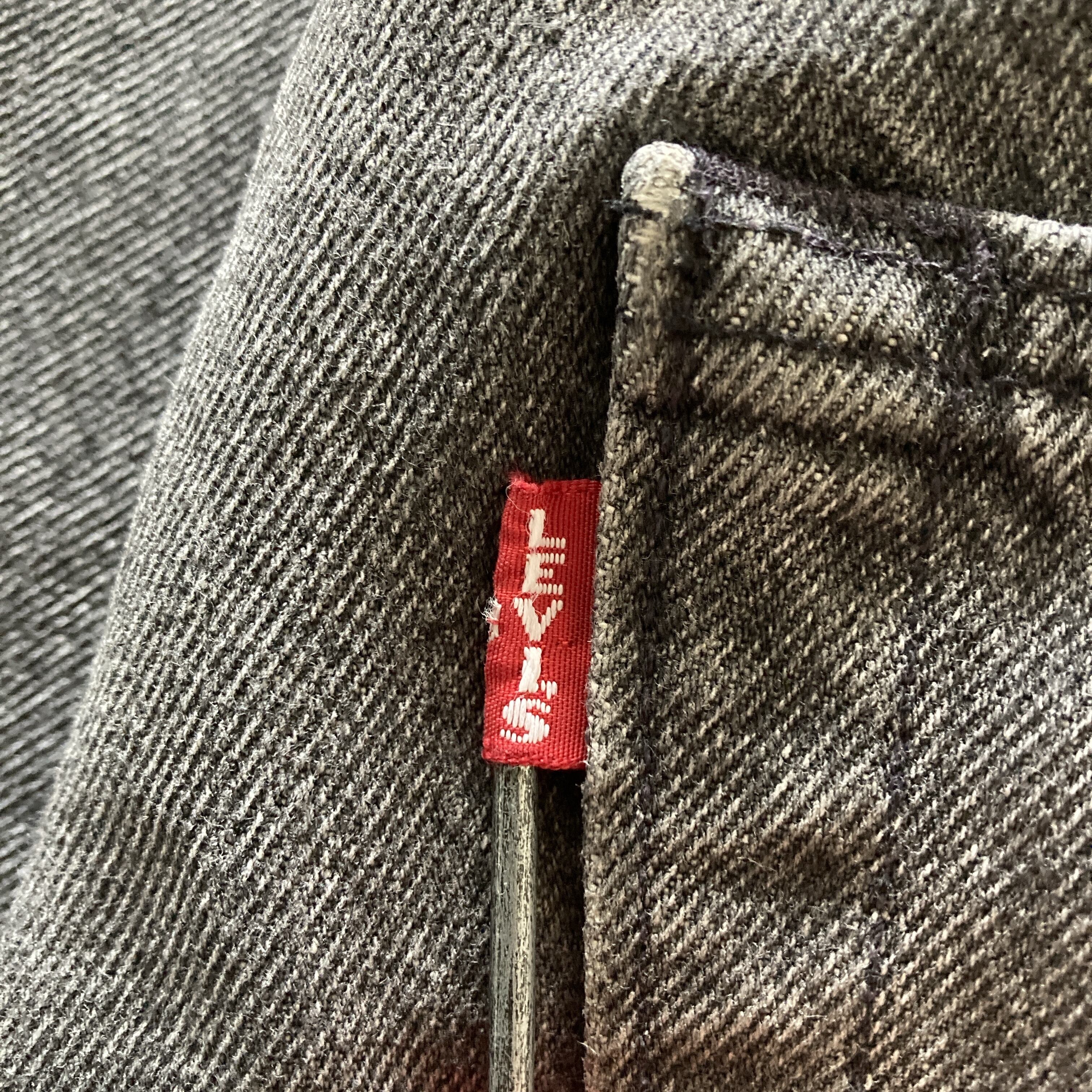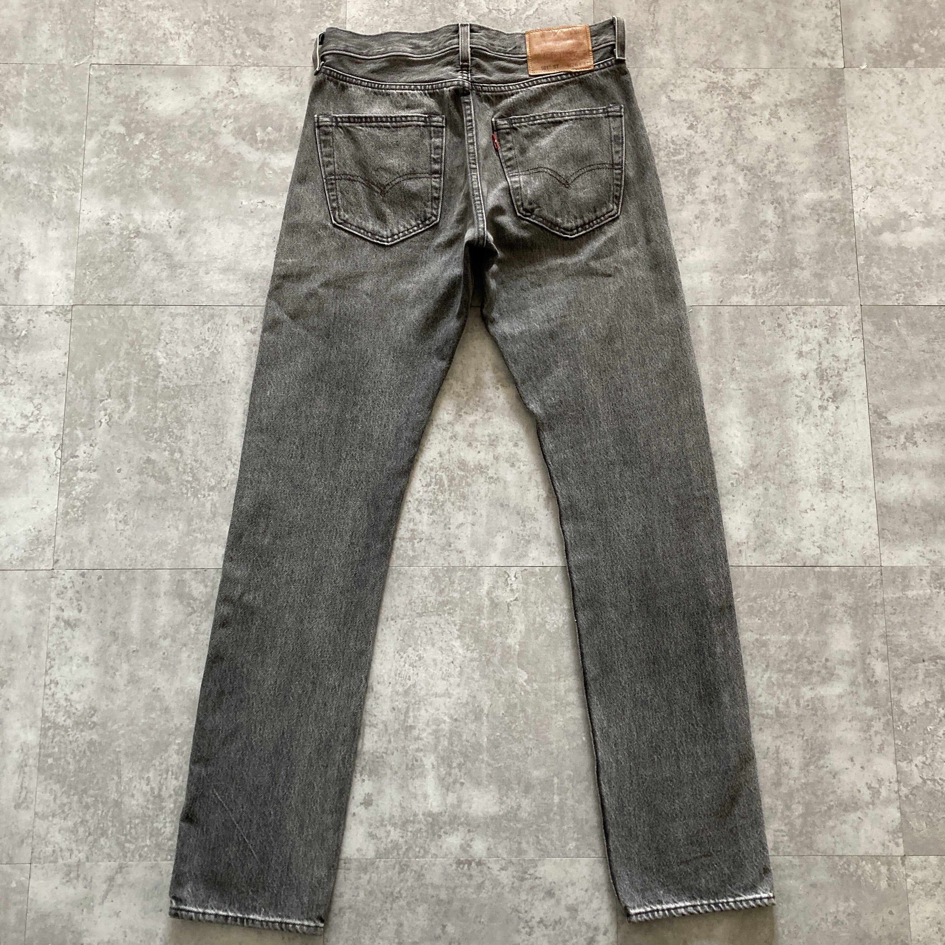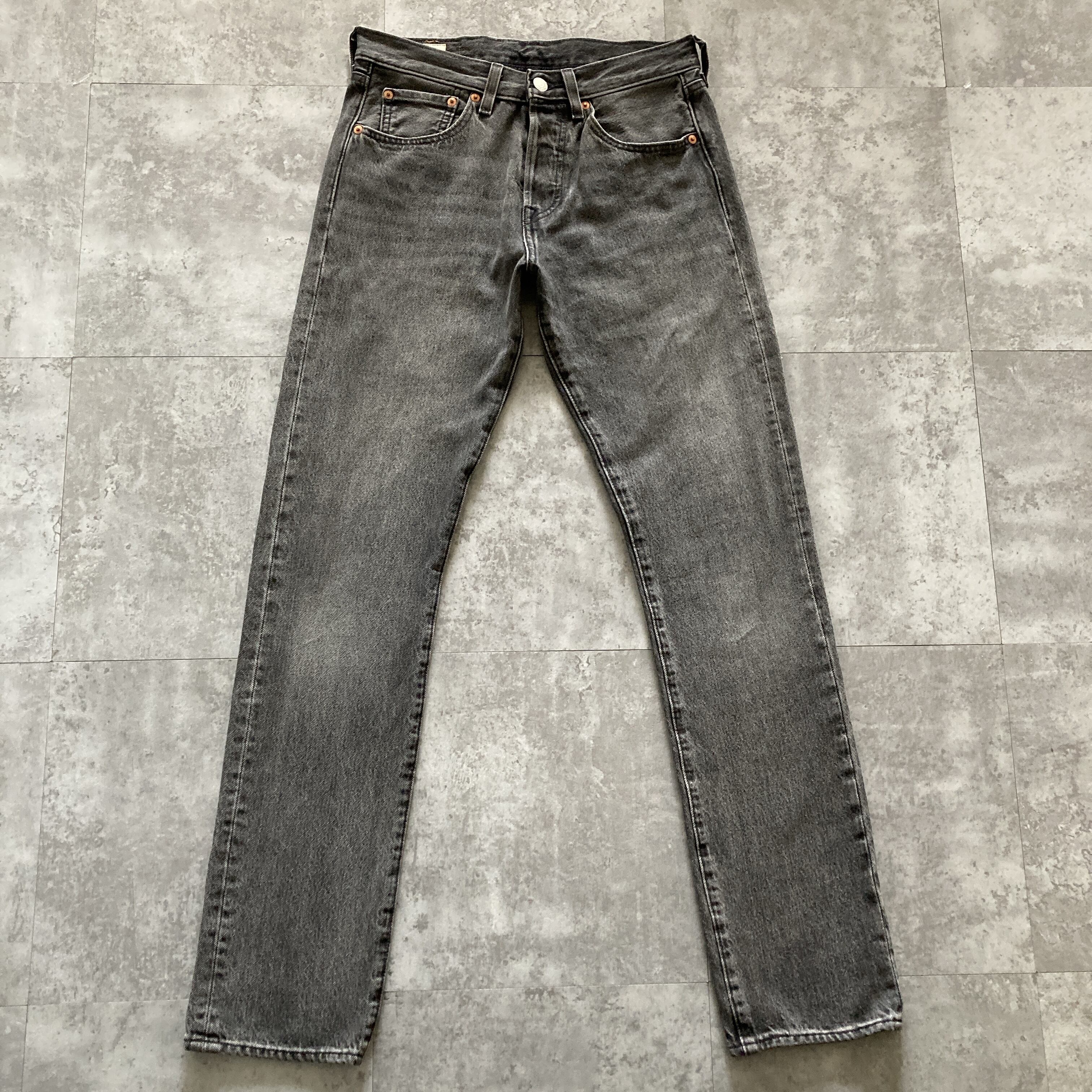 【W28 L32】Levis 501 PREMIUM リーバイス BIG E レザーパッチ チェーンステッチ ボタンフライ 先染めブラック デニムパンツ ジーンズ