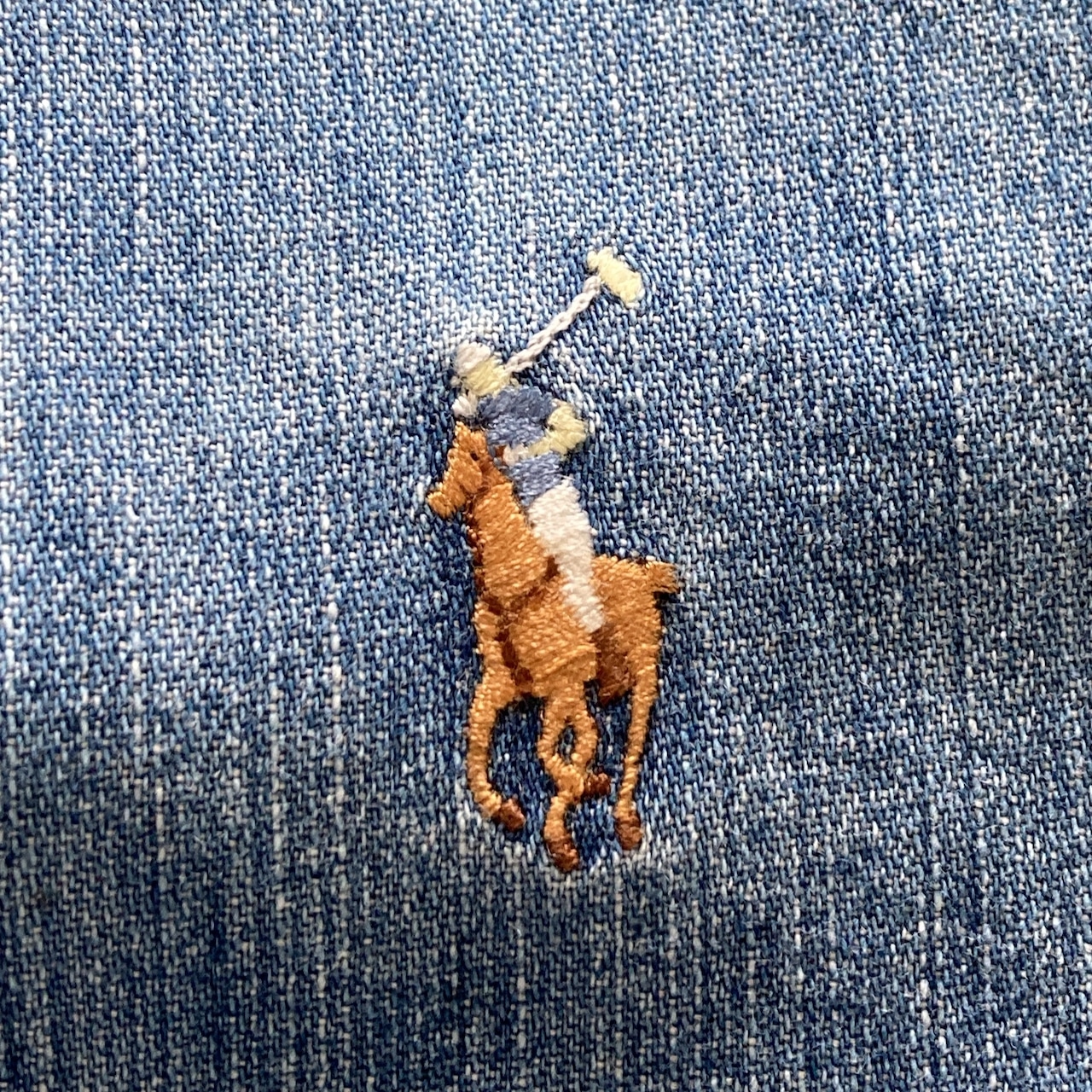 【size L】RALPH LAUREN ラルフローレン ワンポイント ロゴ刺繍 カラーポニー シャンブレーシャツ/デニムシャツ