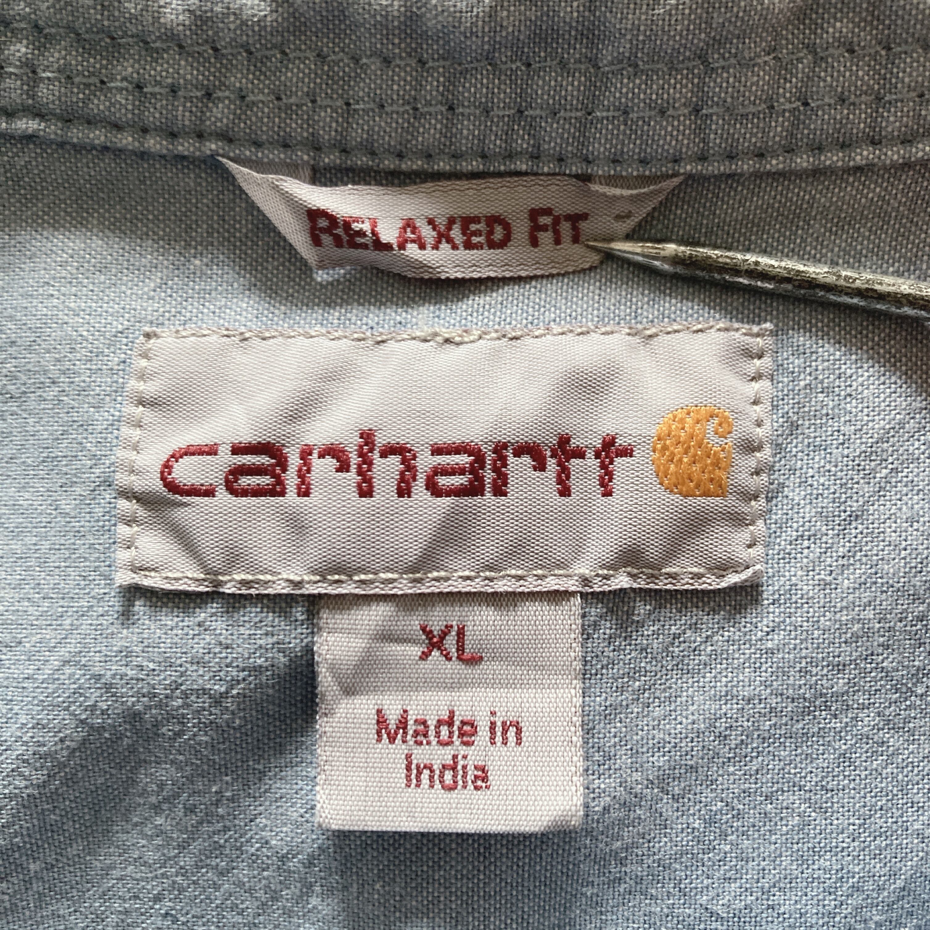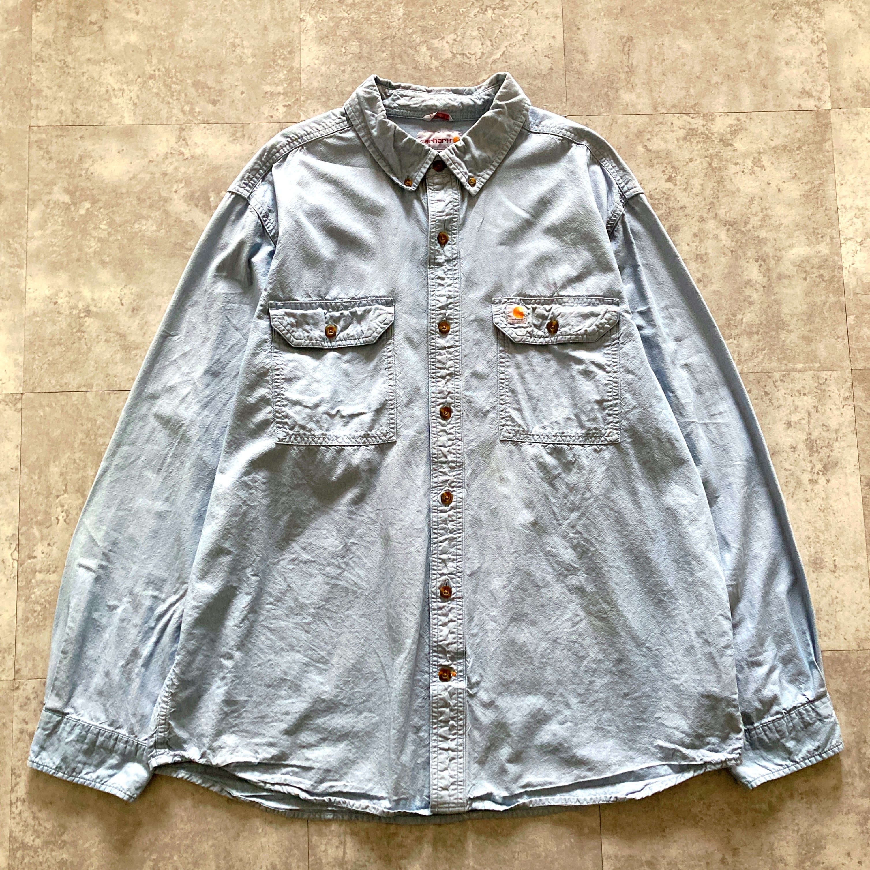 【size XL】carhartt カーハート ワンポイント ロゴ刺繍 胸ポケット ビッグサイズ シャンブレーシャツ/デニムシャツ