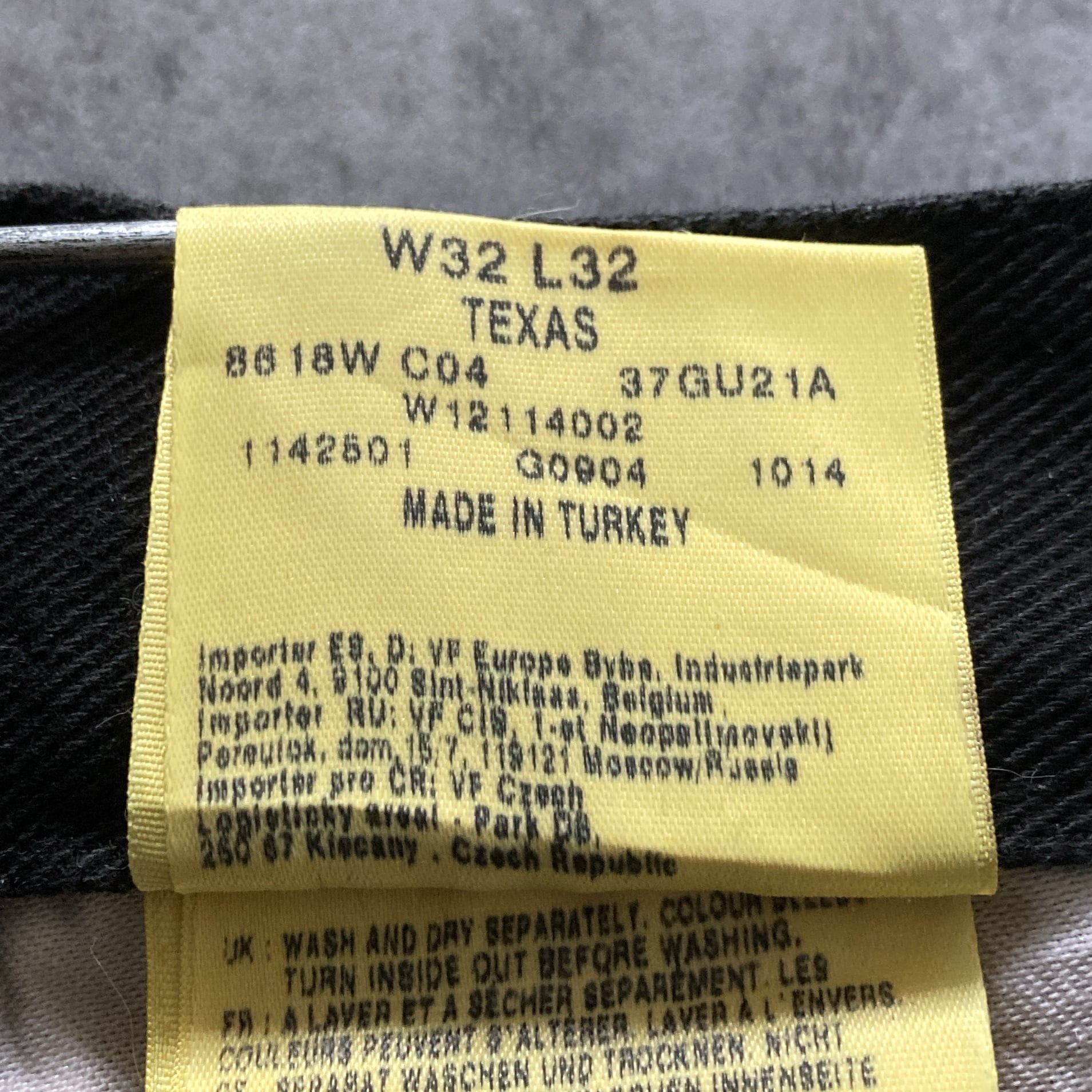 【W32 L32】Euro Wrangler ラングラー トルコ製 ジッパーフライ レザーパッチ ブラックデニム ジーンズ