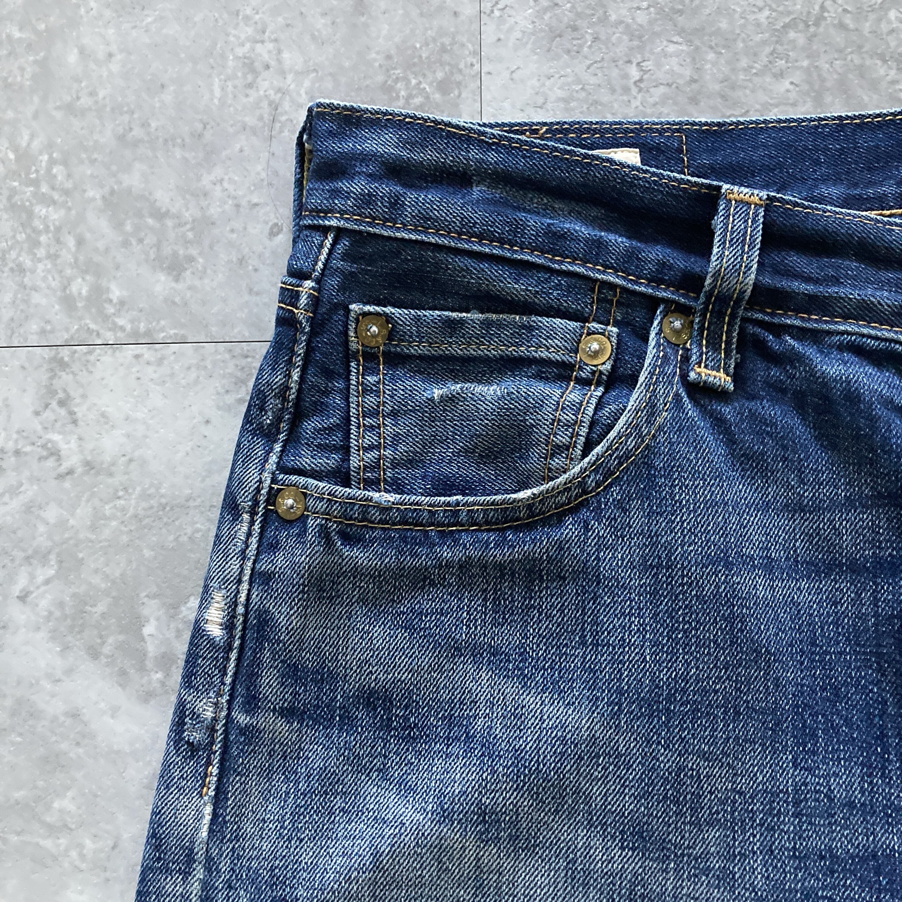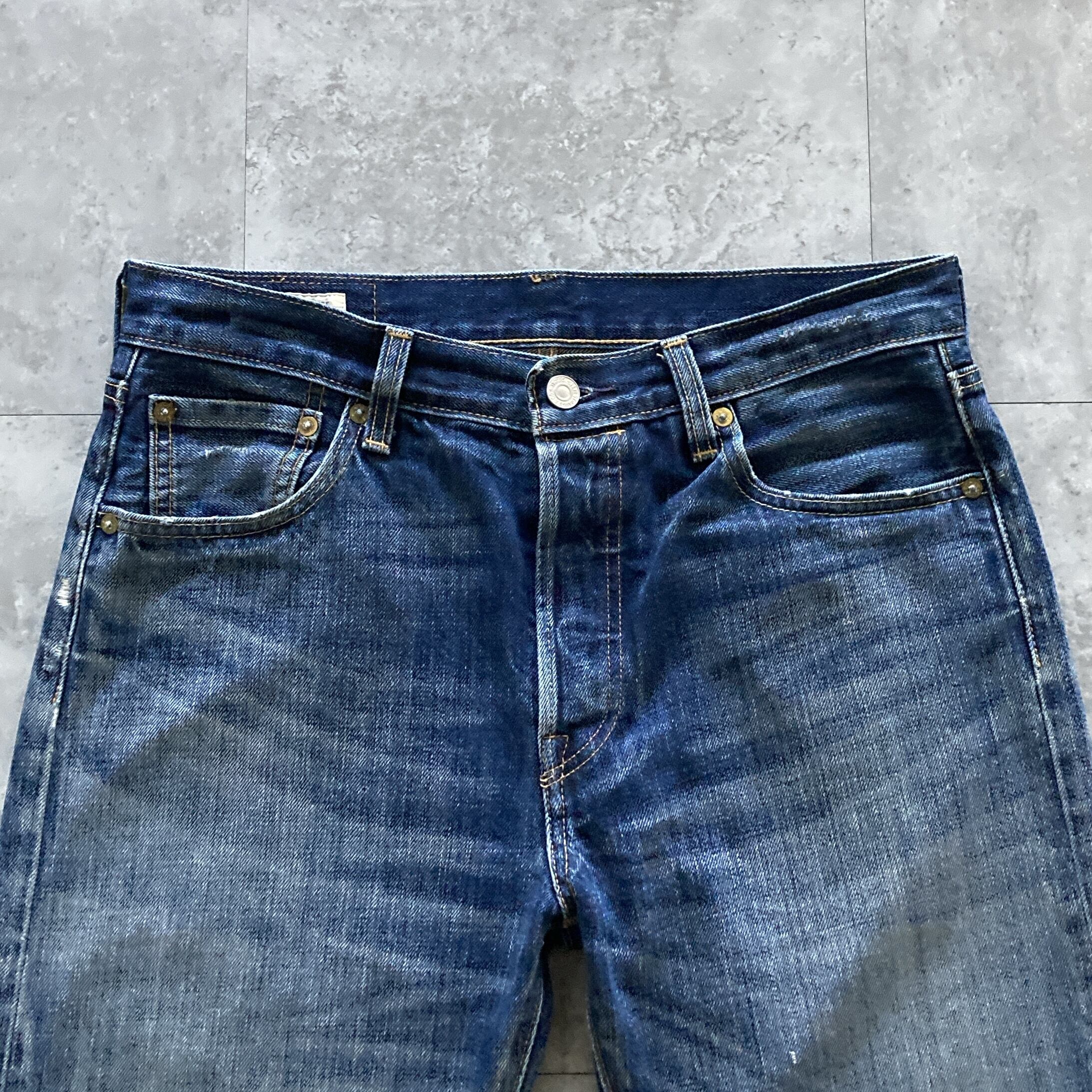 【W30 L32】Levis 501 リーバイス PREMIUM ボタンフライ レザーパッチ BIGE チェーンステッチ 縦落ち ヒゲ ハチノス ダメージ デニムパンツ ジーンズ