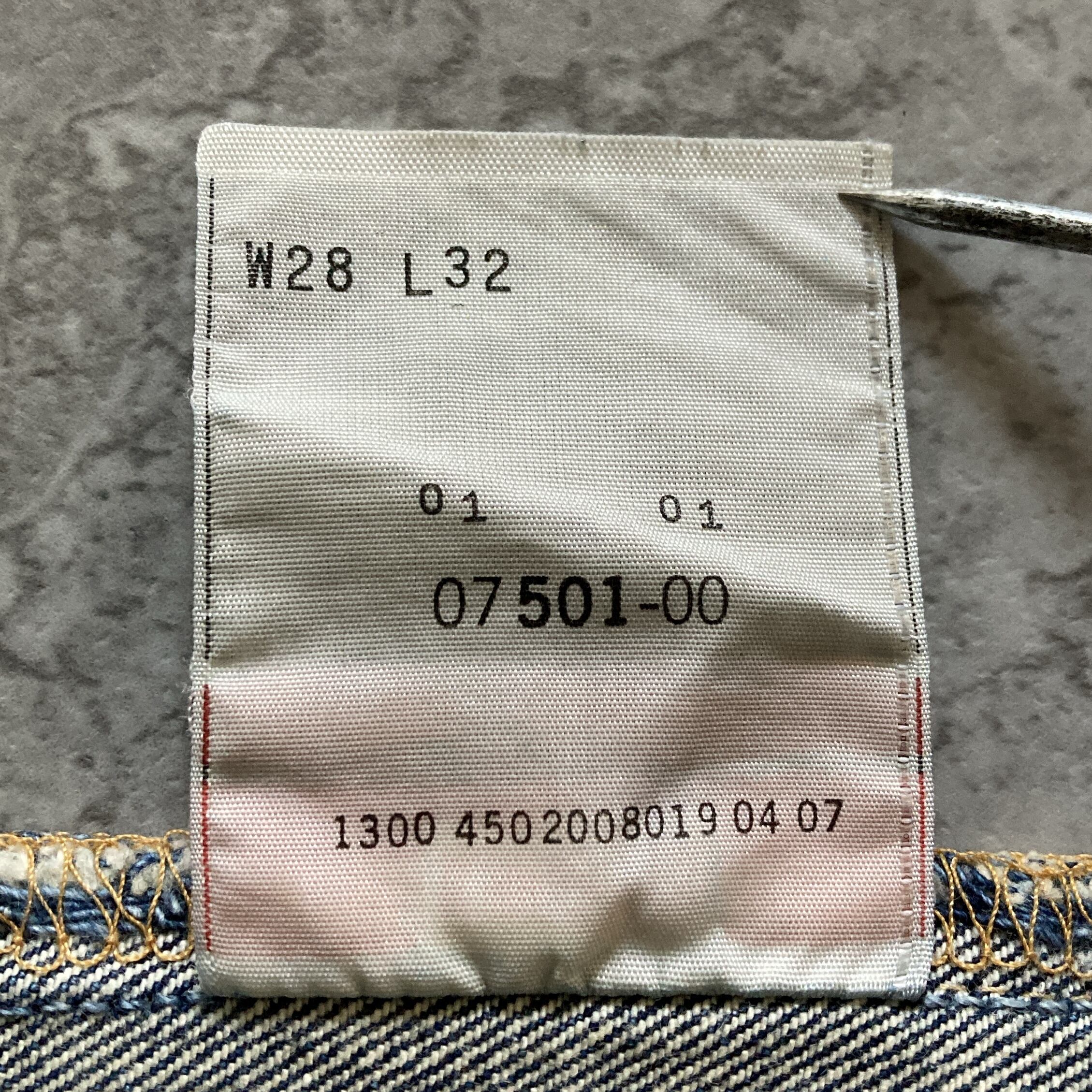【W28 L32】00’s Levis 501 リーバイス レザーパッチ ボタンフライ 07年製 縦落ち ヒゲ ハチノス ダメージ デニムパンツ ジーンズ