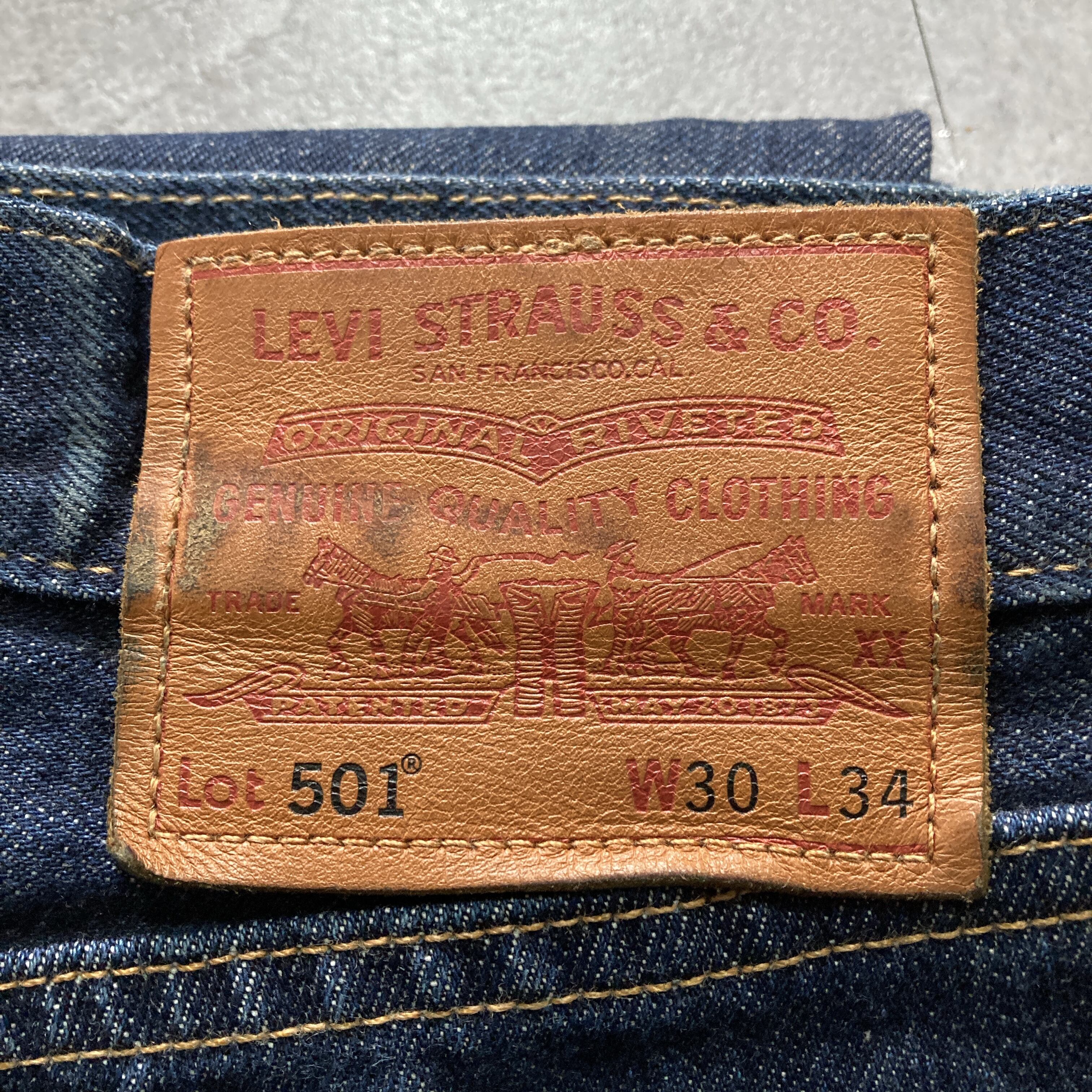 【W30 L34】US.Levis 501 リーバイス PREMIUM ボタンフライ レザーパッチ アメリカ製 BIGE 濃紺 ヒゲ ハチノス デニムパンツ ジーンズ
