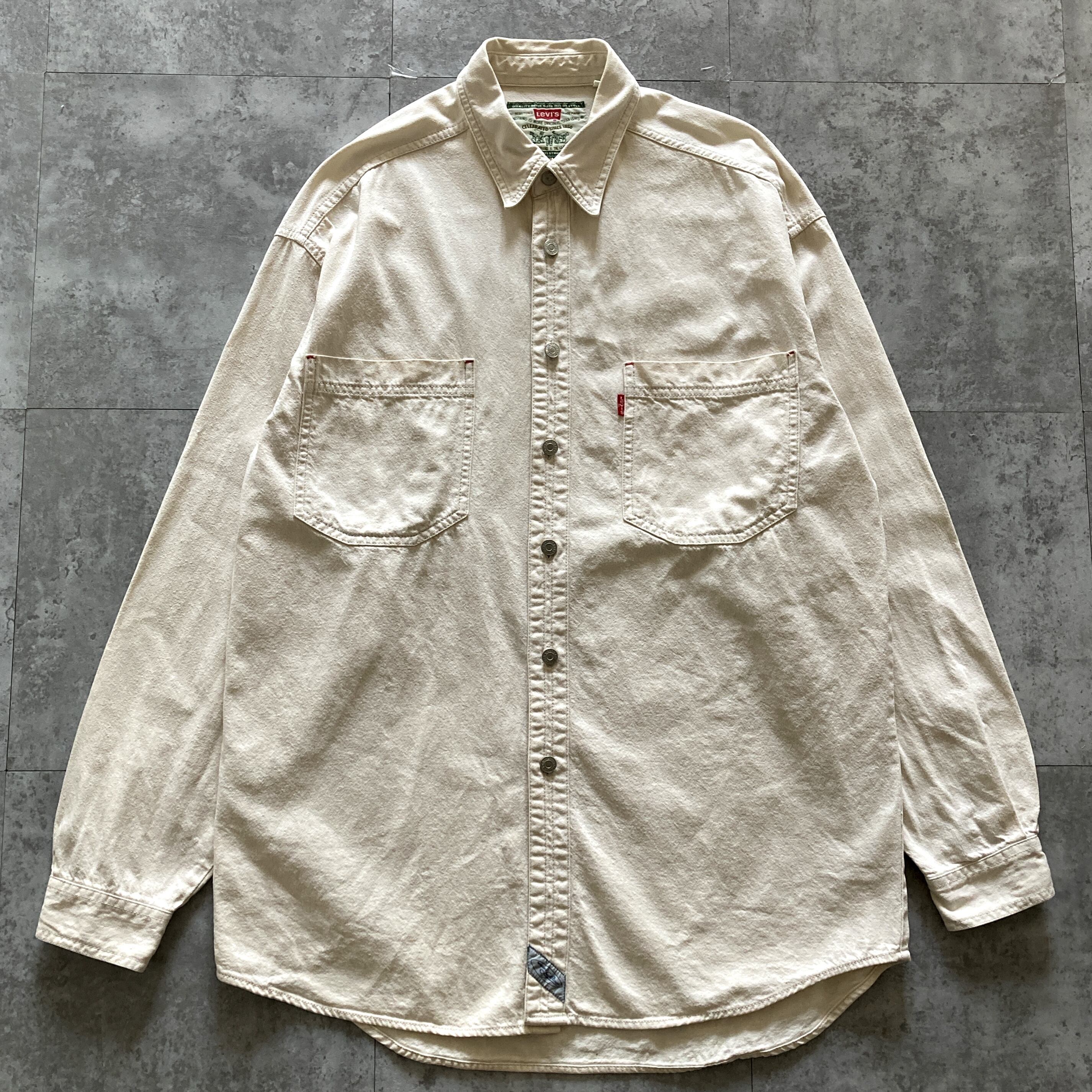 【Size.M】90‘s Levis リーバイス ダブルポケット アイボリー 生成り デニムシャツ