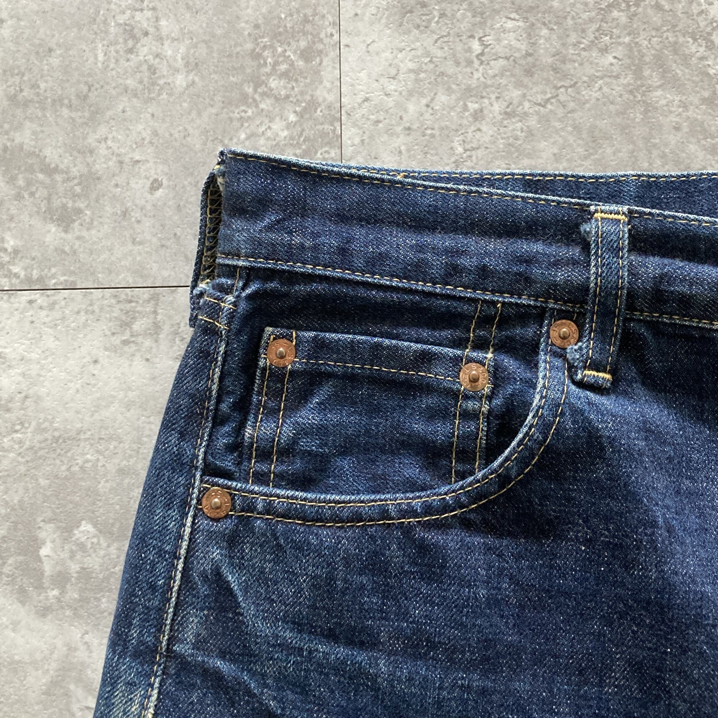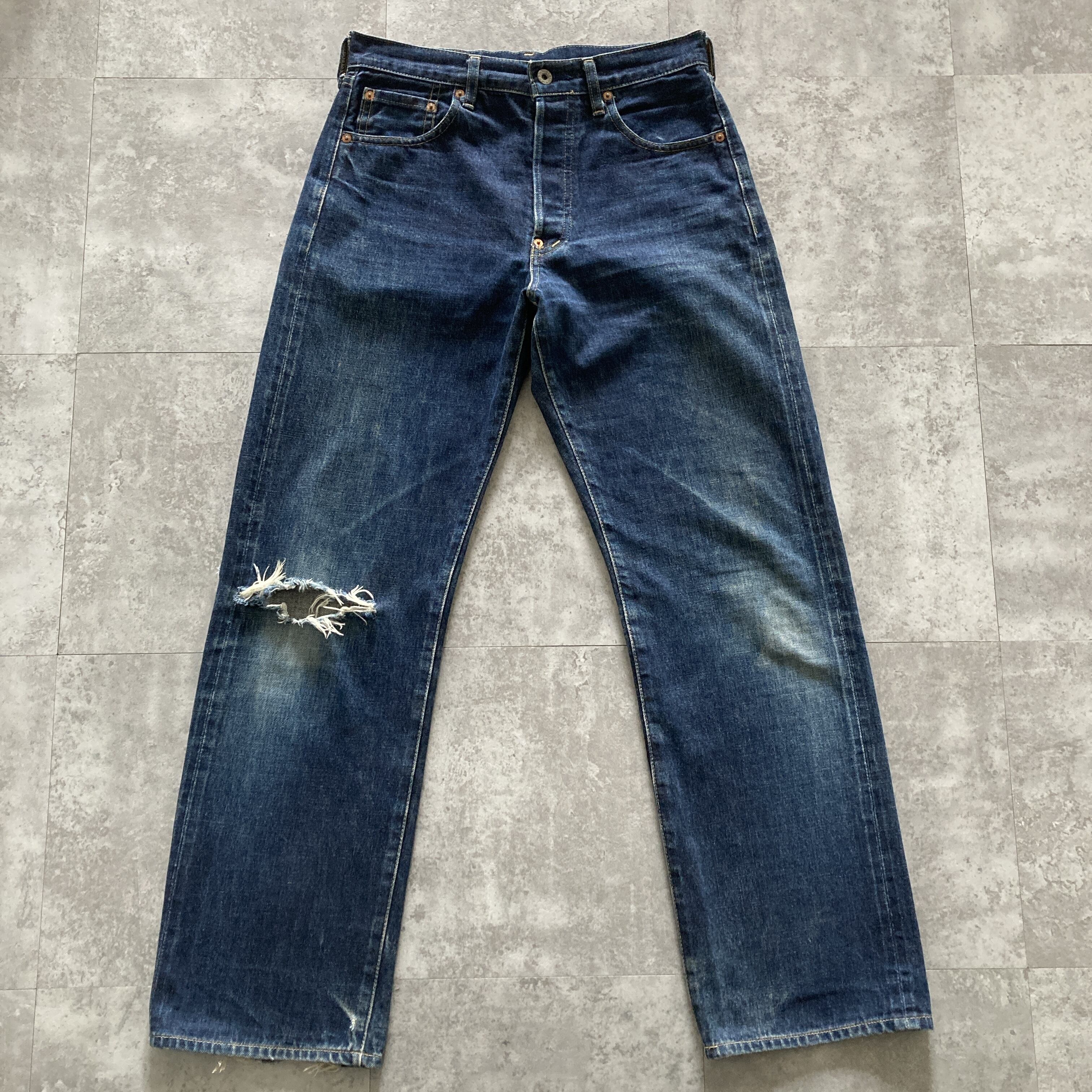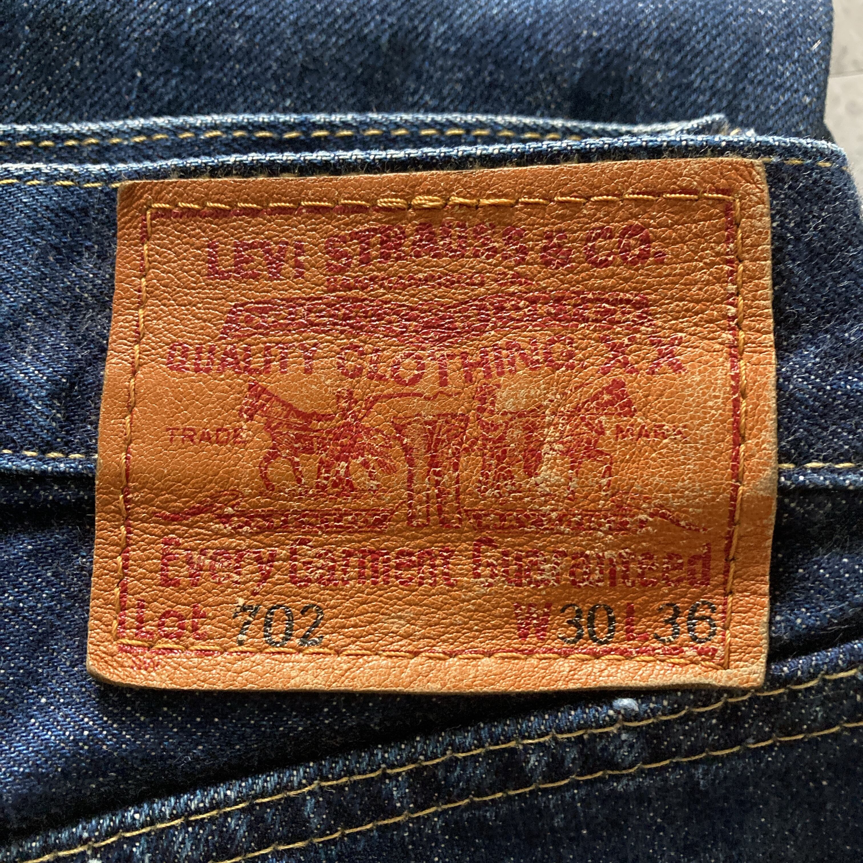 【W30 L36】90’s Levis 702XX リーバイス 140周年 ボタン裏刻印J22 JAPAN製 日本製 レザーパッチ BIGE 赤耳(白耳) セルビッチ シンチバック チェーンステッチ 濃紺 縦落ち ヒゲ ハチノス ダメージ ボタンフライ デニムパンツ ジーンズ