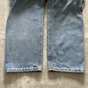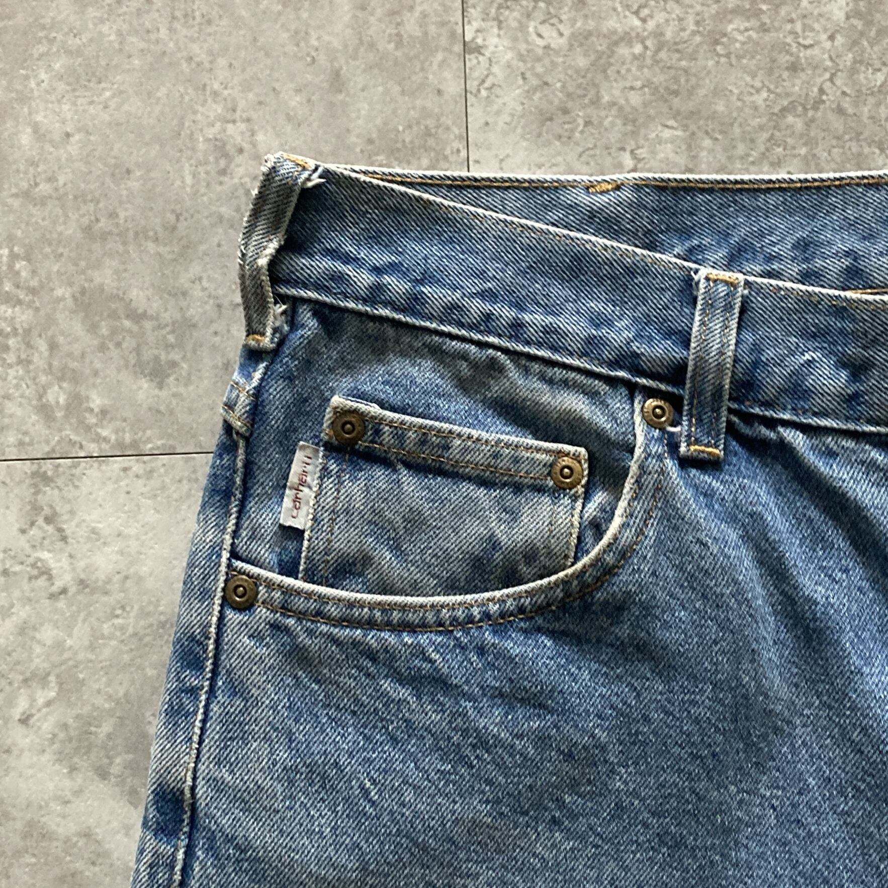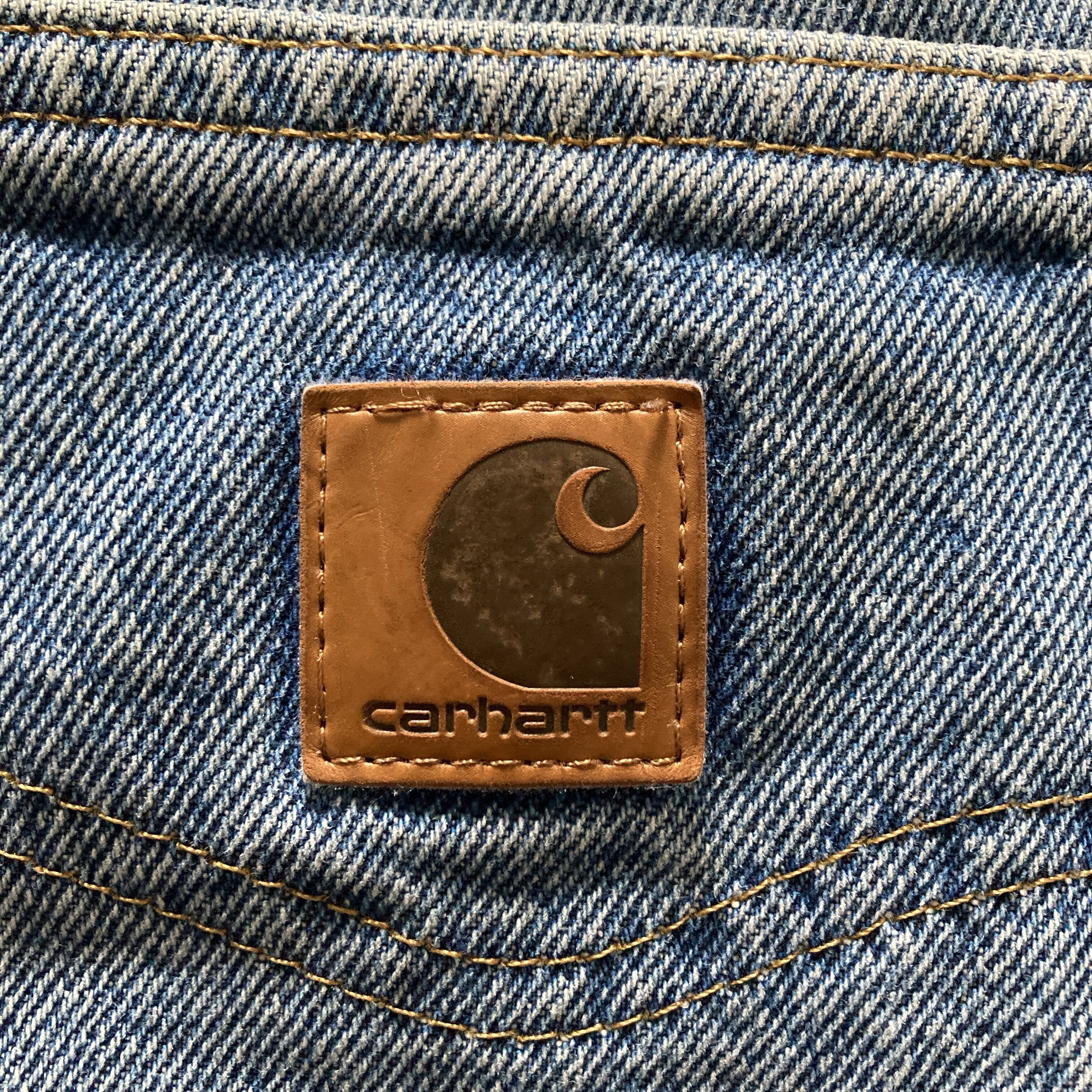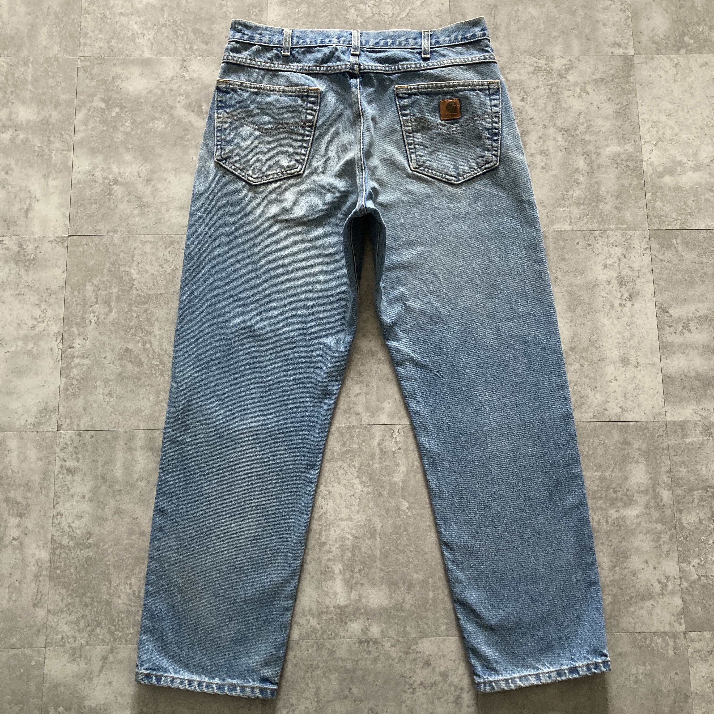 V【34×30】carhartt カーハート ジッパーフライ ワンポイント ビッグサイズ 縦落ち ヒゲ デニムパンツ ジーンズ
