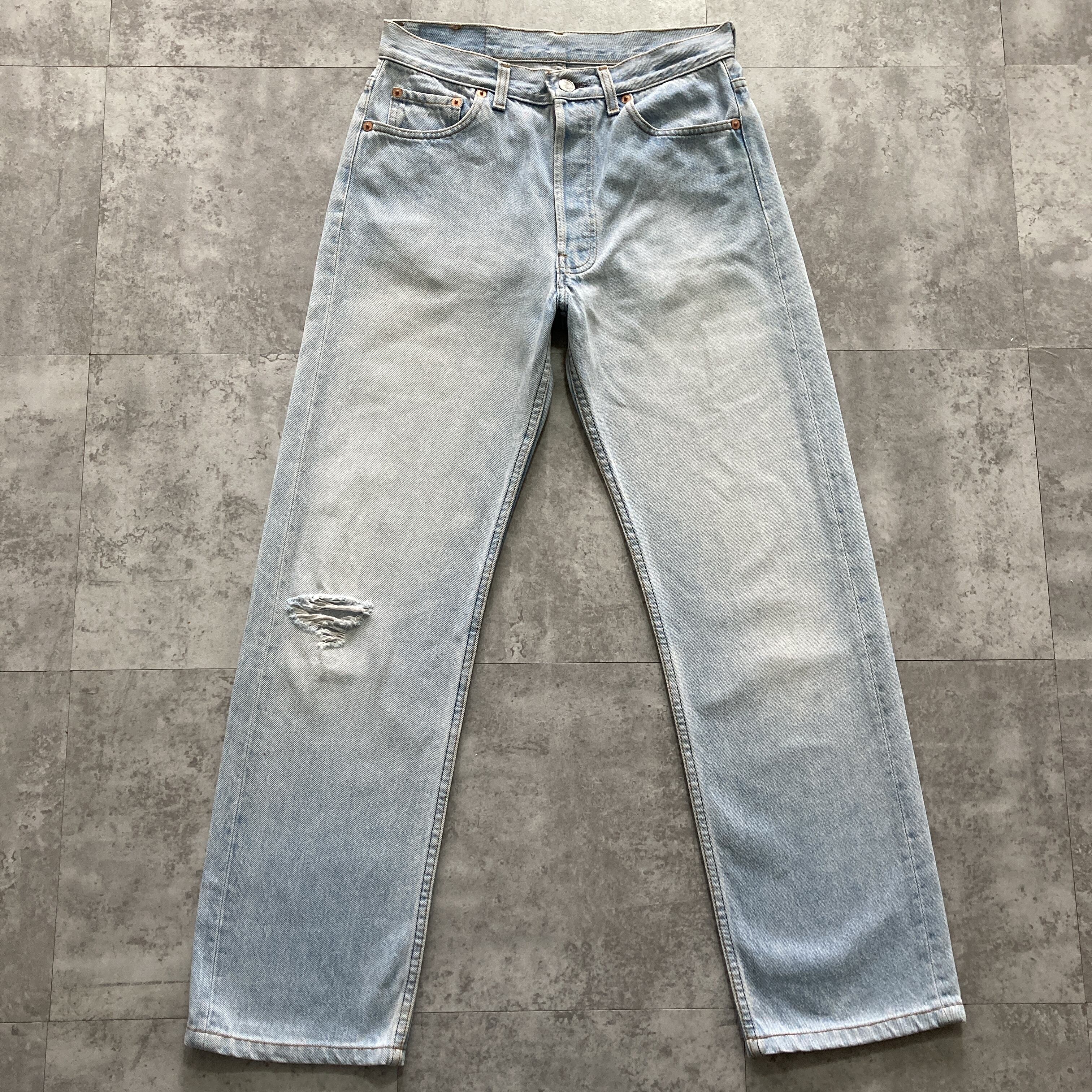 【W30 L36】90's US.Levis 501 リーバイス ボタンフライ バレンシア工場(555) ボタン裏刻印555 USA製 アメリカ製 91年製 縦落ち ダメージ デニムパンツ ジーンズ