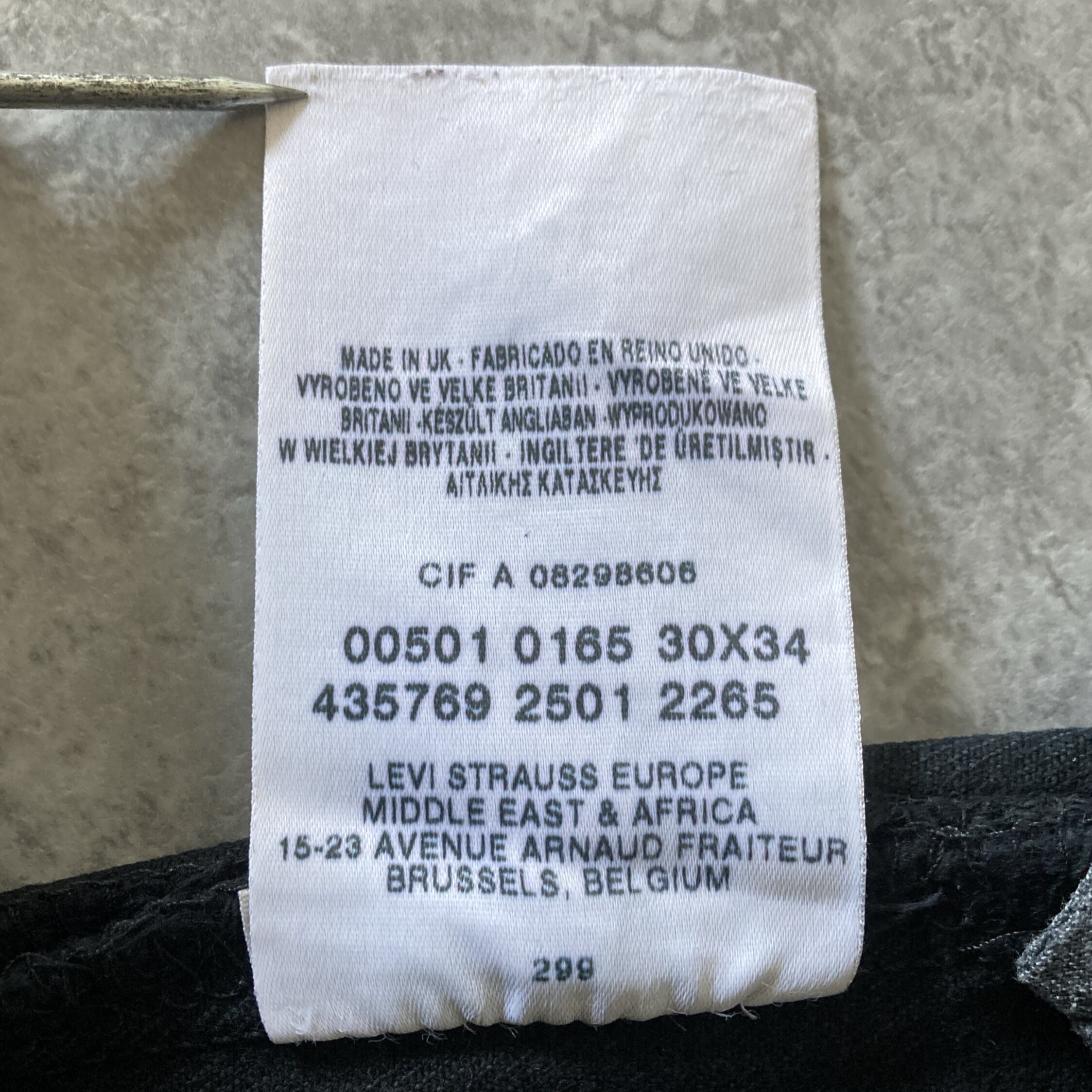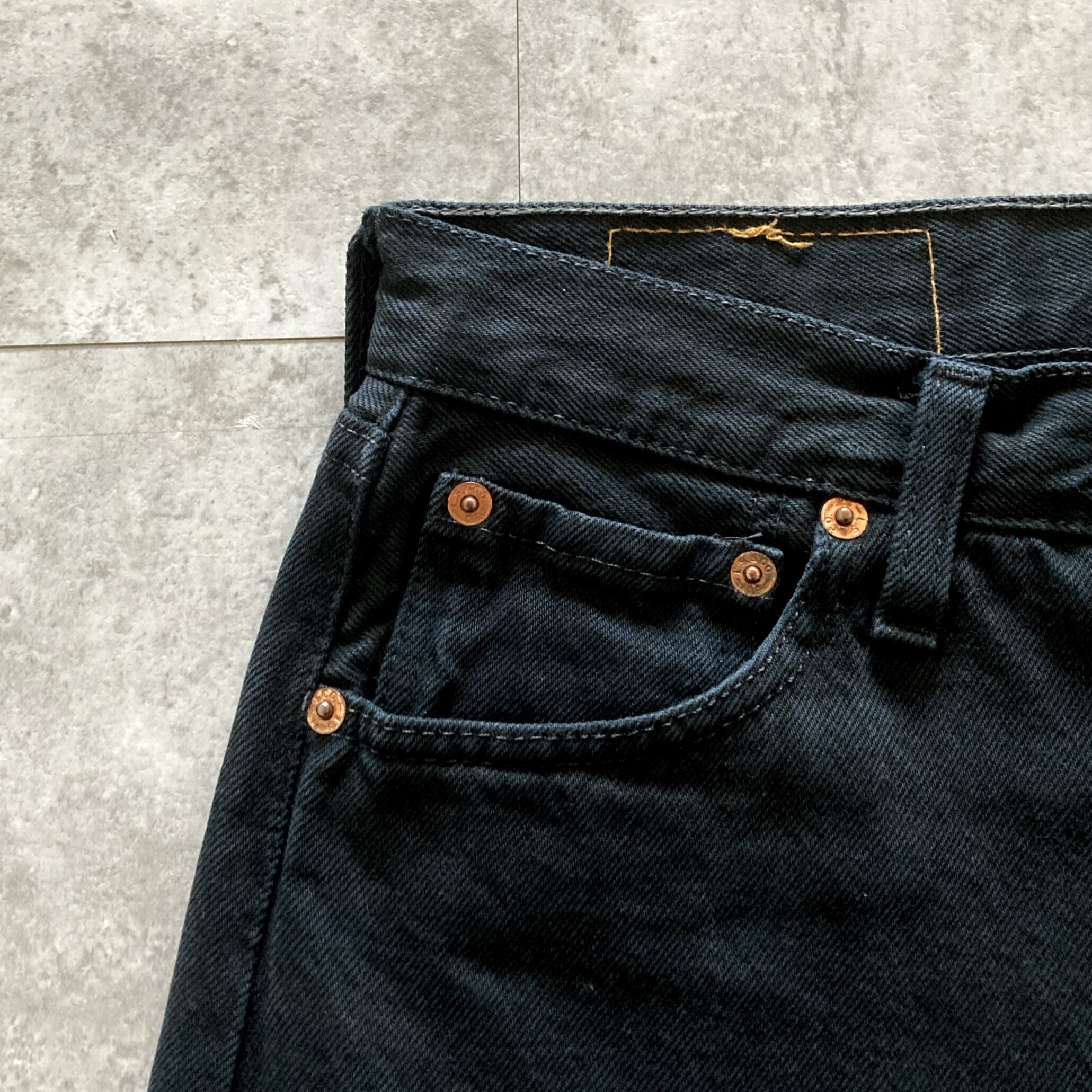 【W30 L34】00’s Euro Levis 501 ユーロリーバイス UK製 イギリス製 ボタンフライ 裏ボタン刻印(299) 01年製 ブラック デニムパンツ ジーンズ