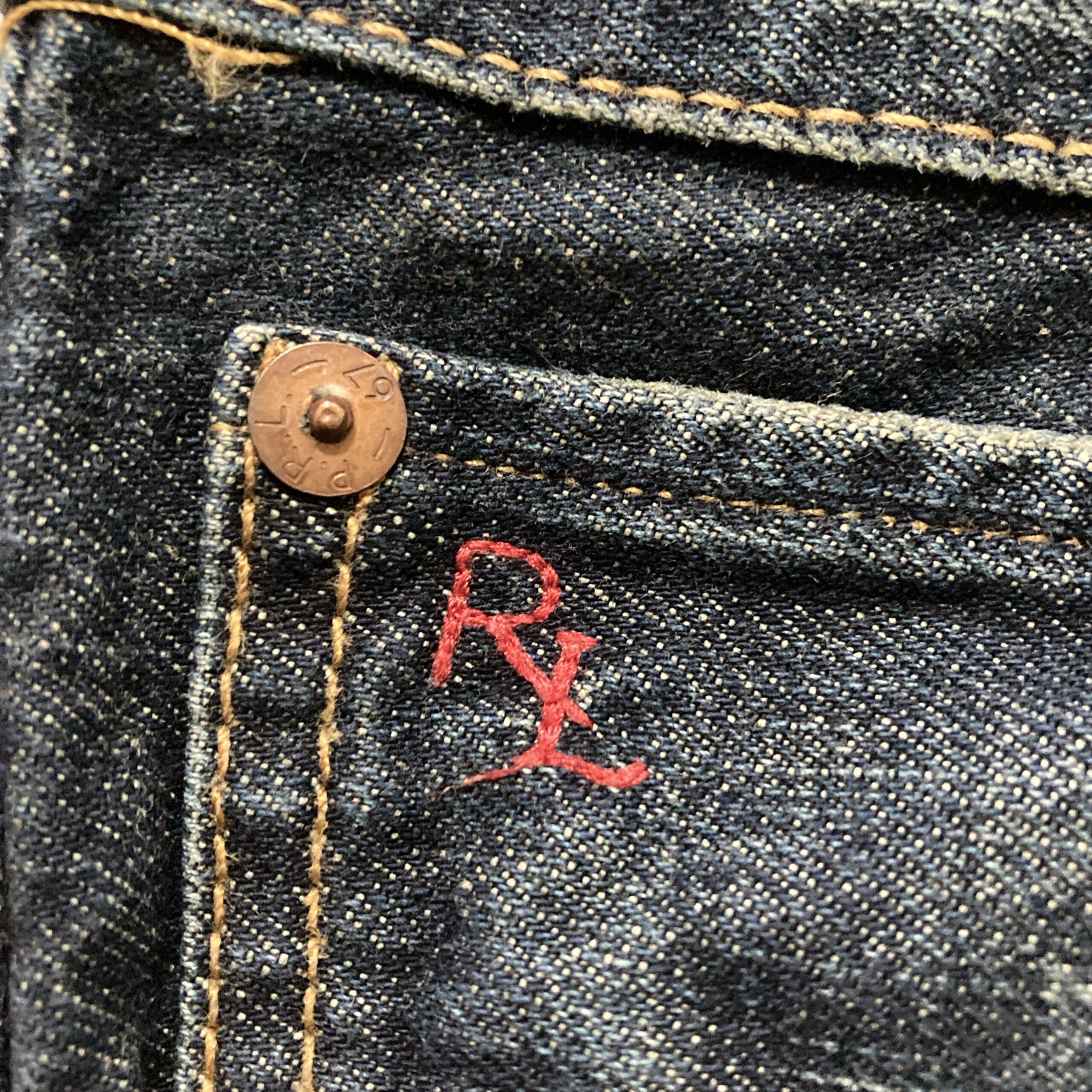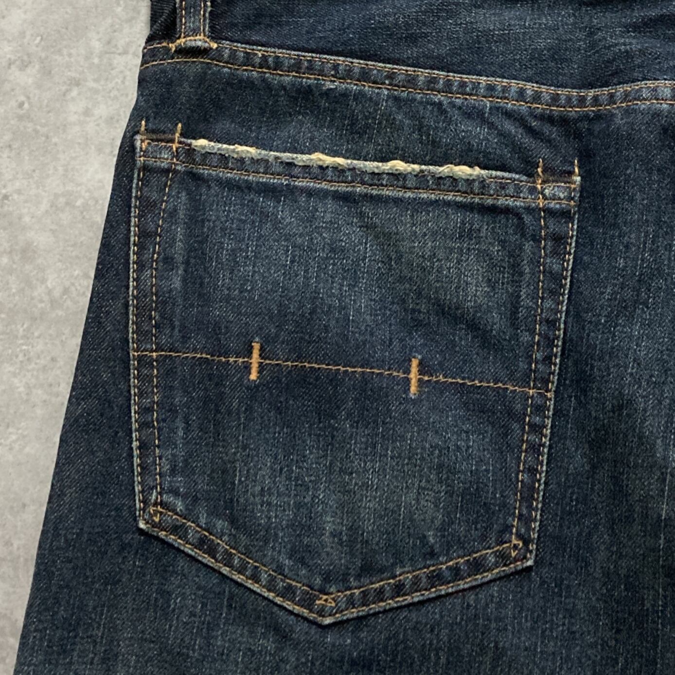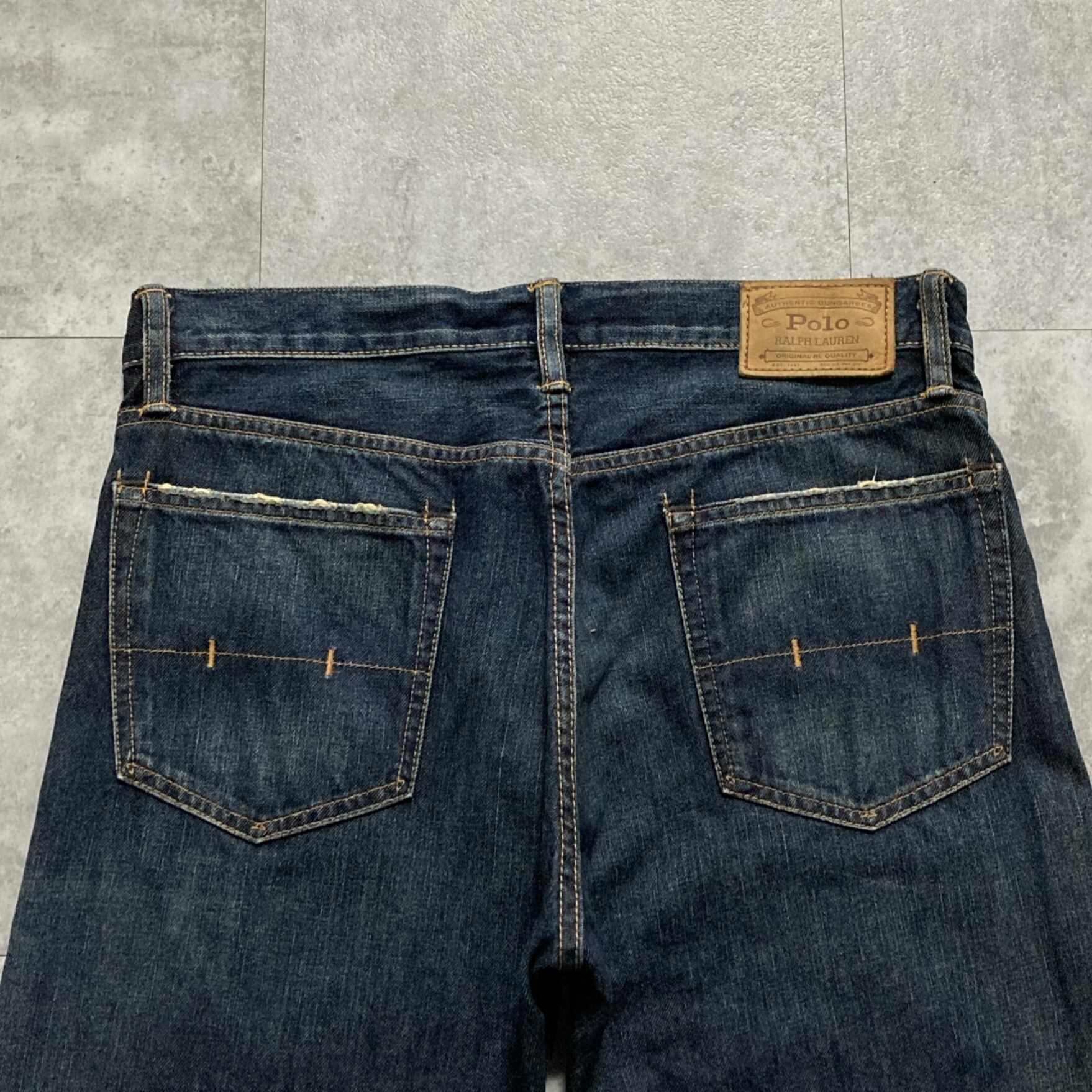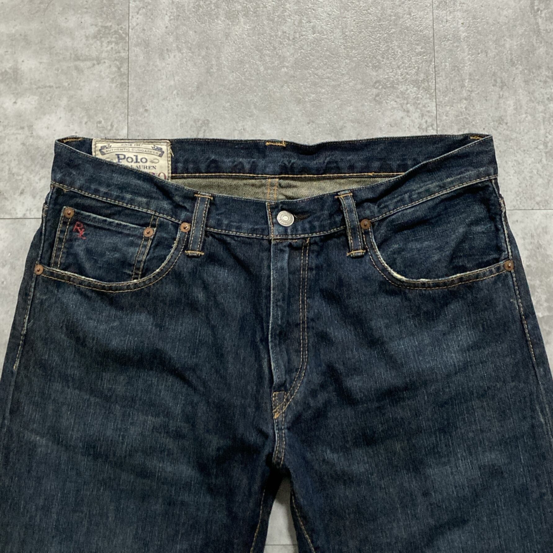 【33/30】POLO RALPH LAUREN ポロラルフローレン ジッパーフライ レザーパッチ 濃紺 縦落ち ヒゲ ハチノス デニムパンツ ジーンズ