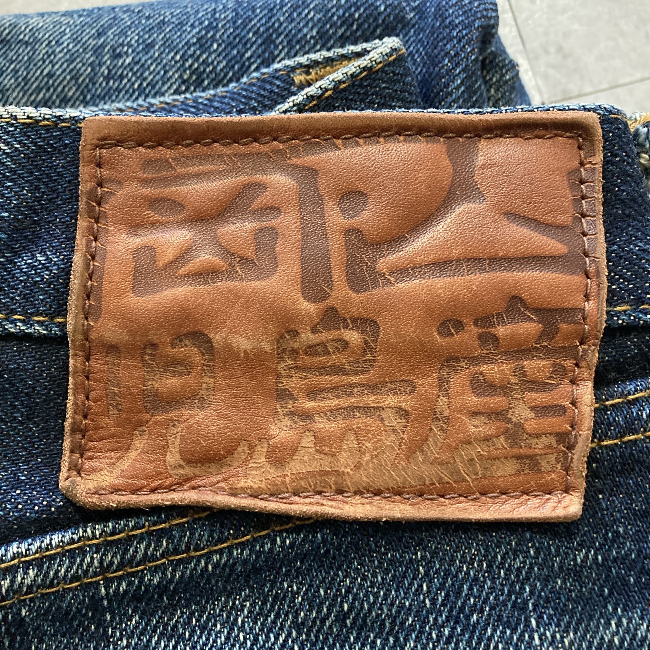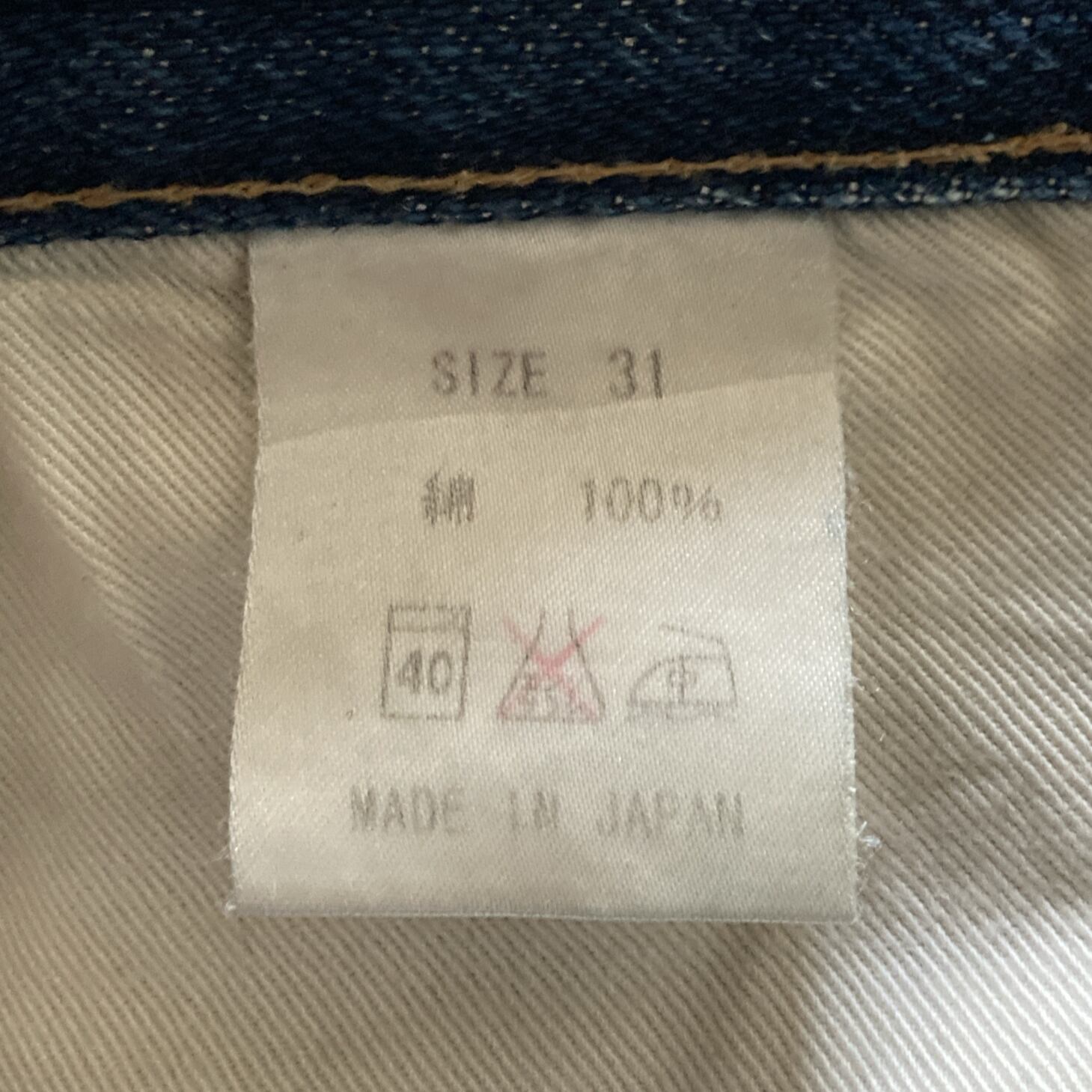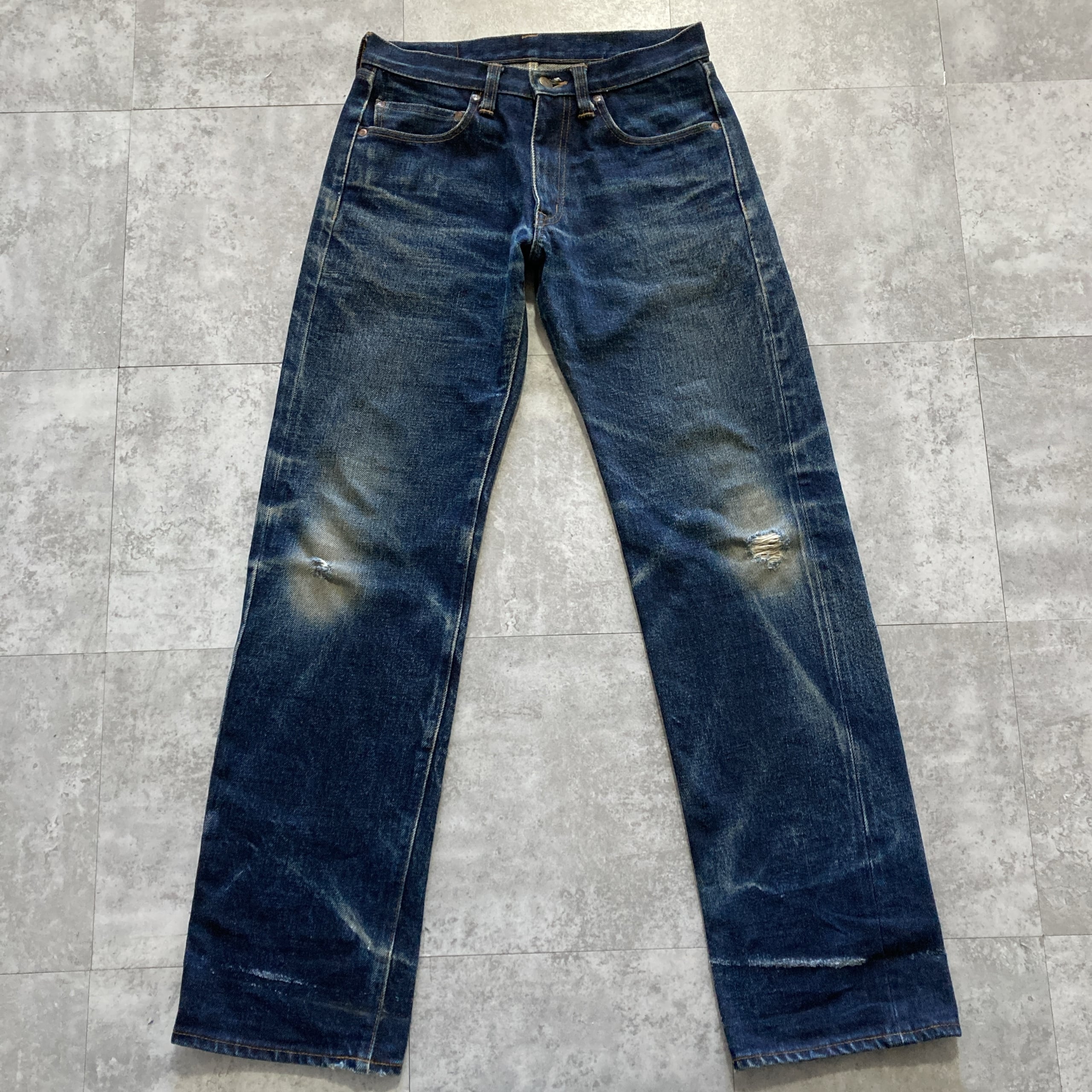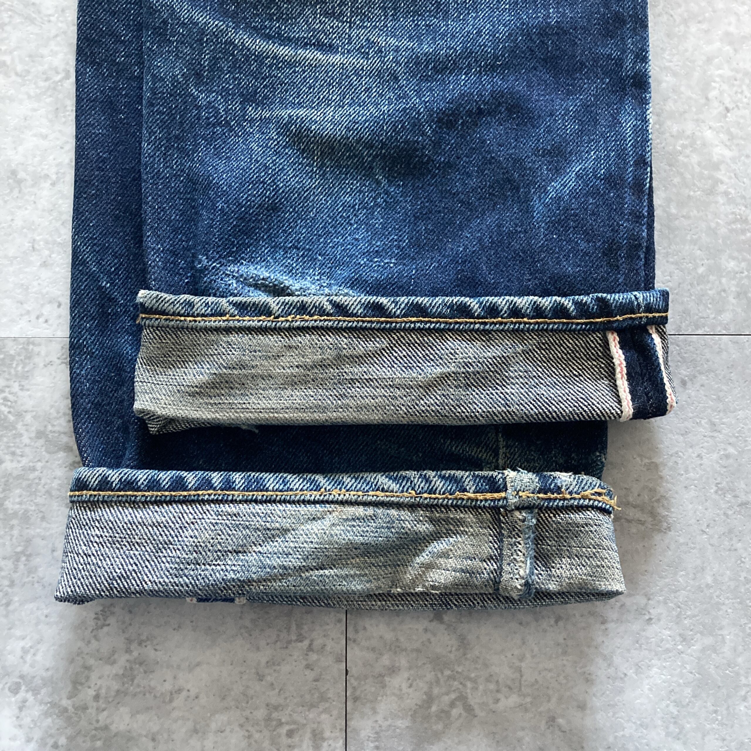 【Size.31】児島ジーンズ レザーパッチ ジッパーフライ ヘビーオンス セルビッチ 赤耳(白耳) チェーンステッチ 濃紺 縦落ち ヒゲ ハチノス ダメージ デニムパンツ ジーンズ