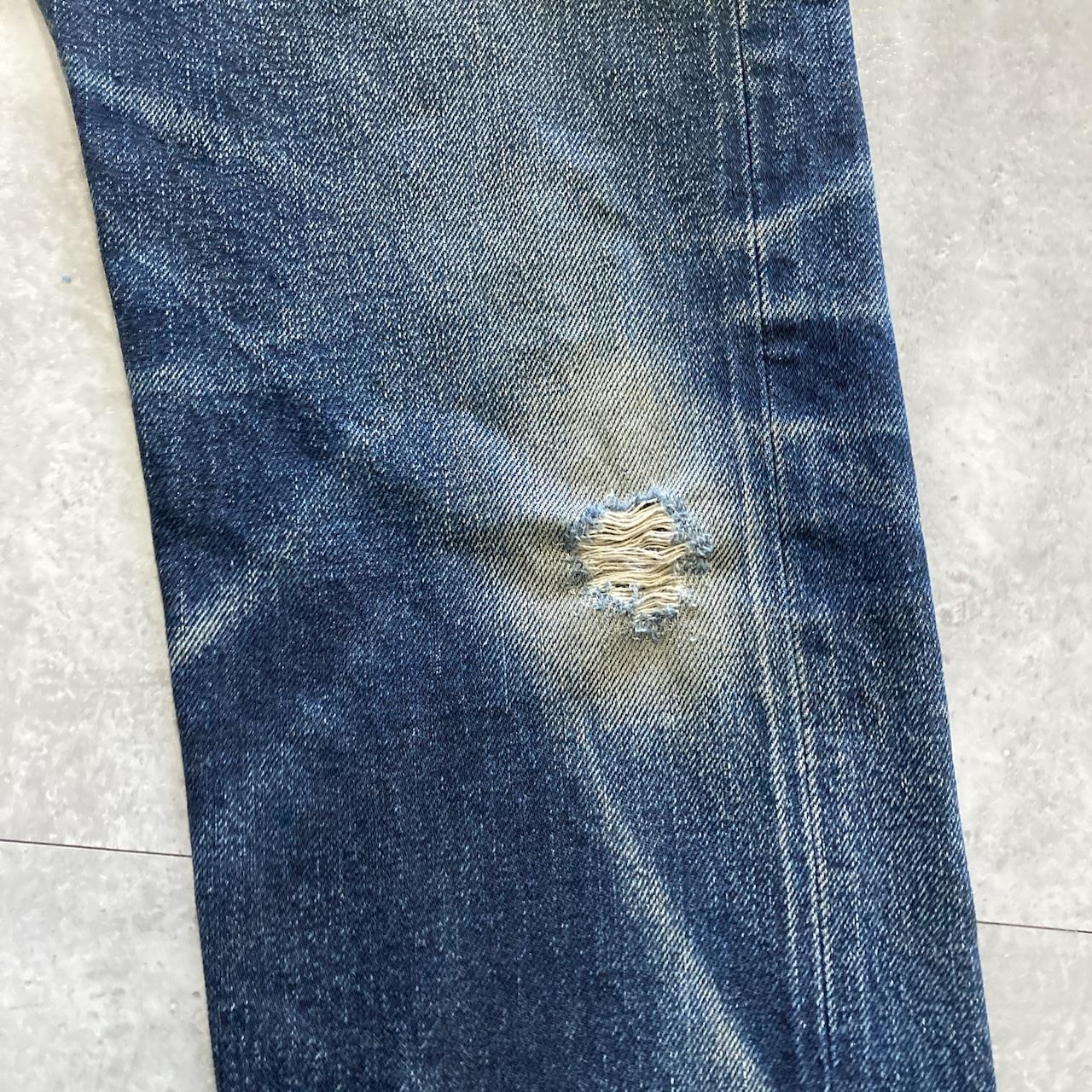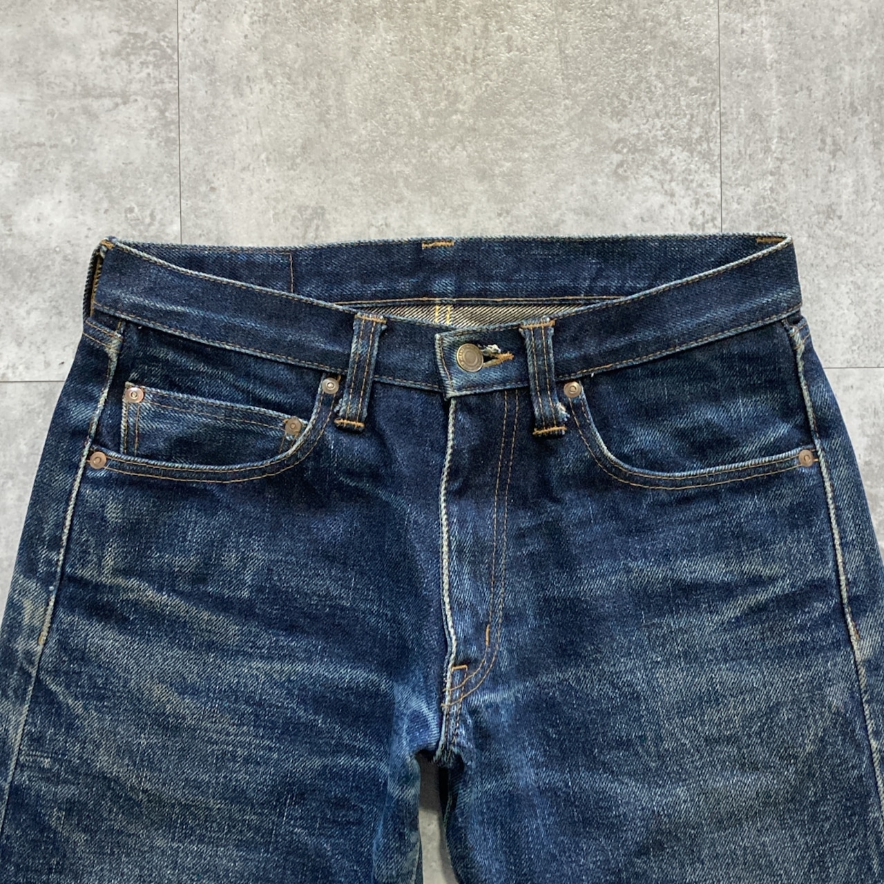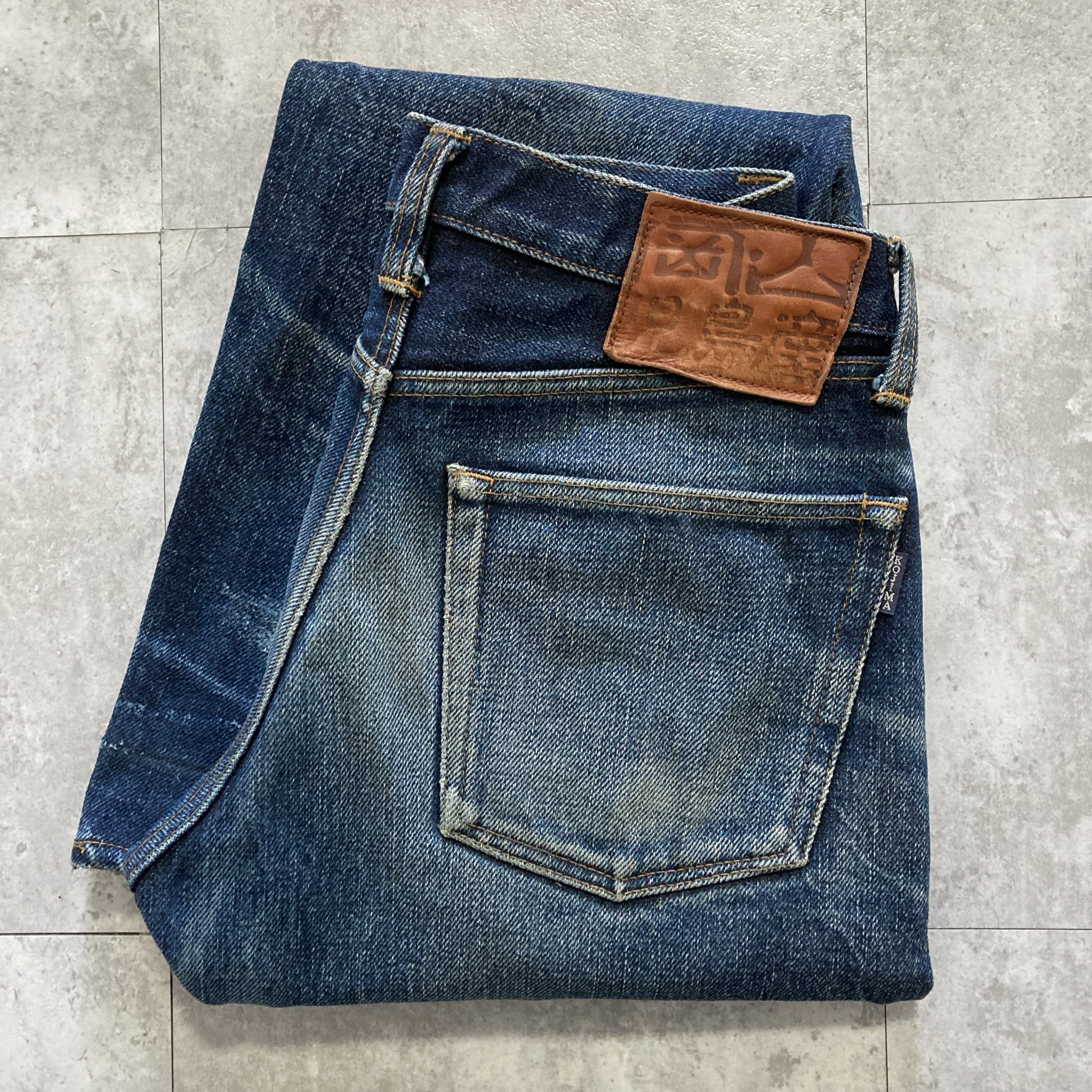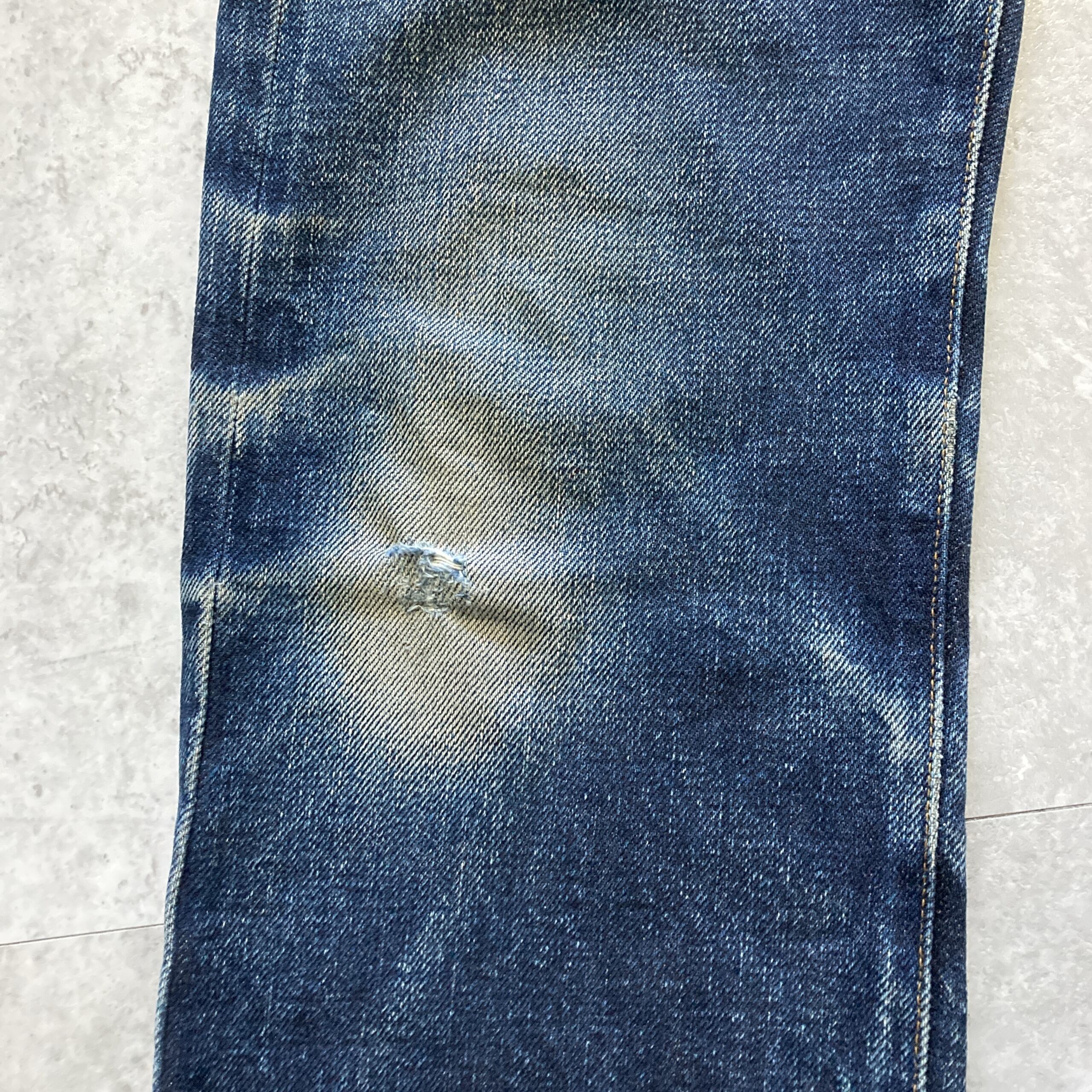 【Size.31】児島ジーンズ レザーパッチ ジッパーフライ ヘビーオンス セルビッチ 赤耳(白耳) チェーンステッチ 濃紺 縦落ち ヒゲ ハチノス ダメージ デニムパンツ ジーンズ