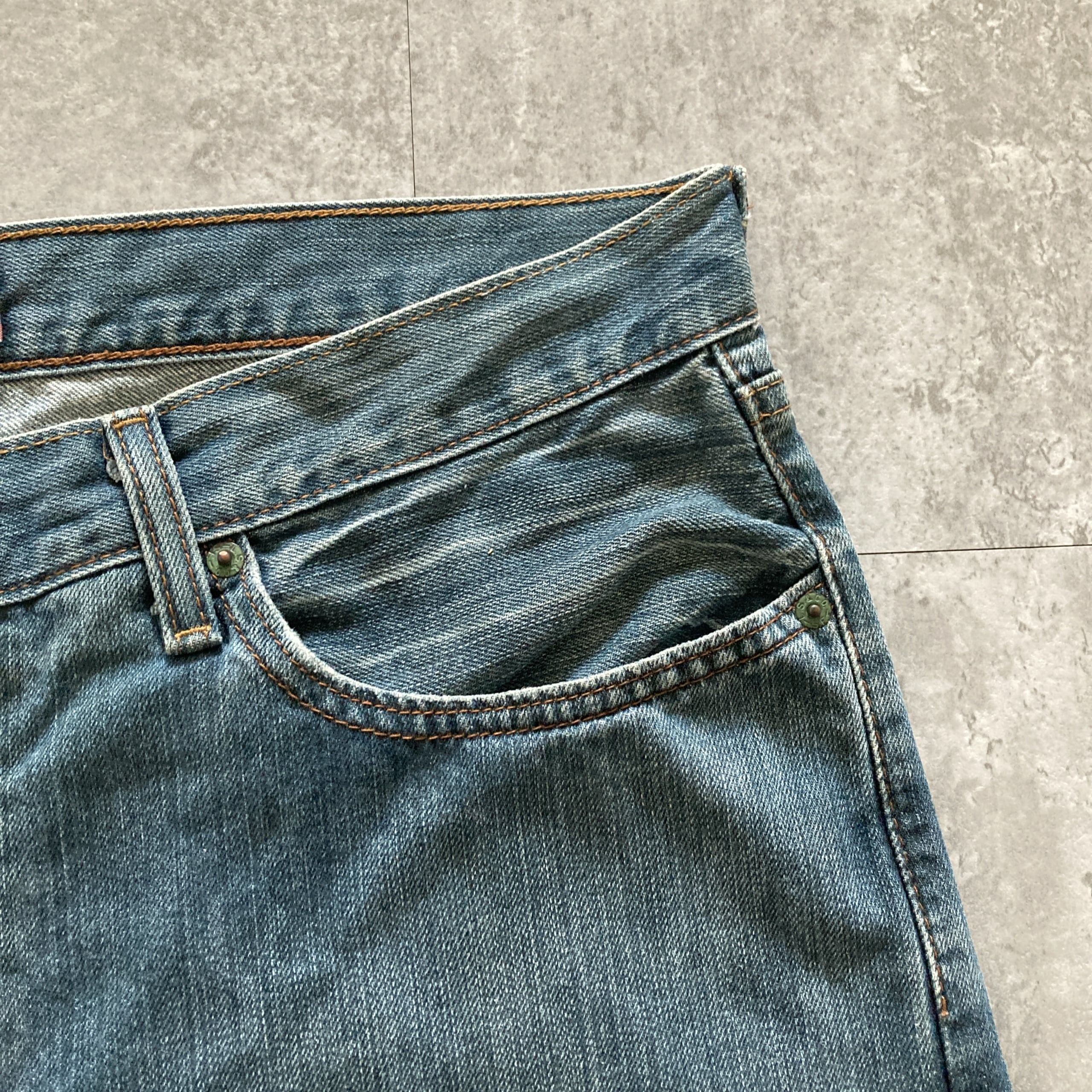 ・前後ポケット.ベルトループ付近.裾.後膝付近に若干の擦れた傷あり