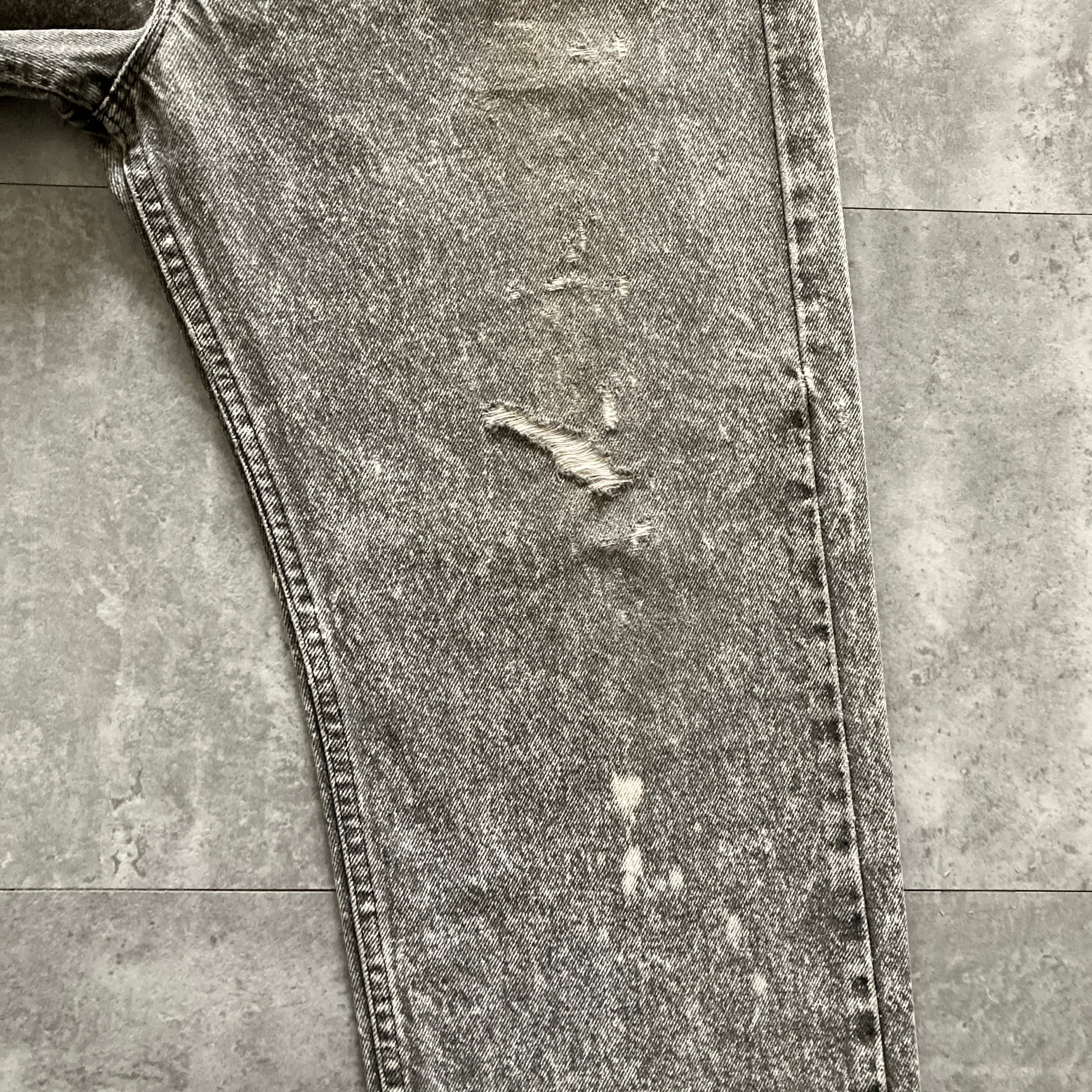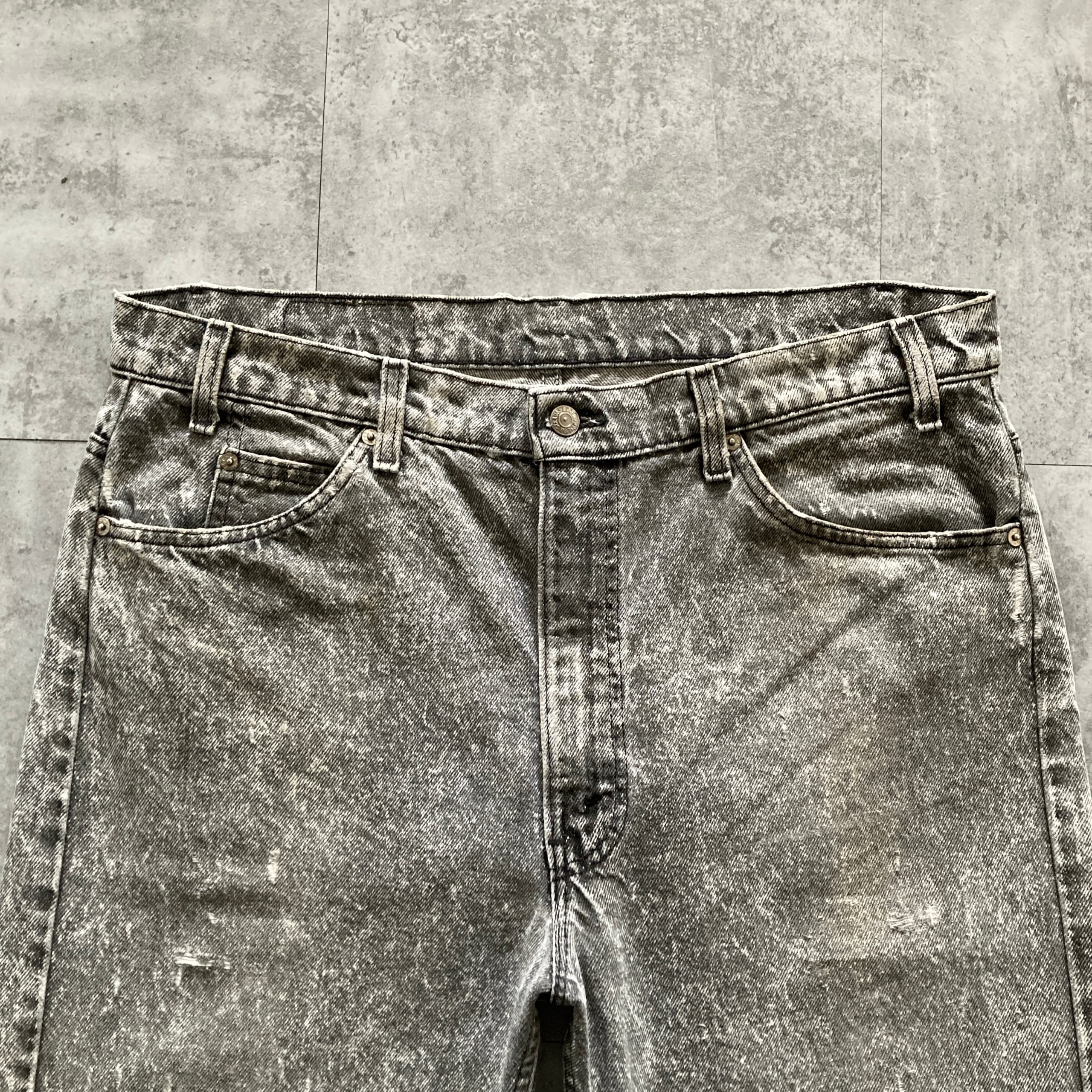 【W38 L30】80‘s US.Levis 505 リーバイス ヴァルドスタ工場(575) 裏ボタン刻印(575) 89年製 USA製 アメリカ製 マルハチ 先染めブラック ケミカルウォッシュ ダメージ デニムパンツ ジーンズ