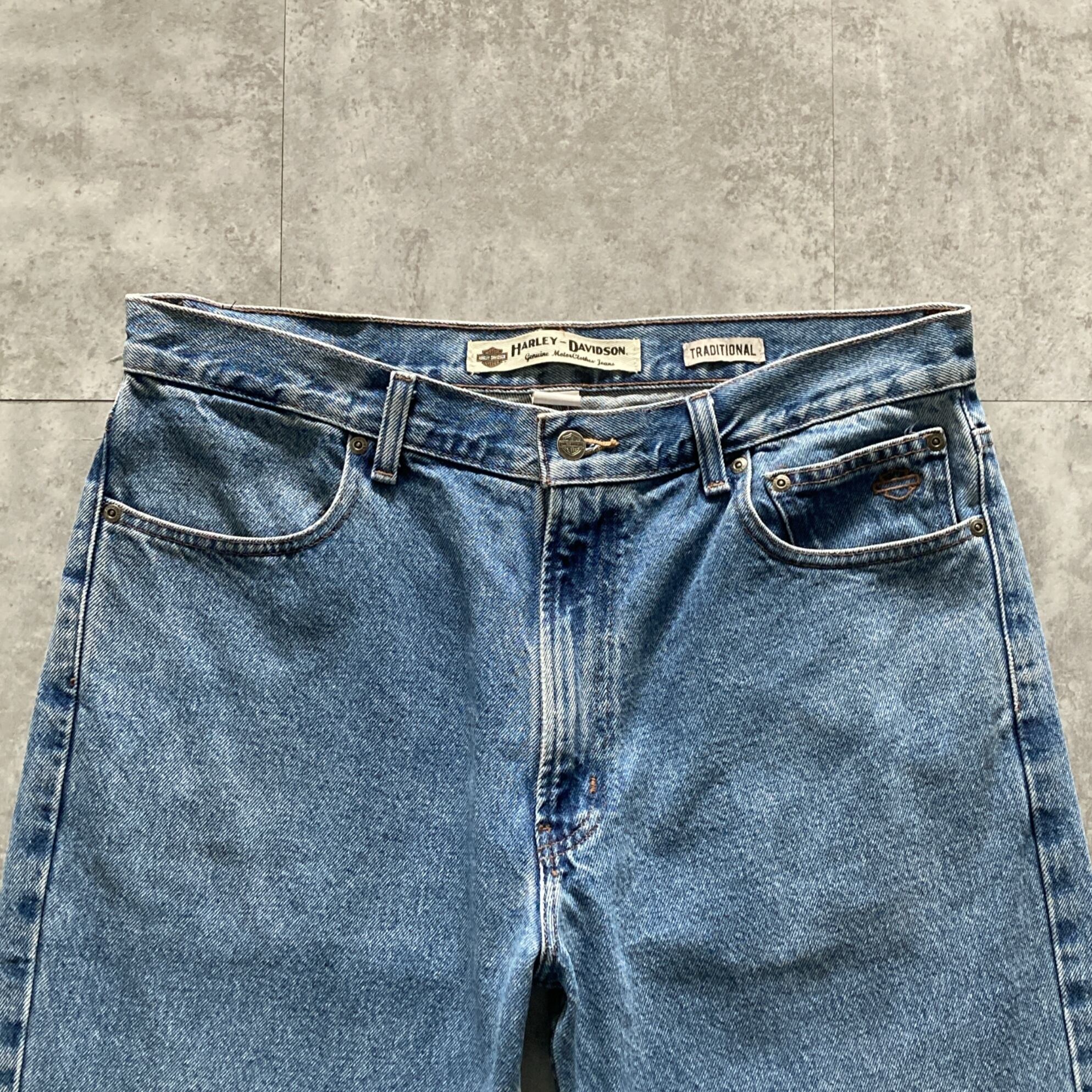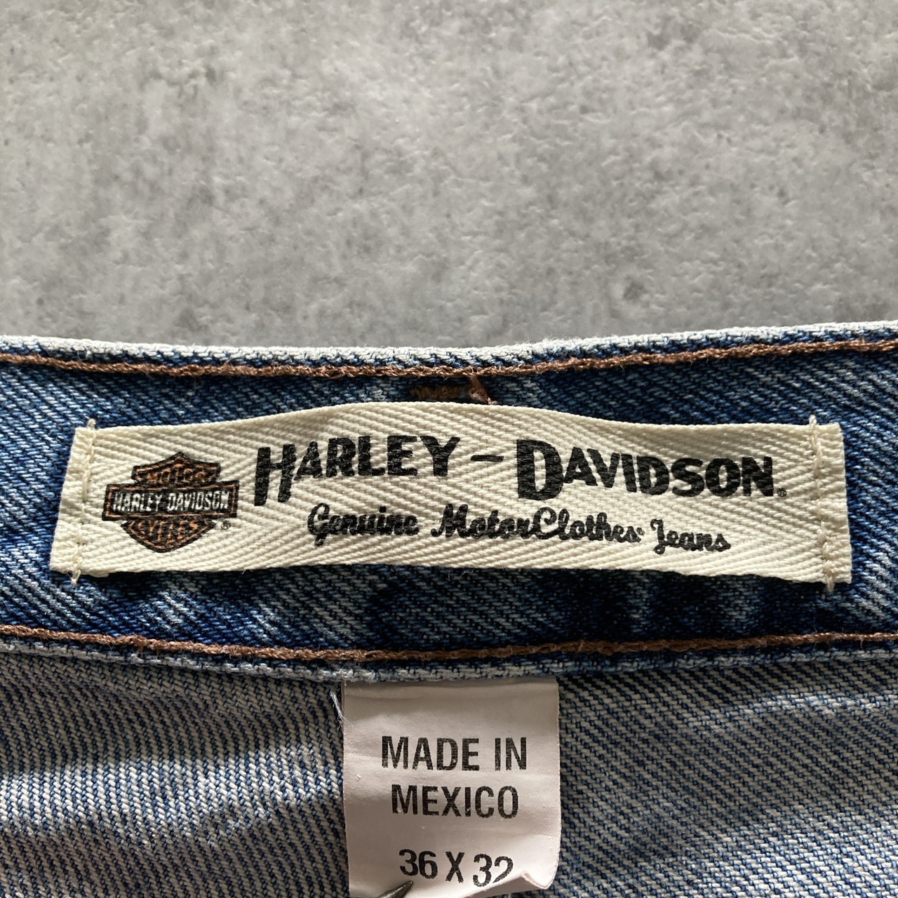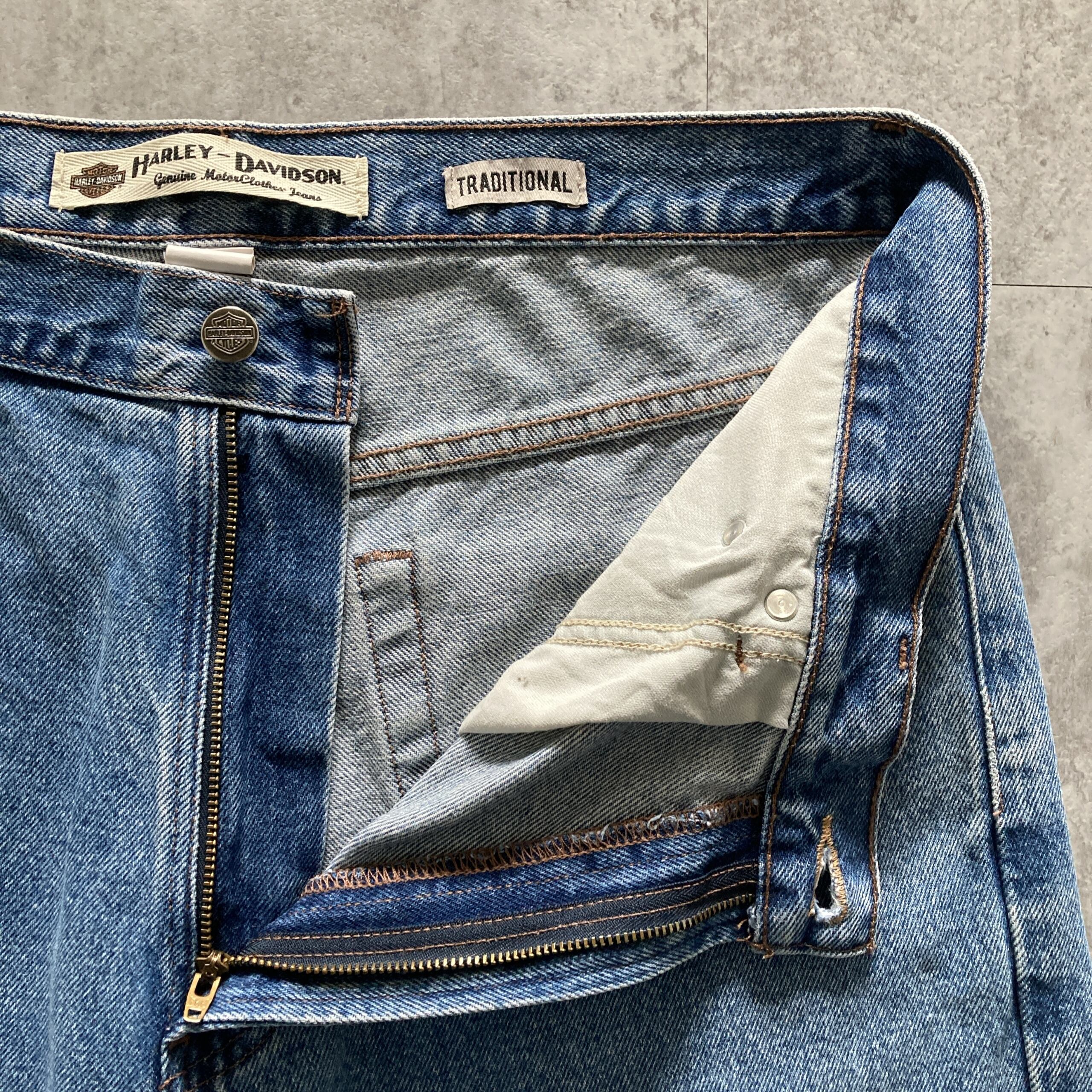 【36×32】ハーレーダビッドソン HARLEY-DAVIDSON レザーパッチ ワンポイント ロゴ刺繍 ジッパーフライ ビッグサイズ デニムパンツ ジーンズ