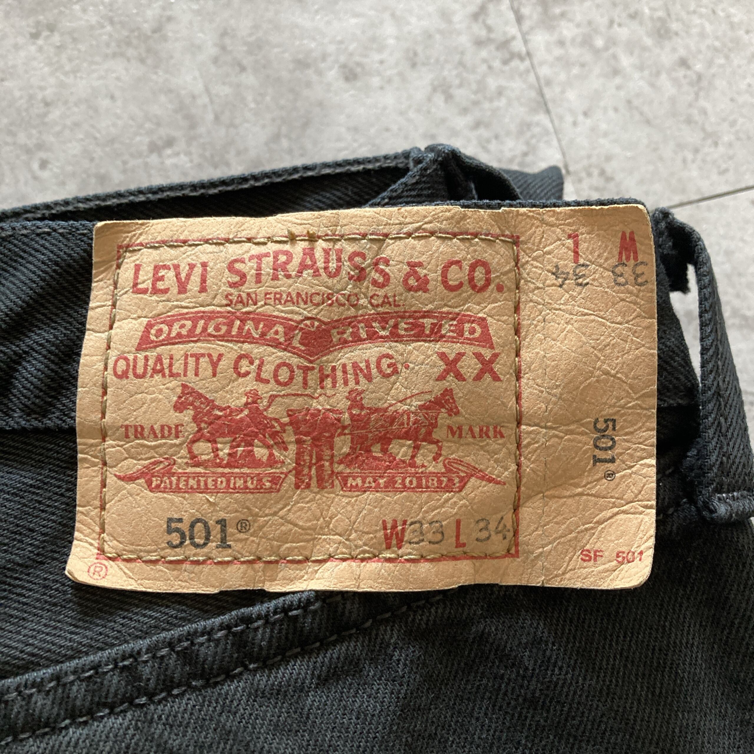 【W33 L34】00‘s Euro Levis 501 ユーロリーバイス 裏ボタン刻印(247) 04年製 トルコ製 ボタンフライ ブラック デニムパンツ ジーンズ