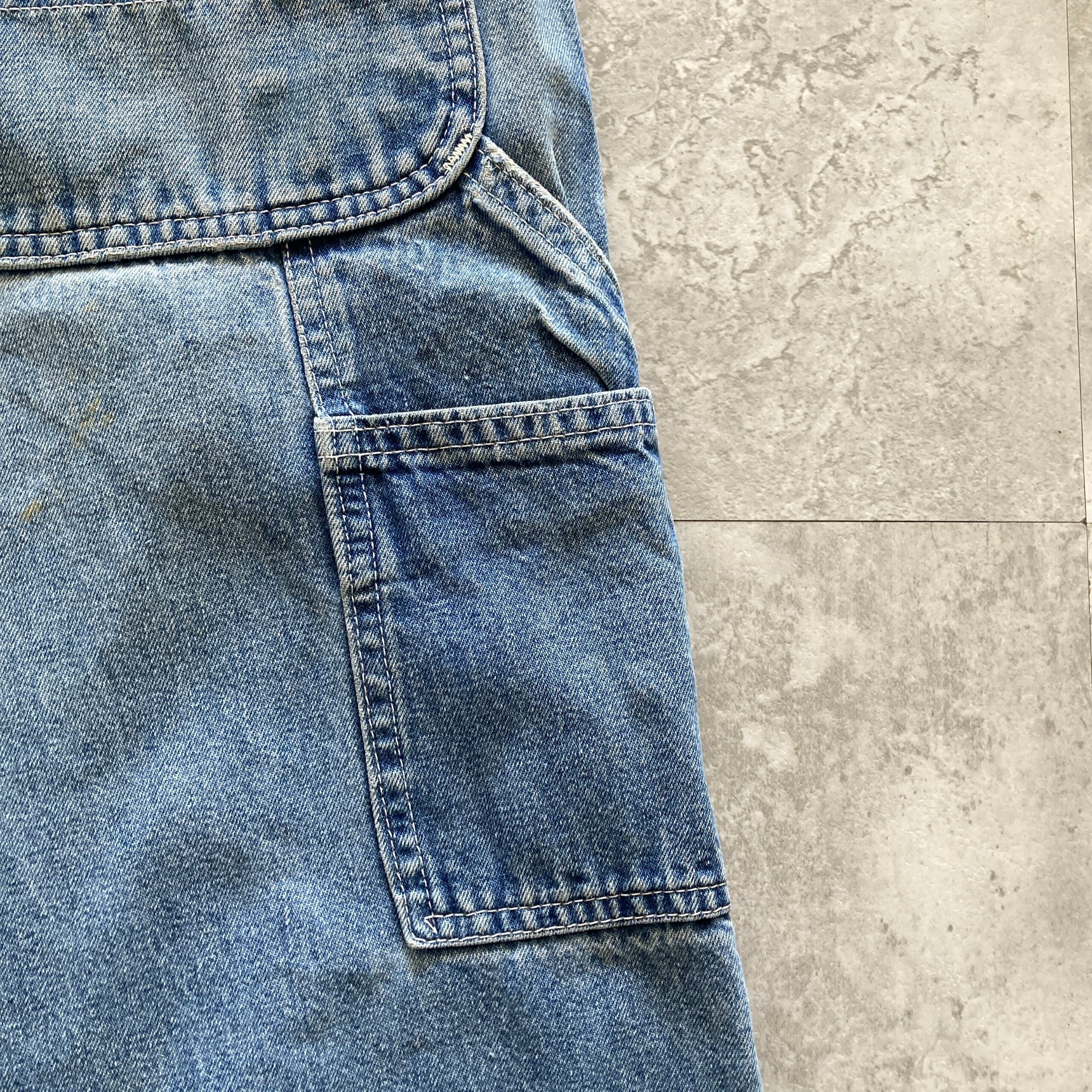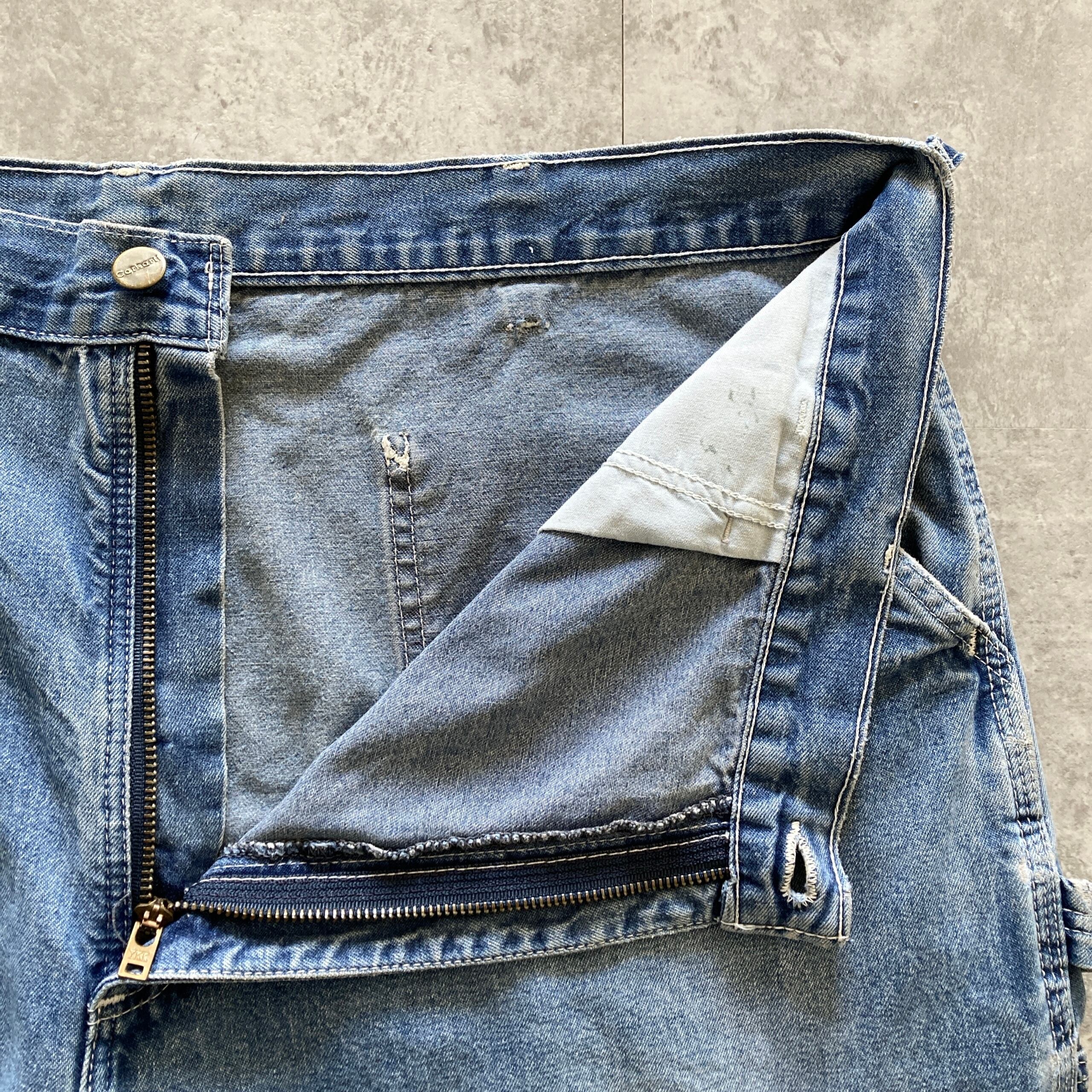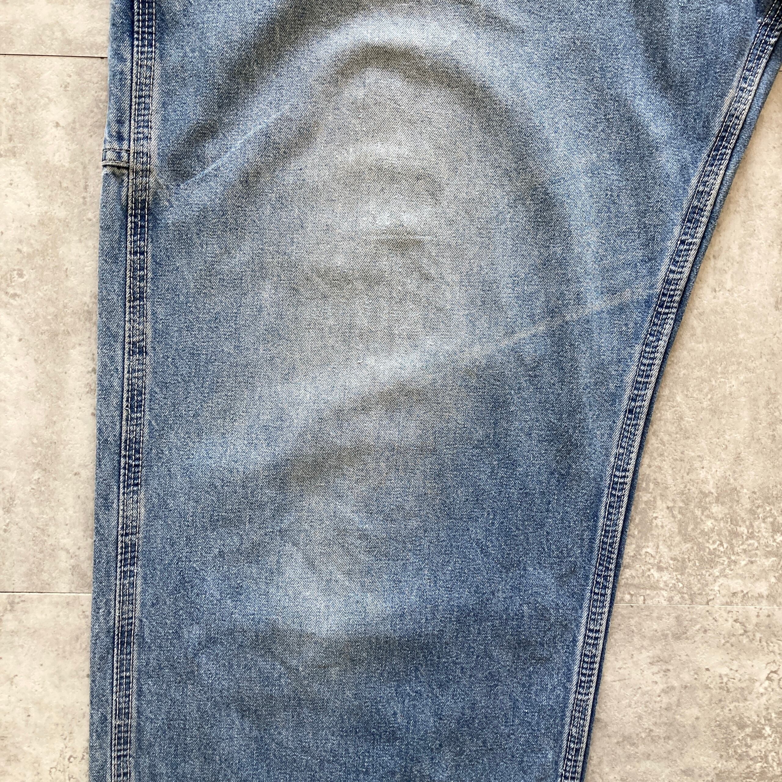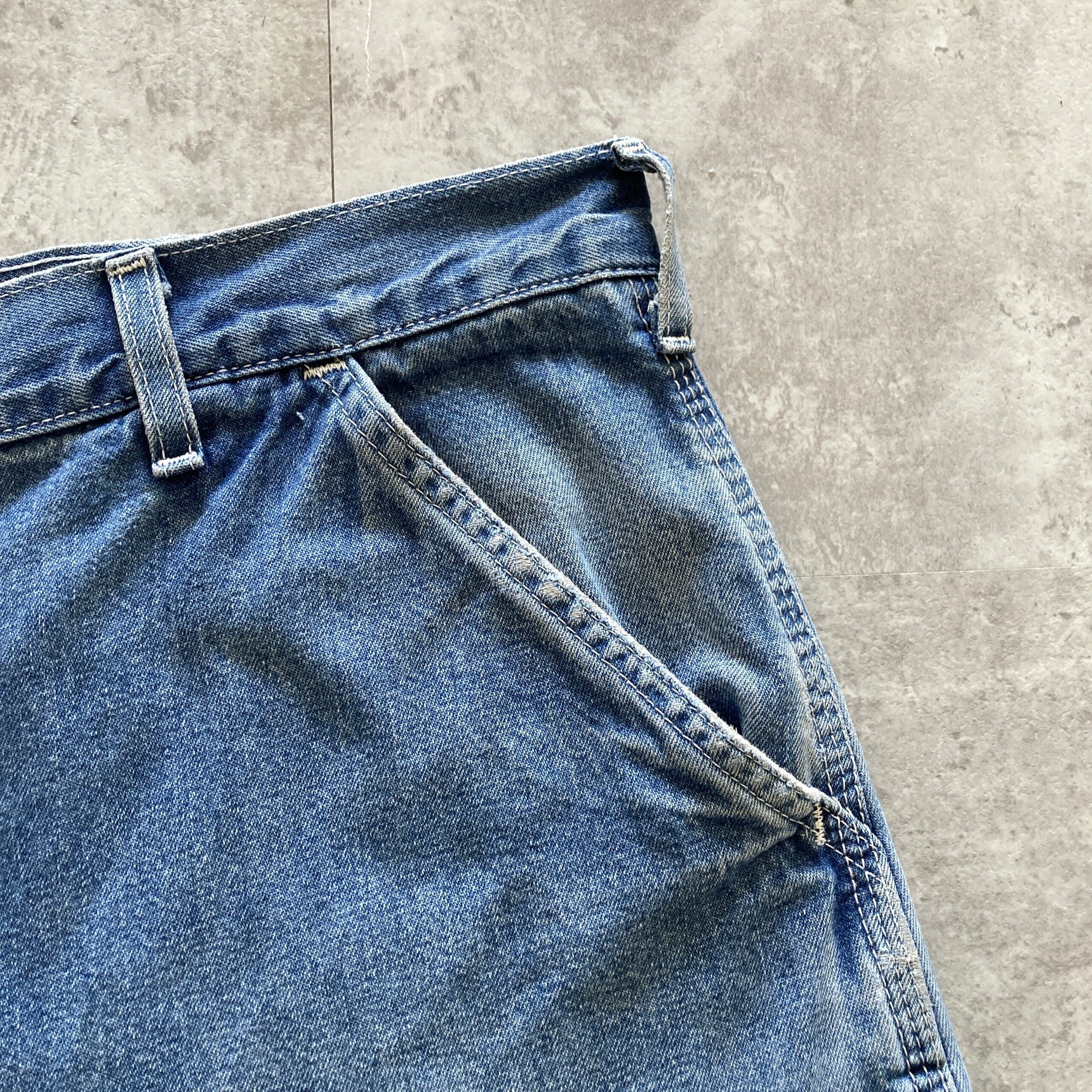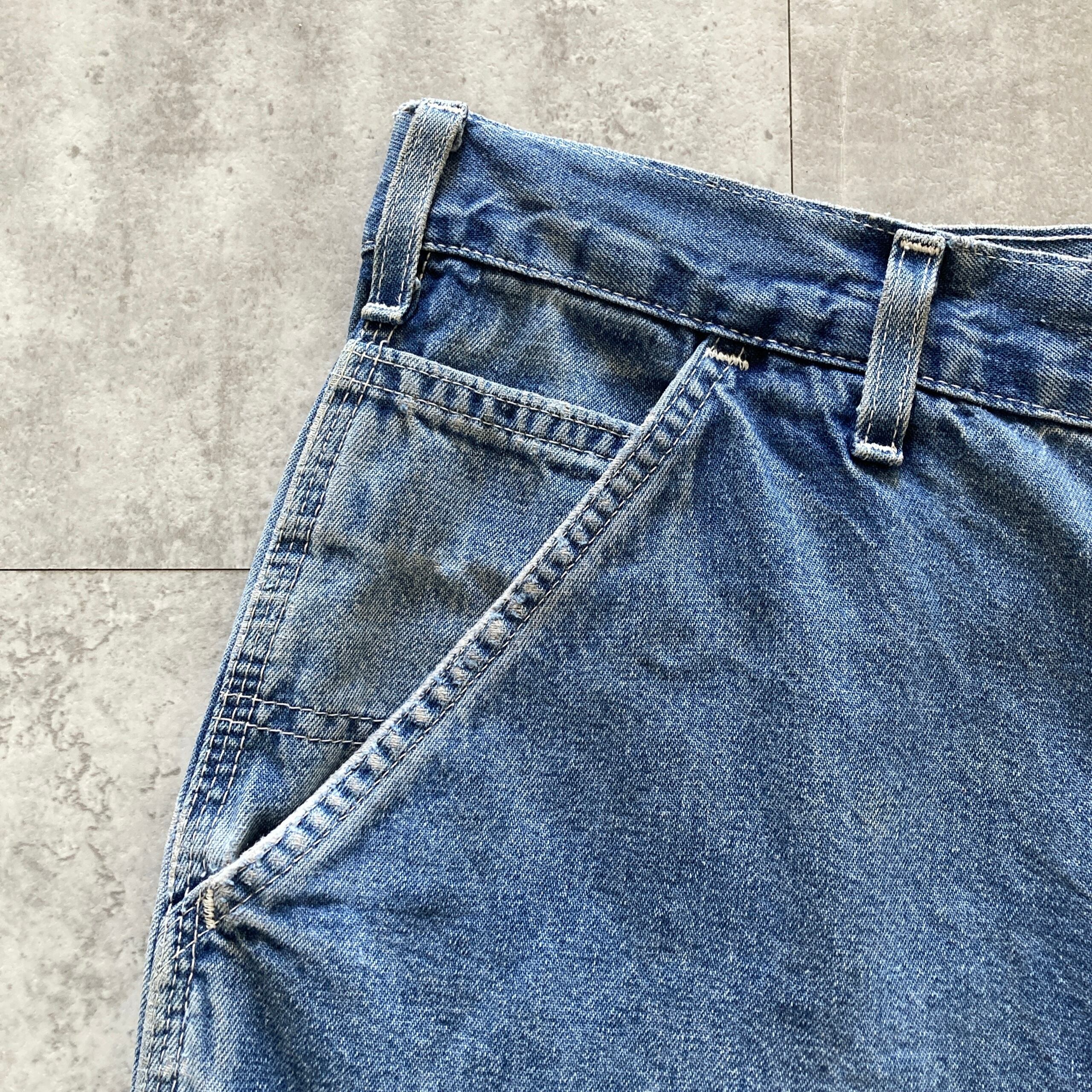 【40×32】carhartt カーハート ジッパーフライ ワンポイント レザーパッチ ビッグサイズ 縦落ち ヒゲ ペインターパンツ デニムパンツ