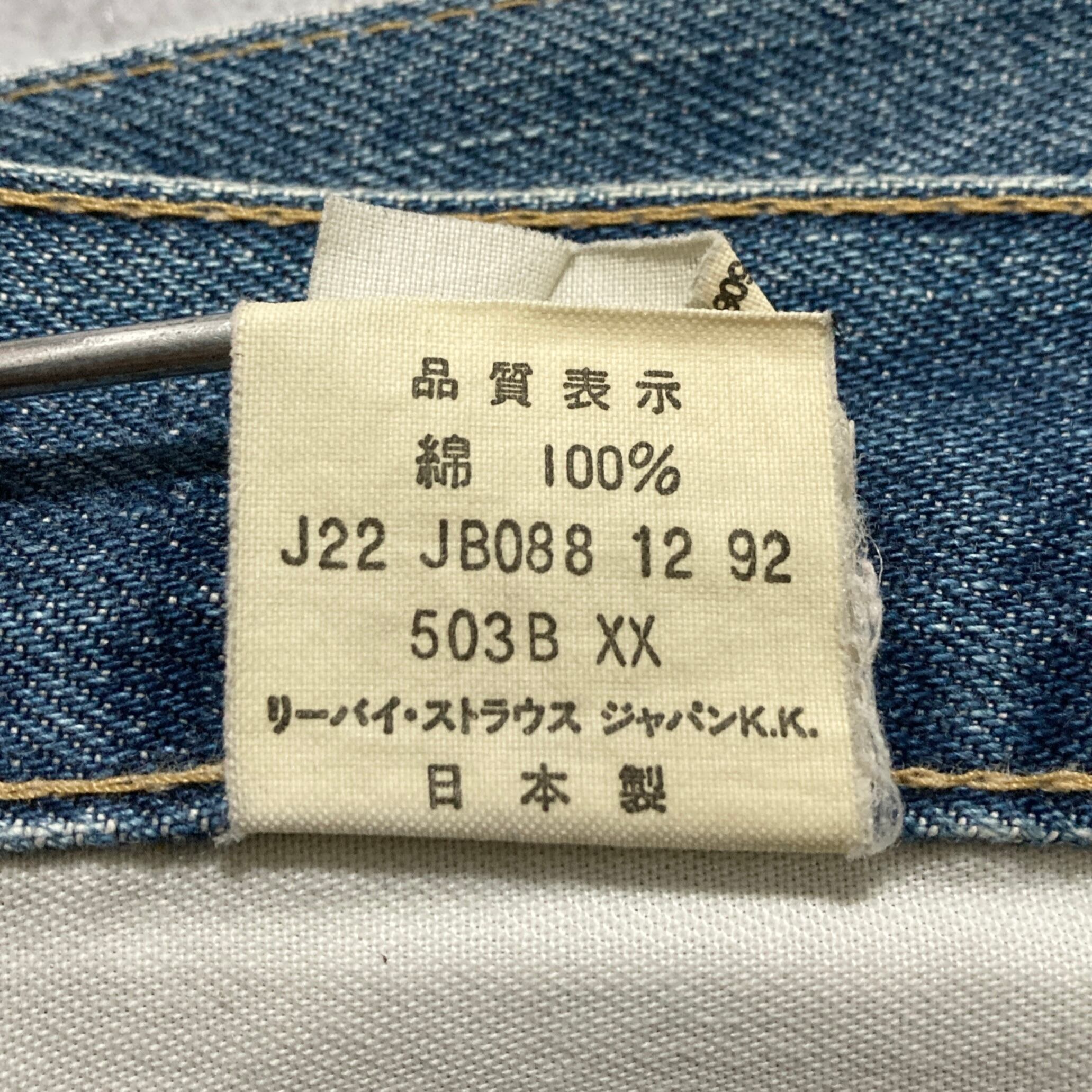 【W31 L34】90’s Levis 503BXX リーバイス LVC 140周年 92年製 裏ボタン刻印(J22) JAPAN製 日本製 BIGE 赤耳(白耳) セルビッチ レザーパッチ ボタンフライ 縦落ち ヒゲ デニムパンツ ジーンズ