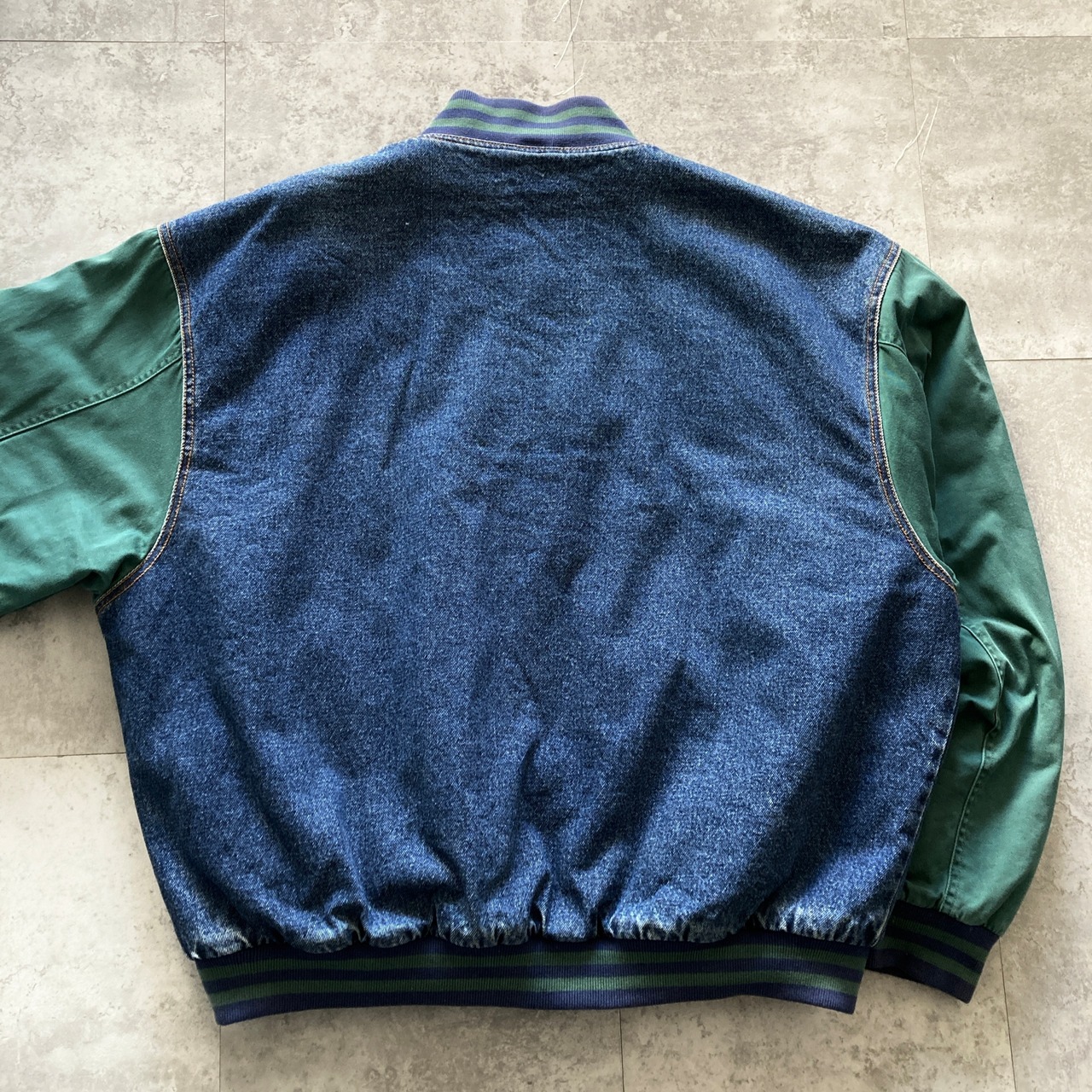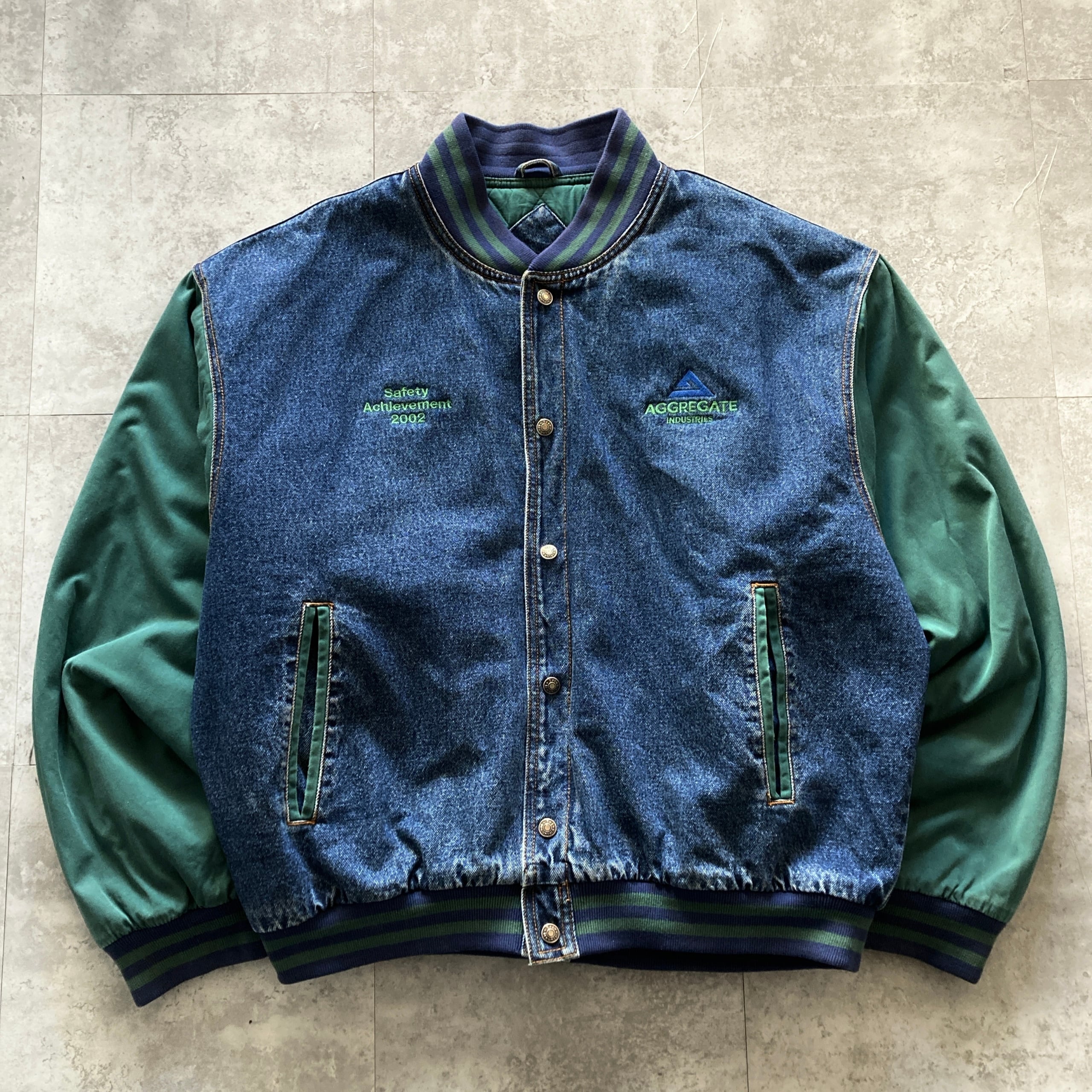 【Size.2XL】企業物 Tri-Mountain AGGREGATE INDUSTRIES ロゴ刺繍 裏地キルティング 袖切り替えし デニムスタジャン デニムジャケット | Only_Denim+