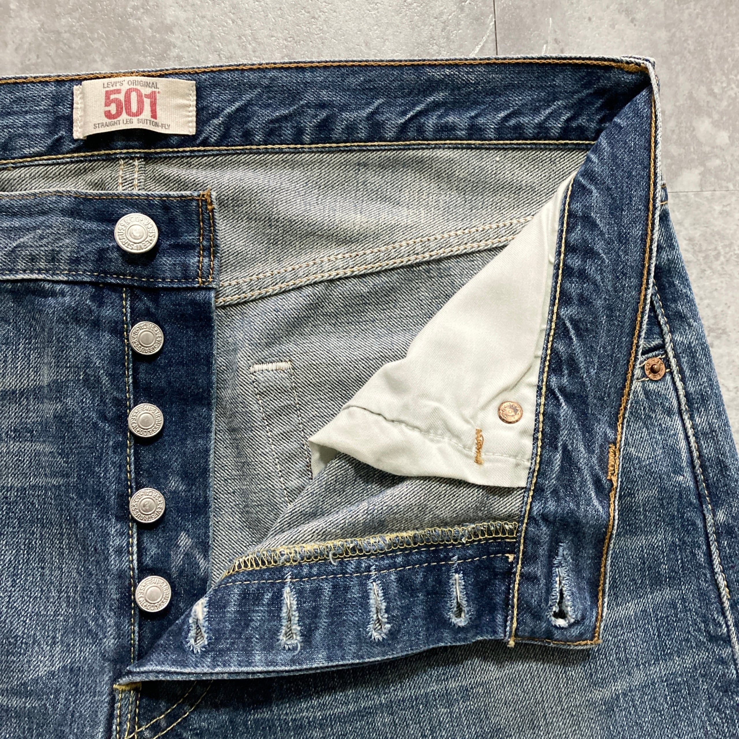【W33 L32】00‘s Euro Levis 501 ユーロリーバイス トルコ製 08年製 縦落ち ヒゲ ダメージ ボタンフライ デニムパンツ ジーンズ