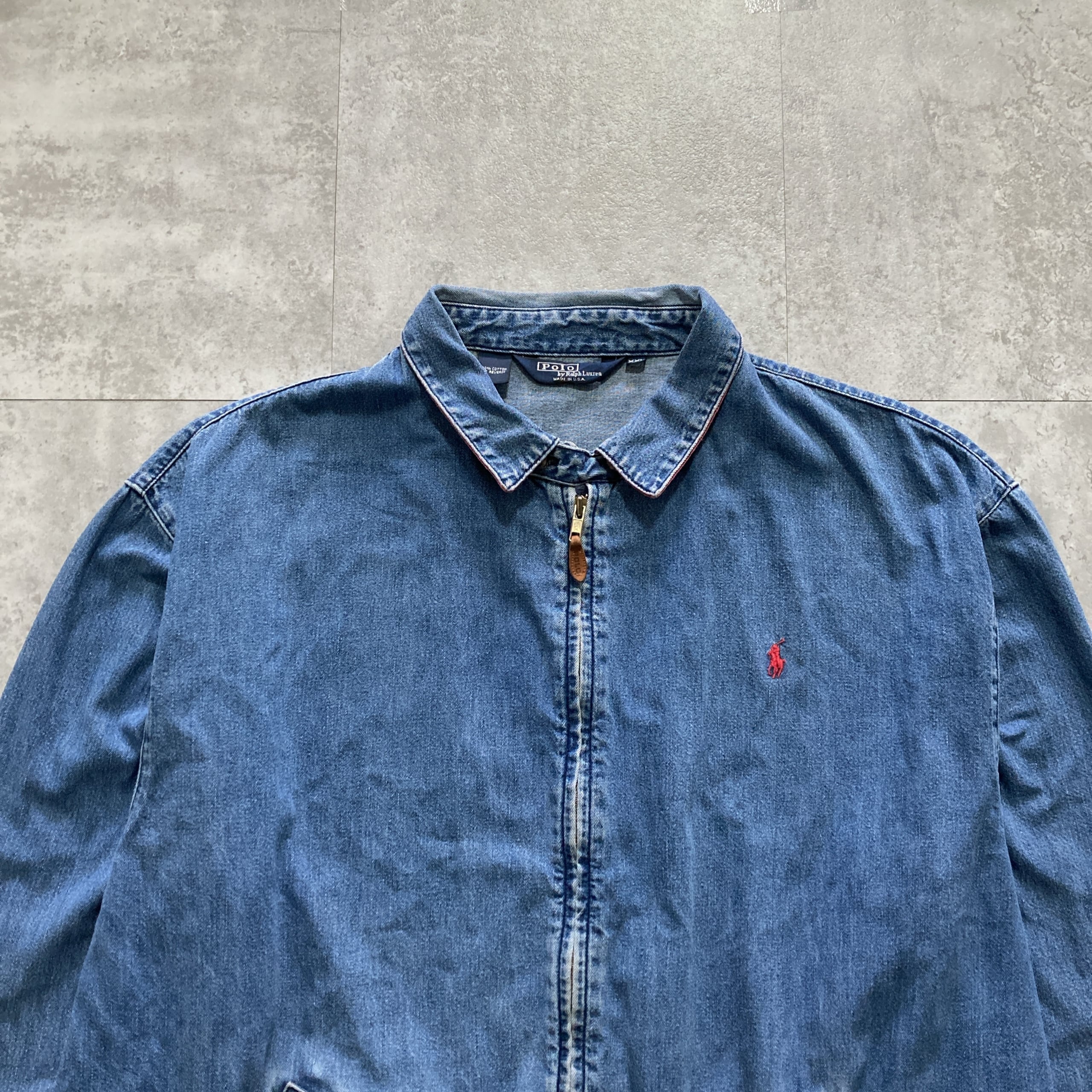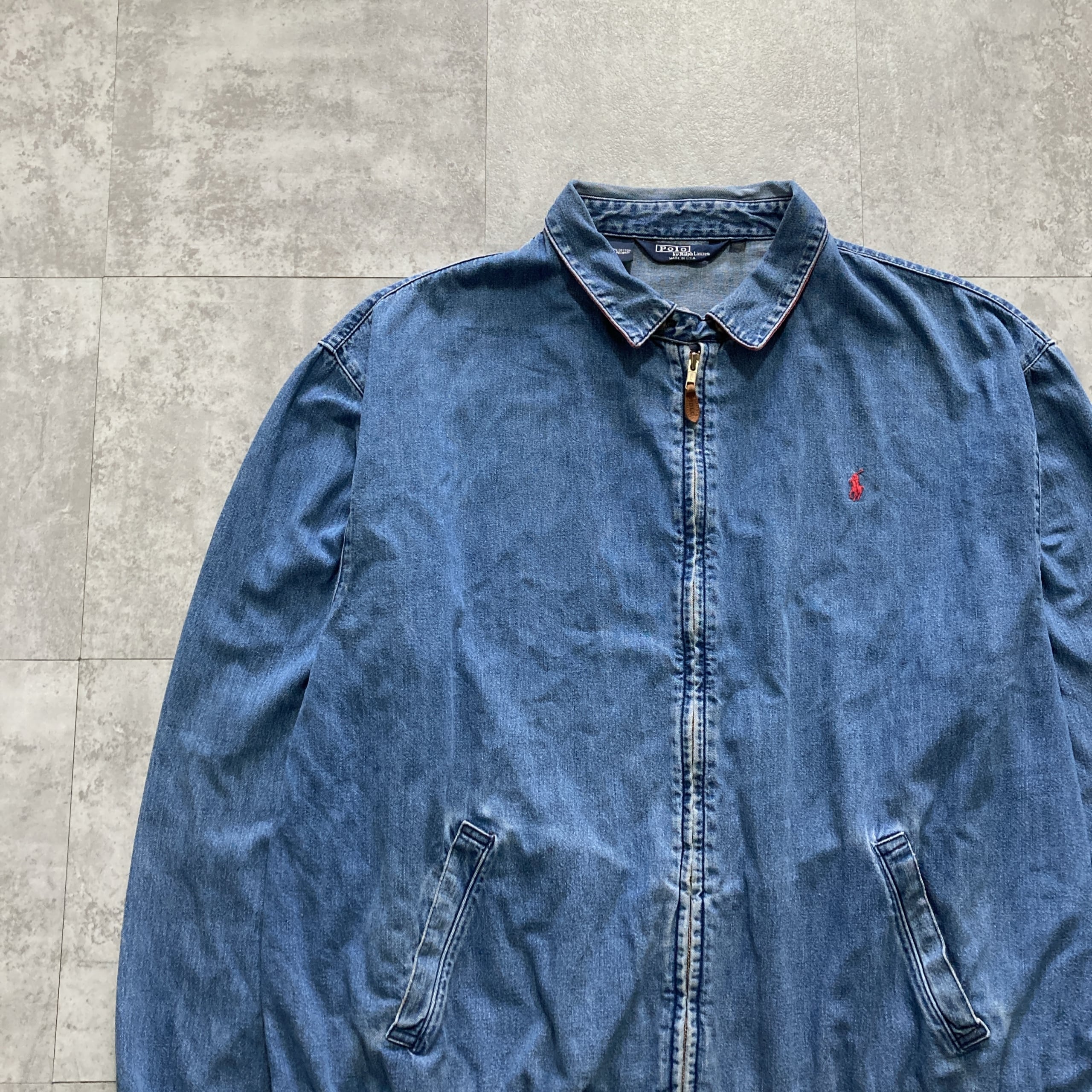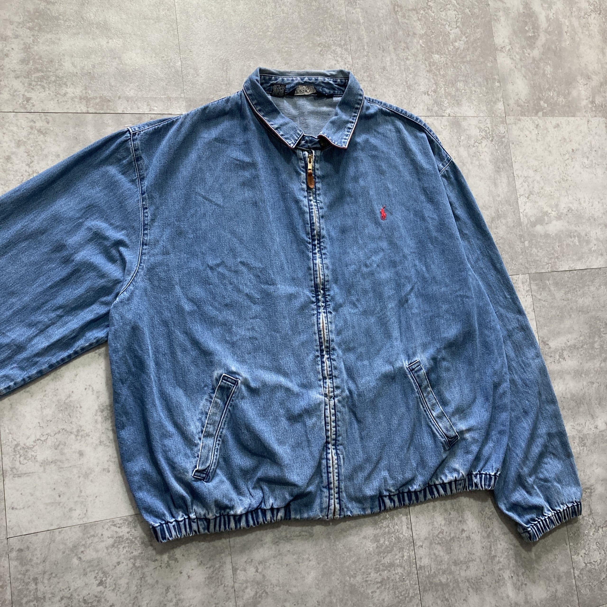 【Size.XXL】80‘s POLO by RALPH LAUREN ポロバイラルフローレン USA製 アメリカ製 ワンポイント ロゴ刺繍 ビッグサイズ スウィングトップ デニムジャケット