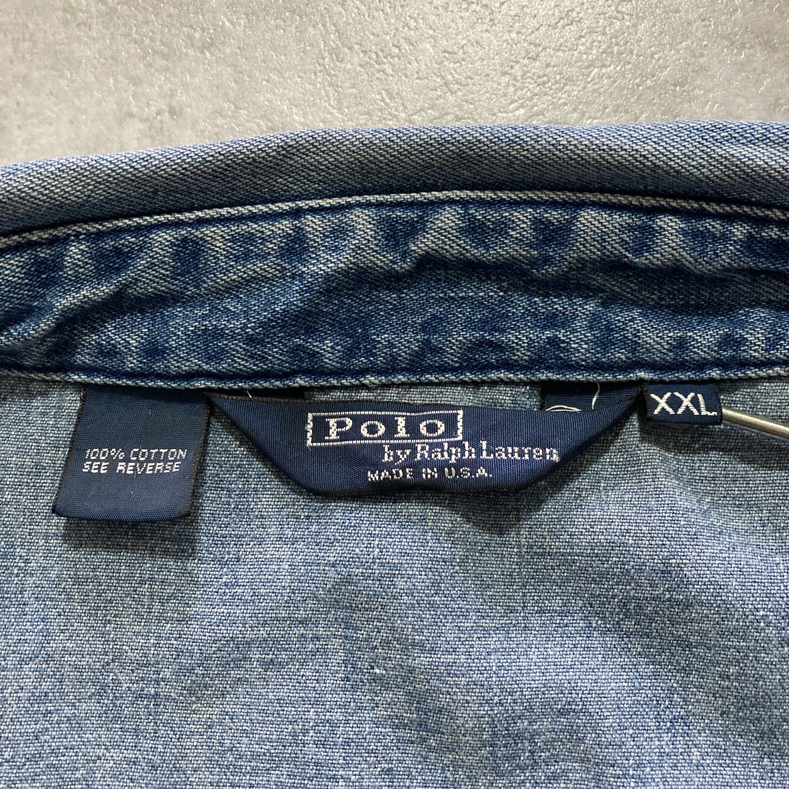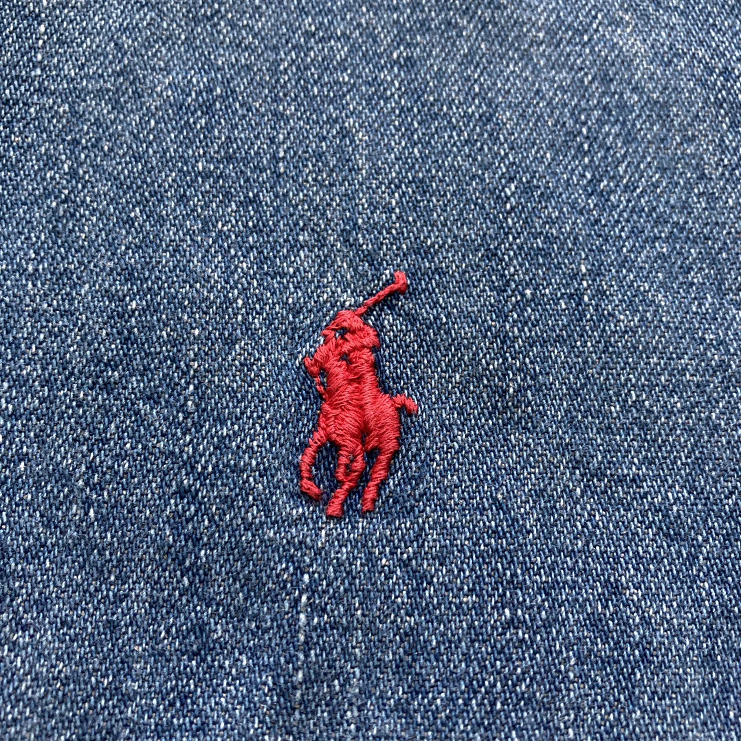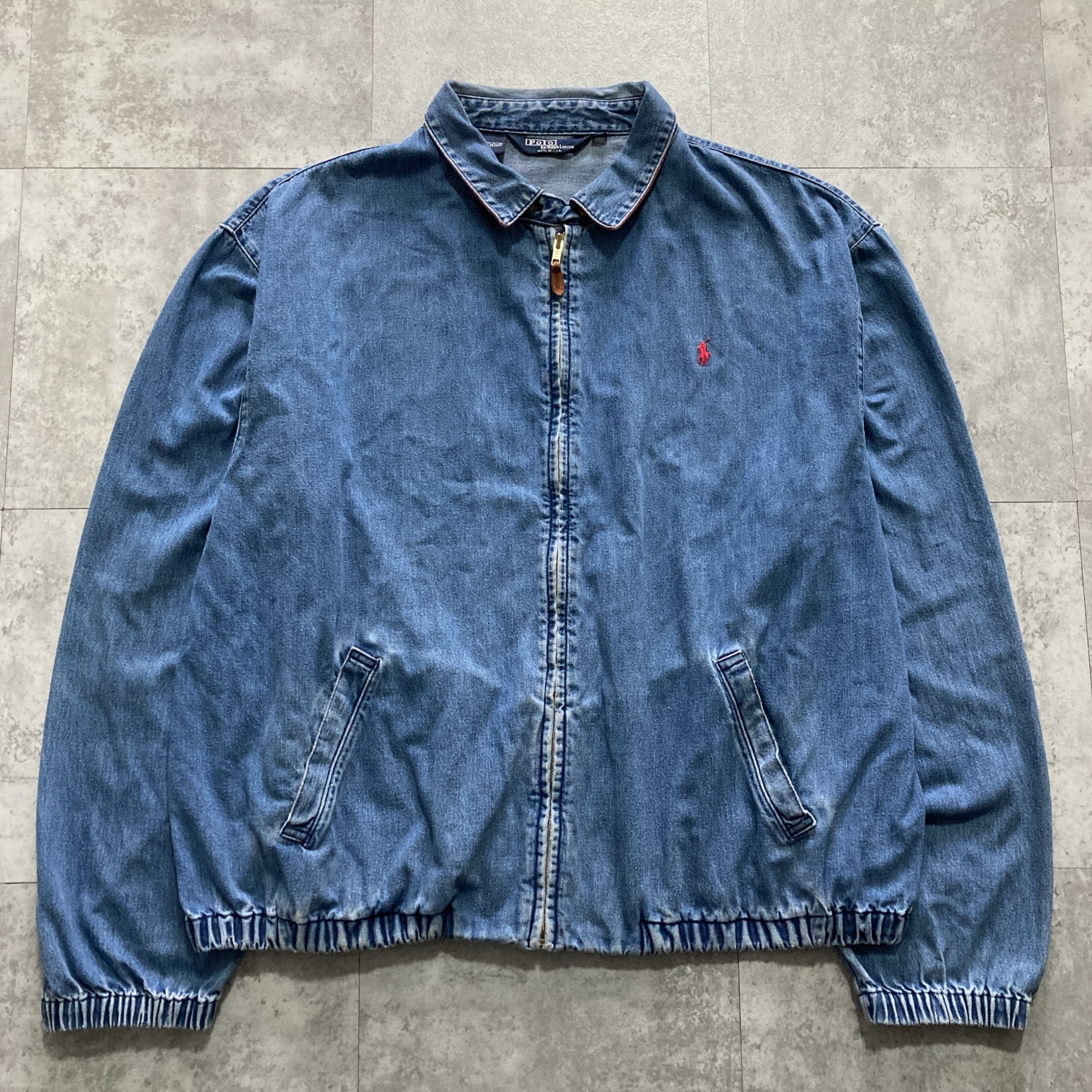 【Size.XXL】80‘s POLO by RALPH LAUREN ポロバイラルフローレン USA製 アメリカ製 ワンポイント ロゴ刺繍 ビッグサイズ スウィングトップ デニムジャケット