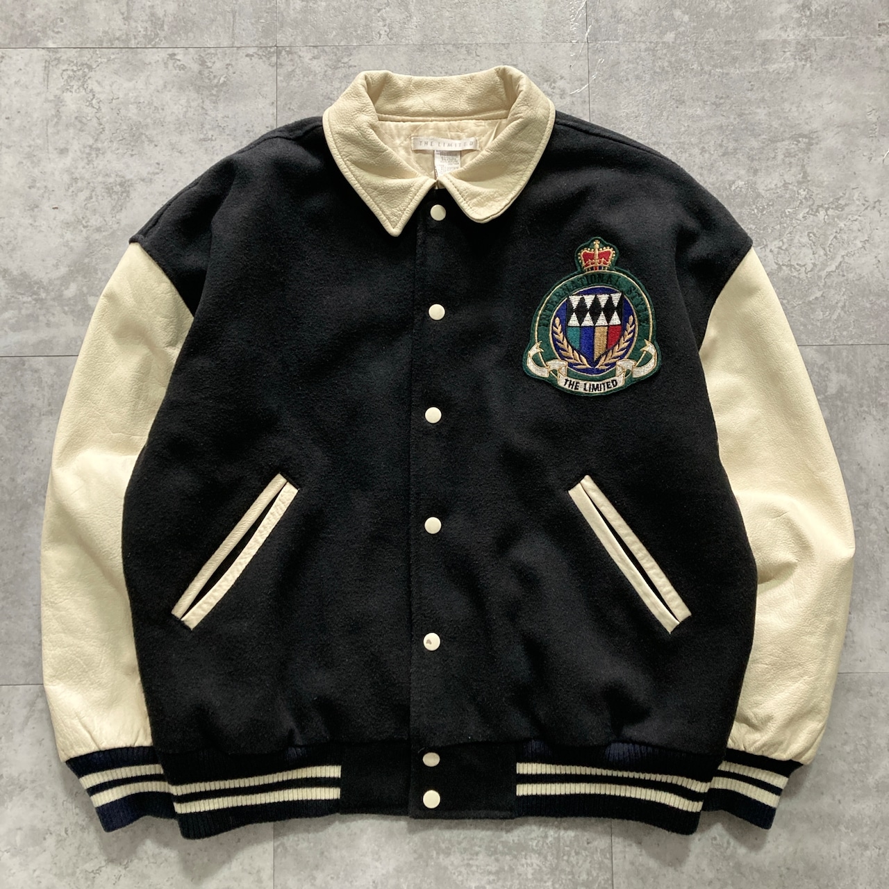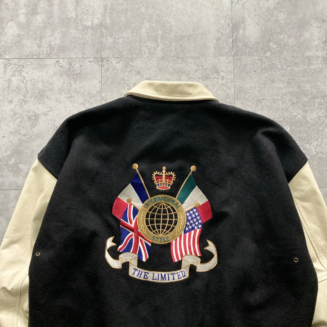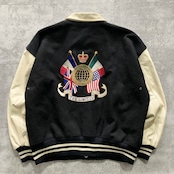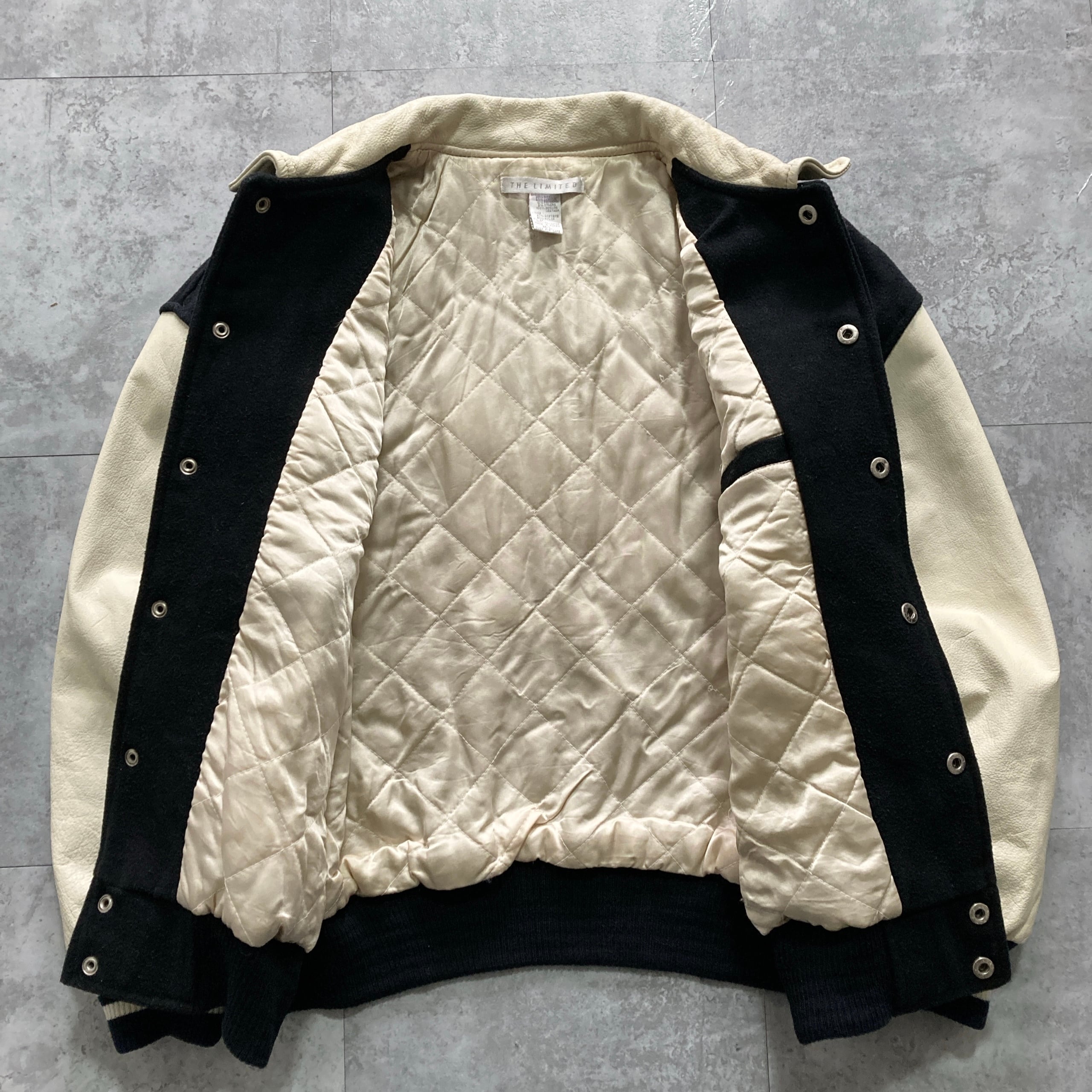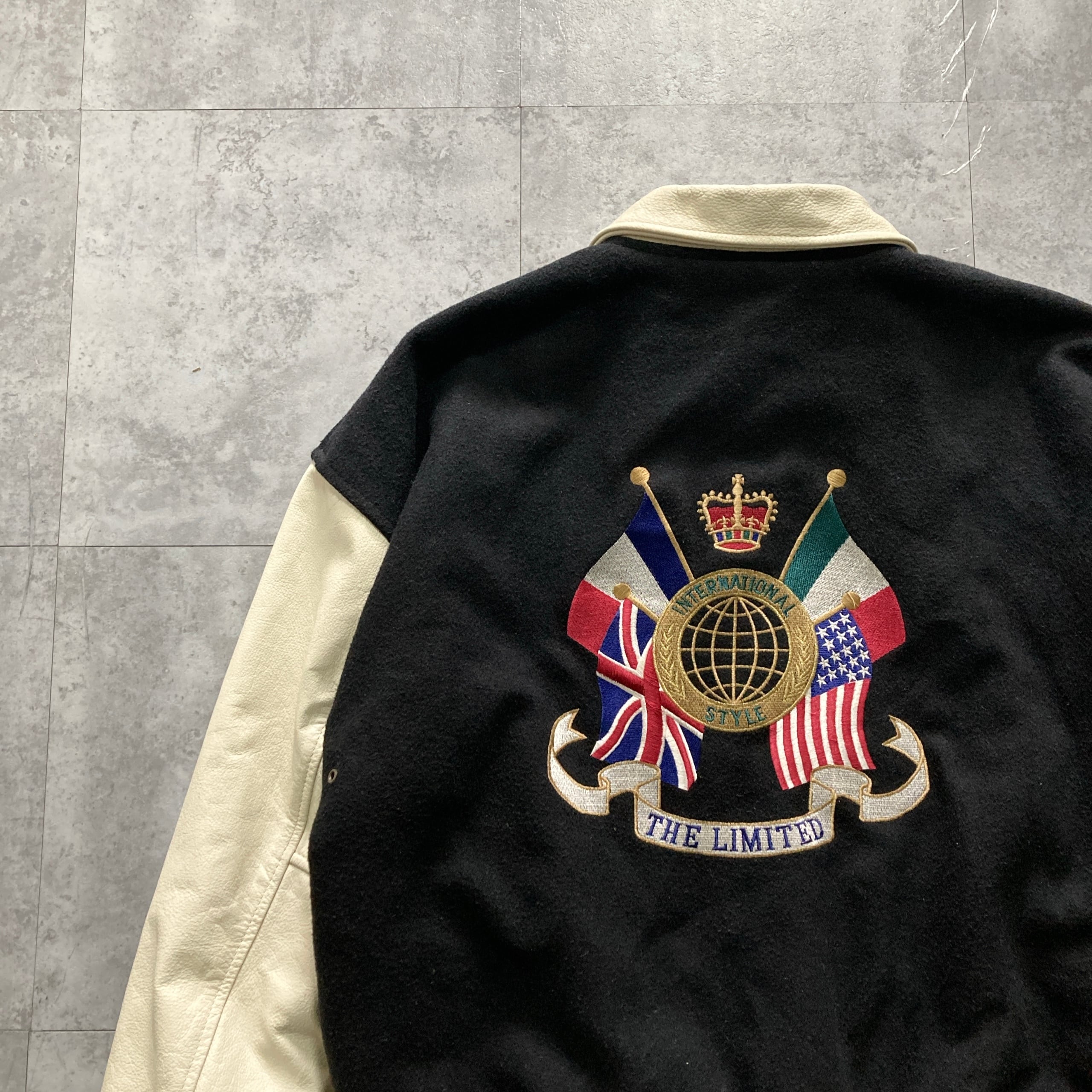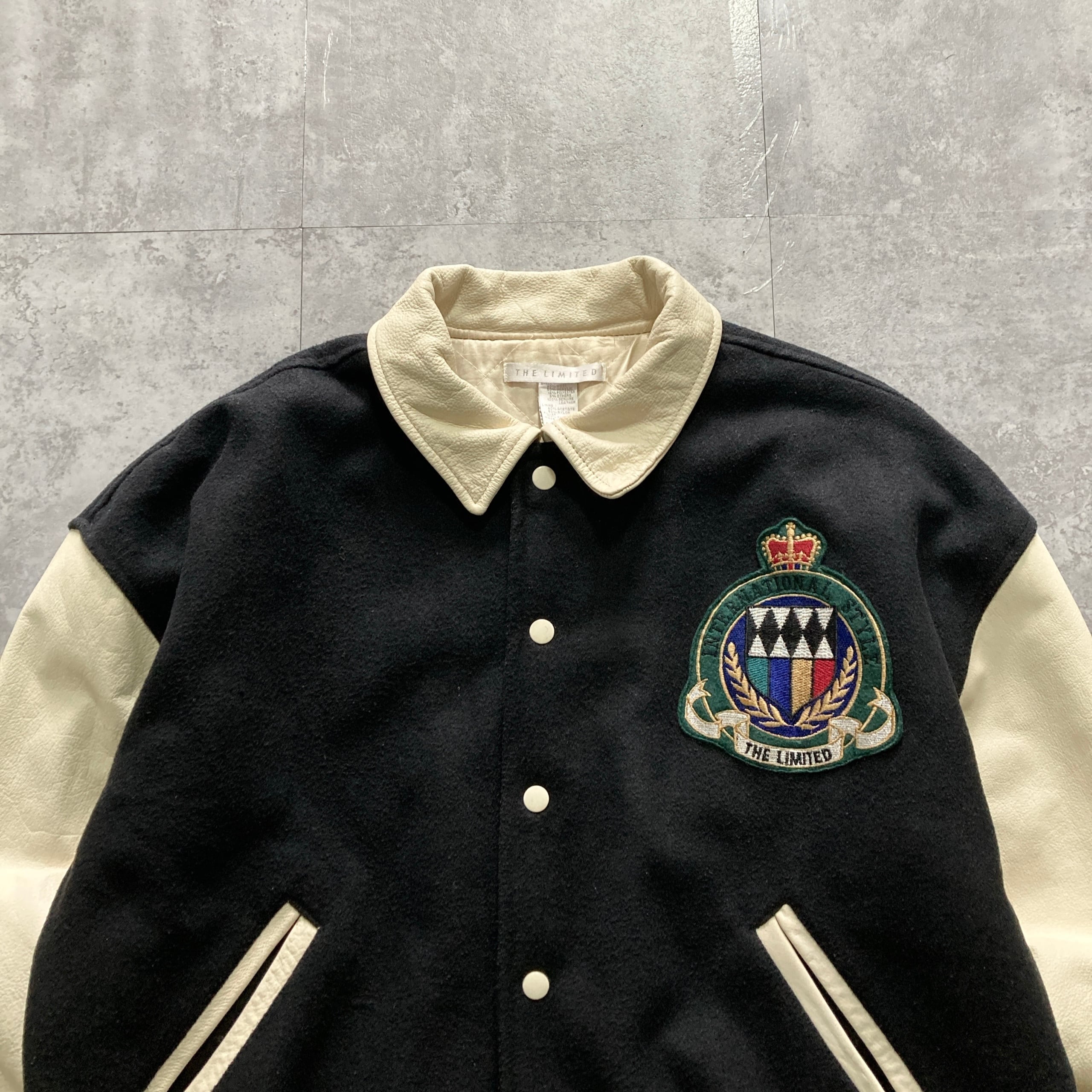 【Size.M/L】 THE LIMITED 両面刺繍 袖本革レザー 裏地キルティング スナップボタン モノトーンカラー スタジャン