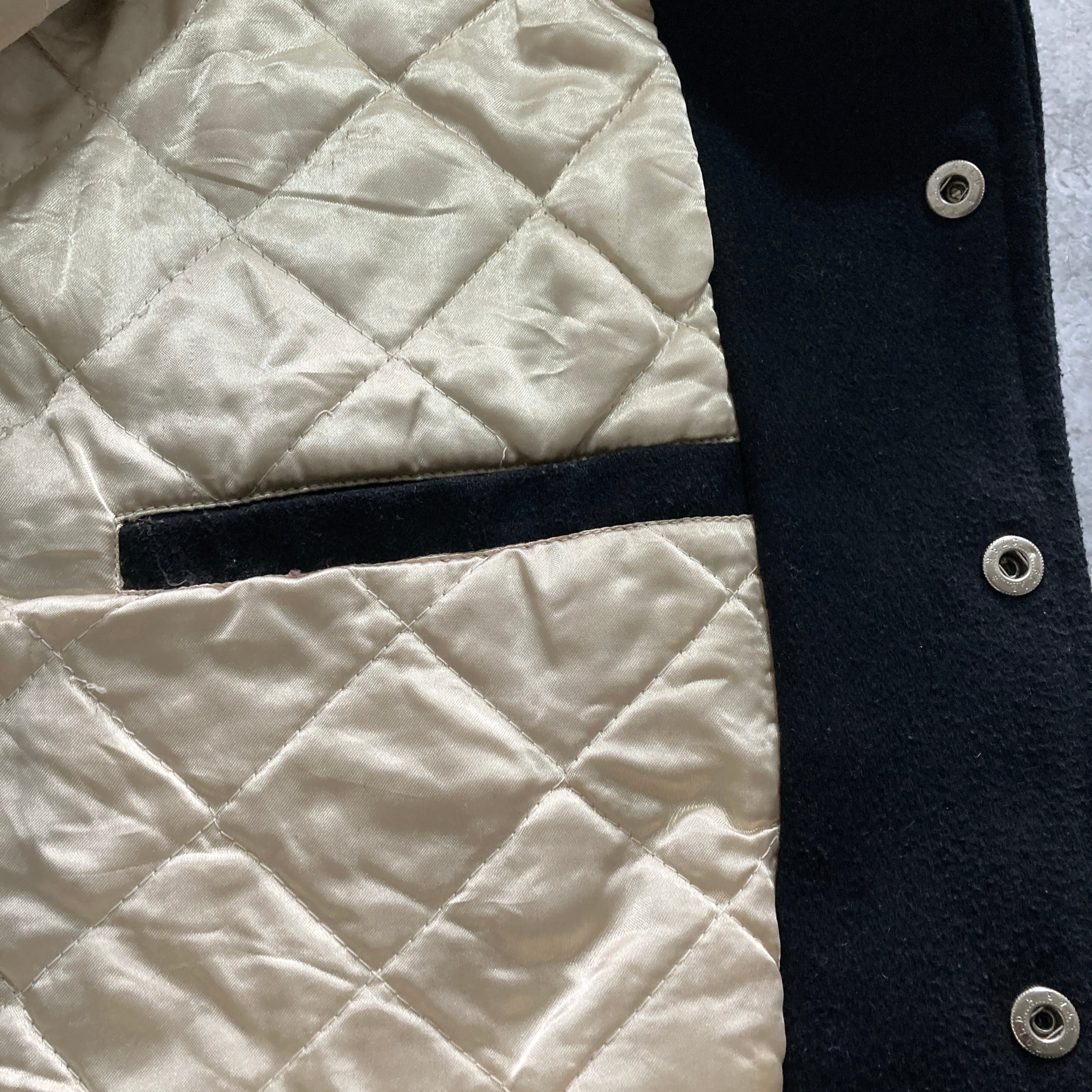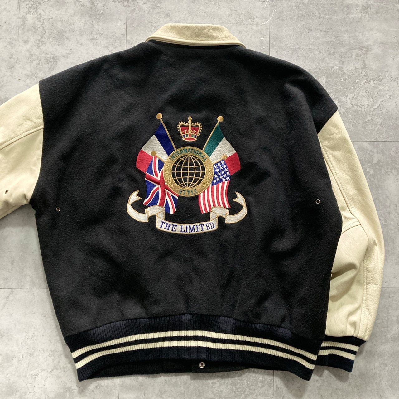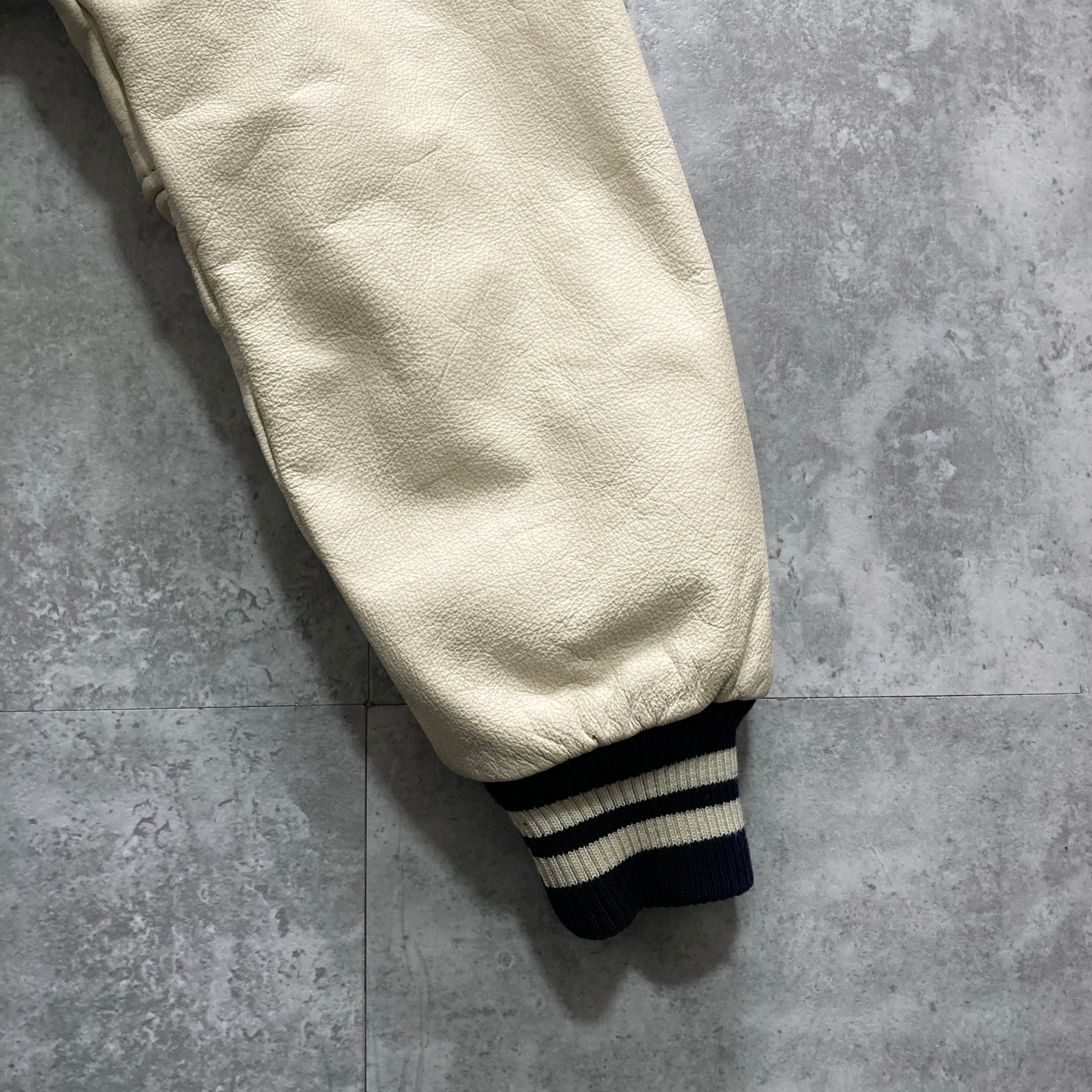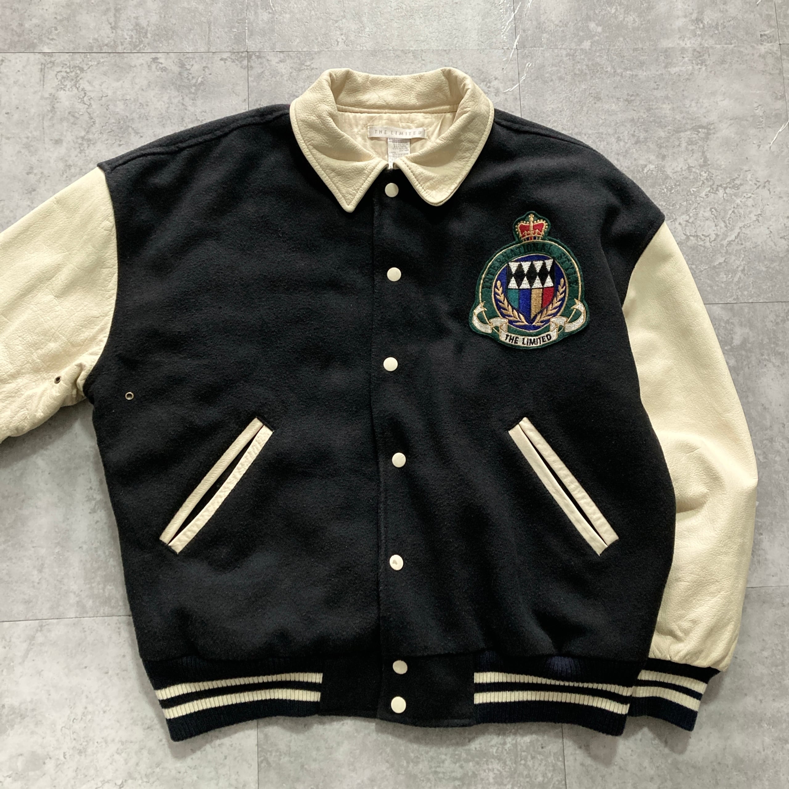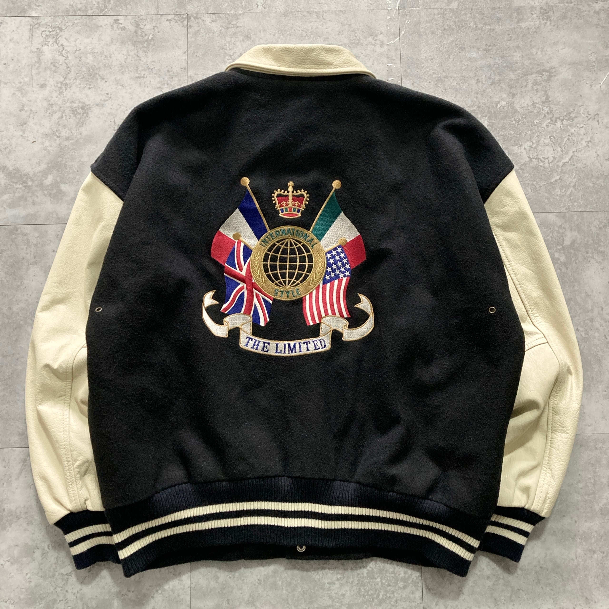 【Size.M/L】 THE LIMITED 両面刺繍 袖本革レザー 裏地キルティング スナップボタン モノトーンカラー スタジャン