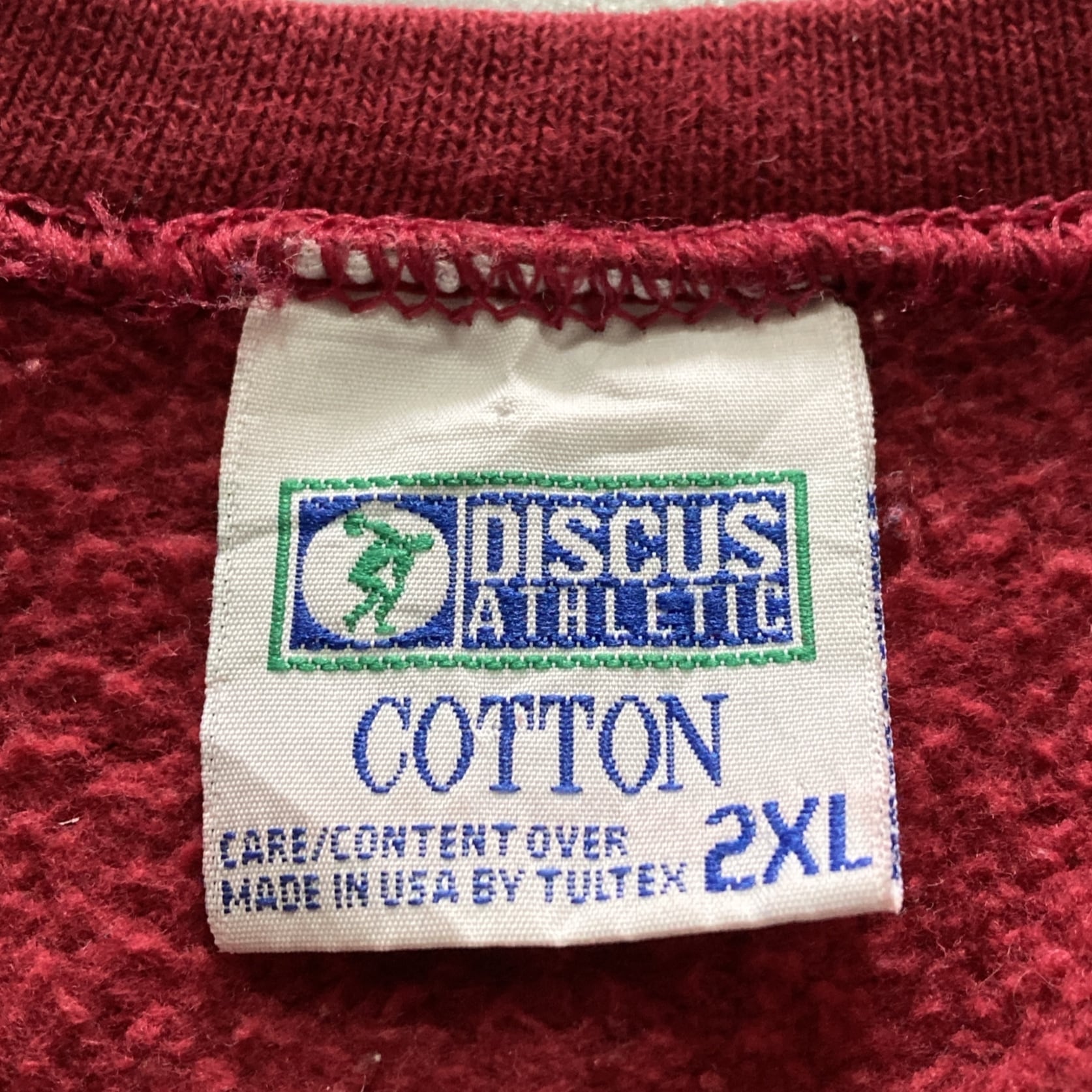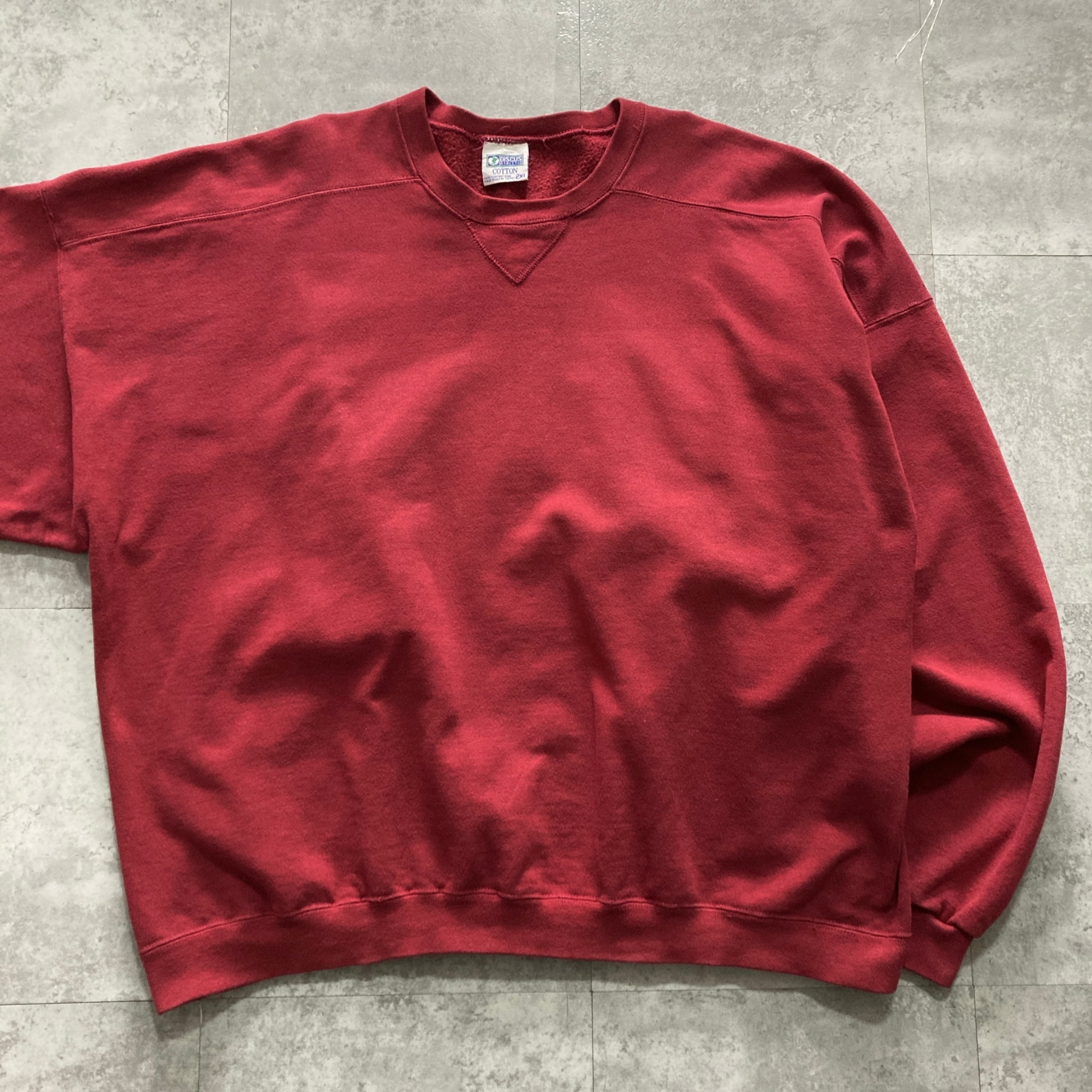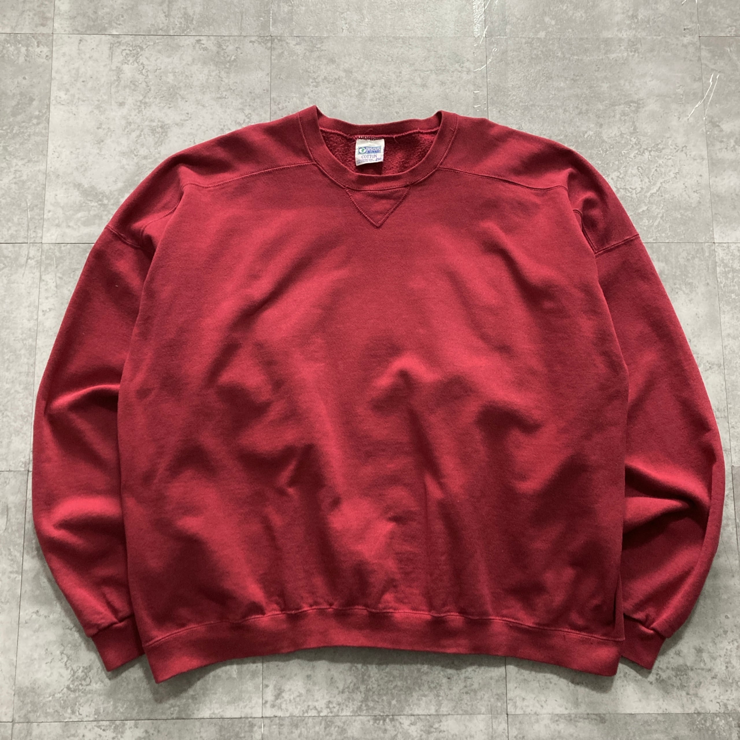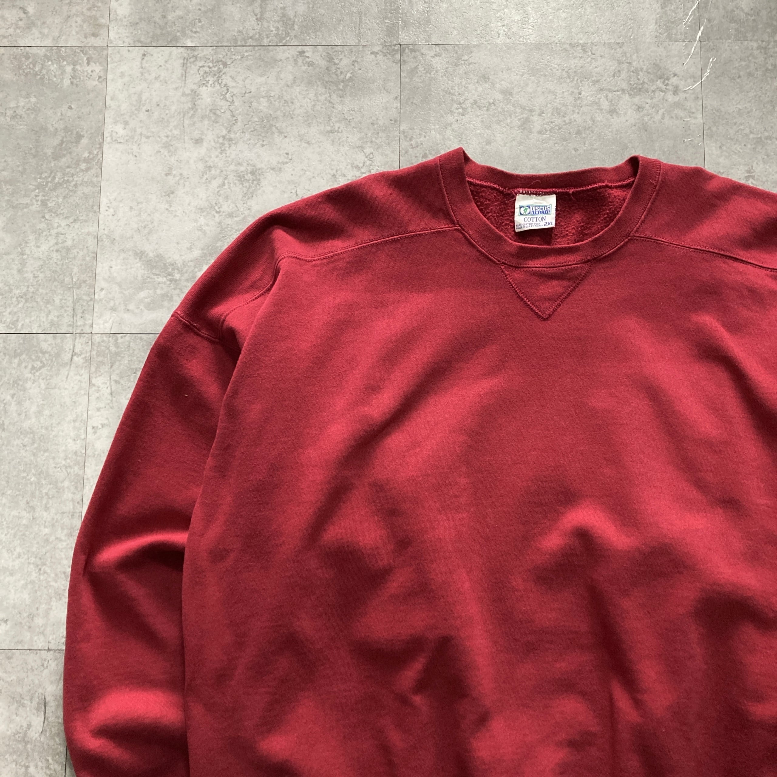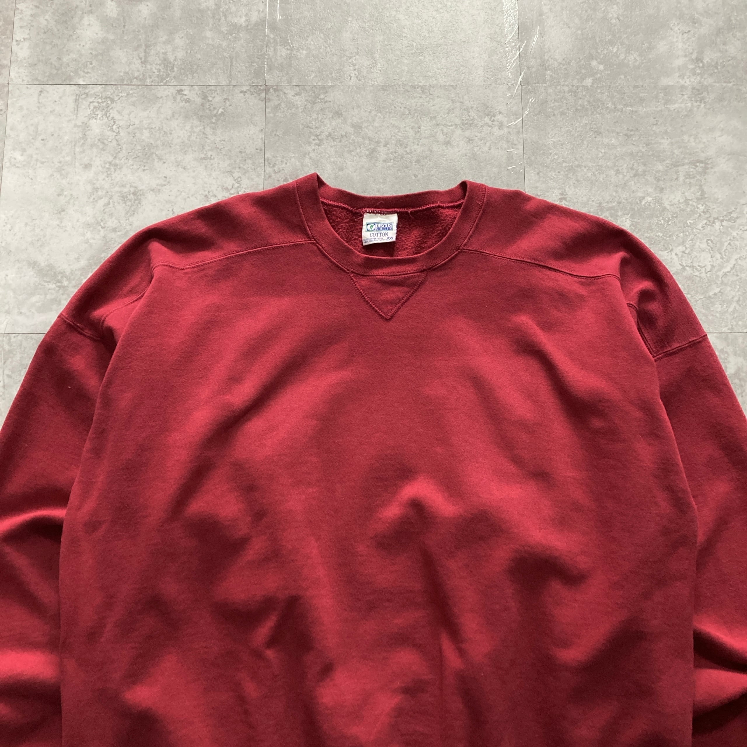 【USA製】90s DISCUS ディスカス 表記2XL アメリカ製 前V 無地 スウェット