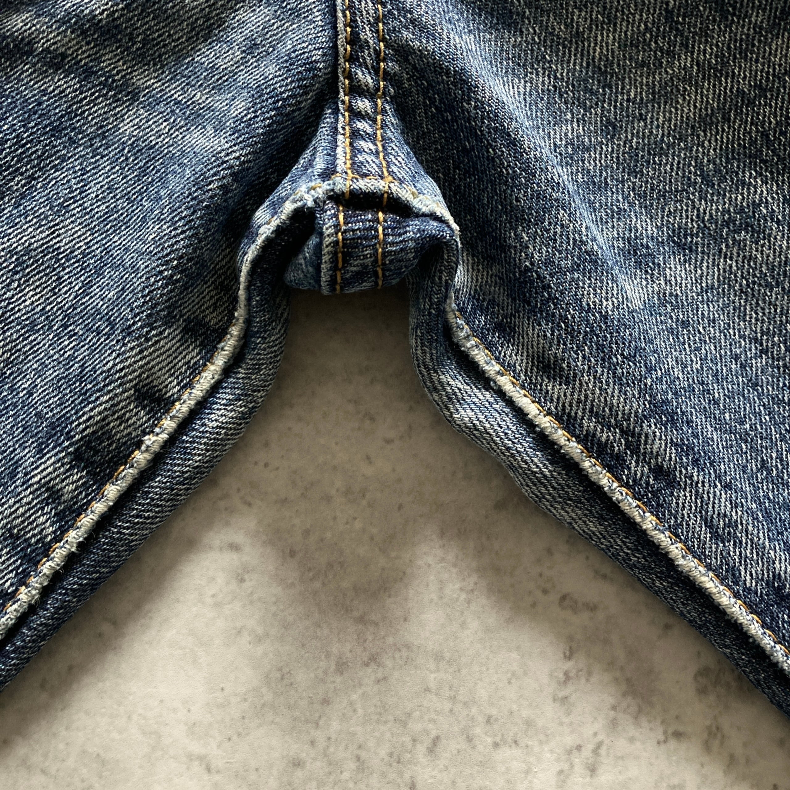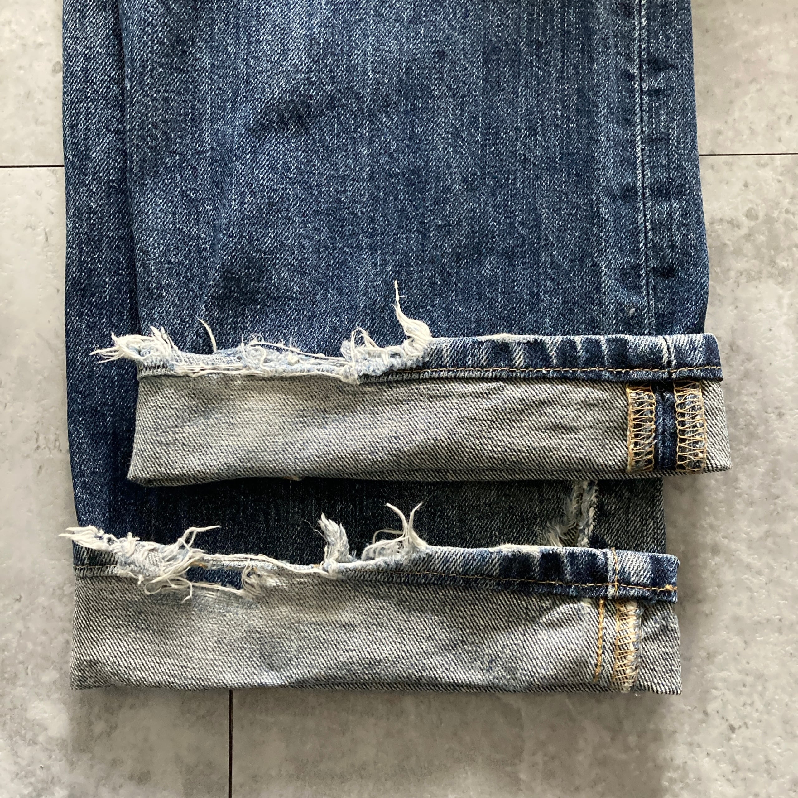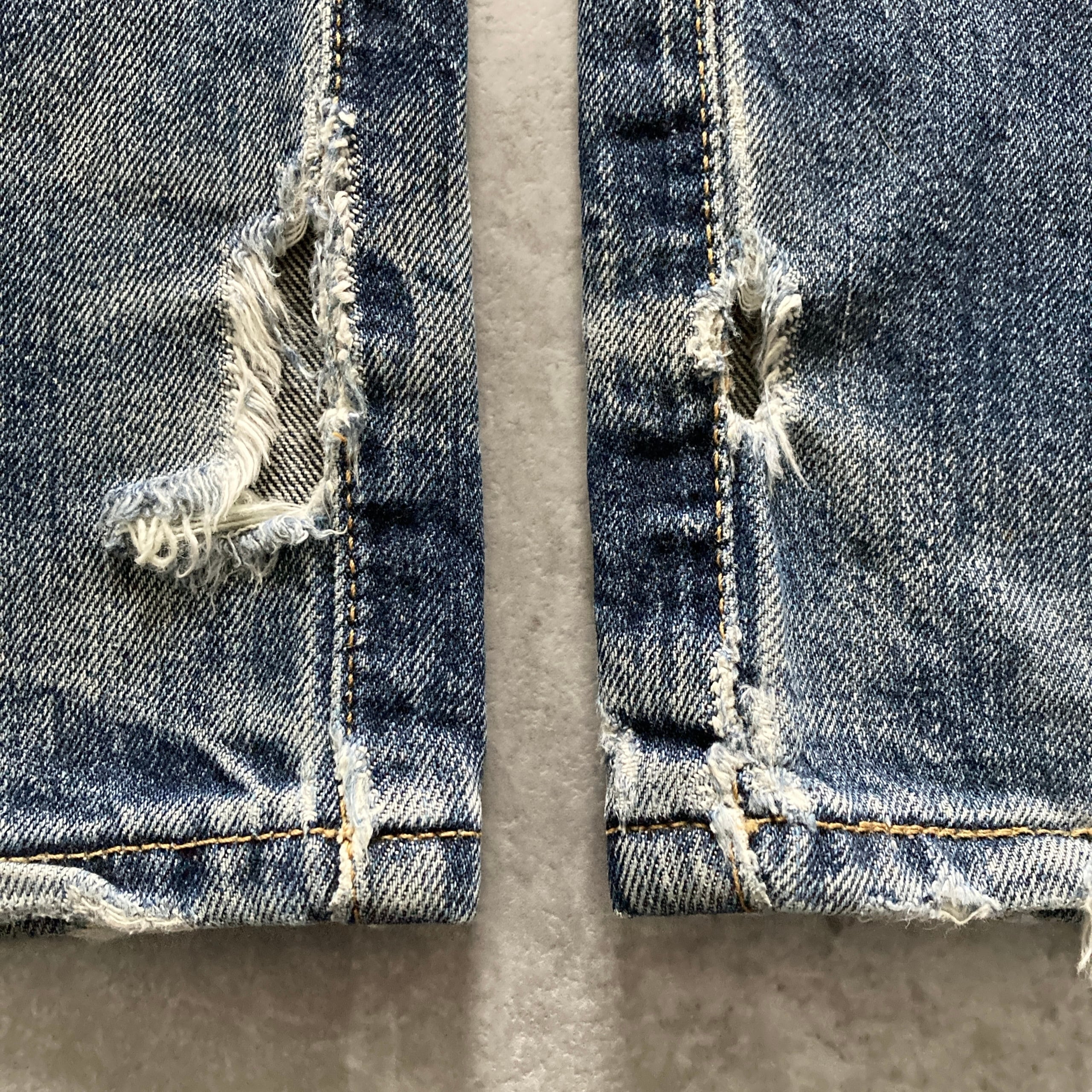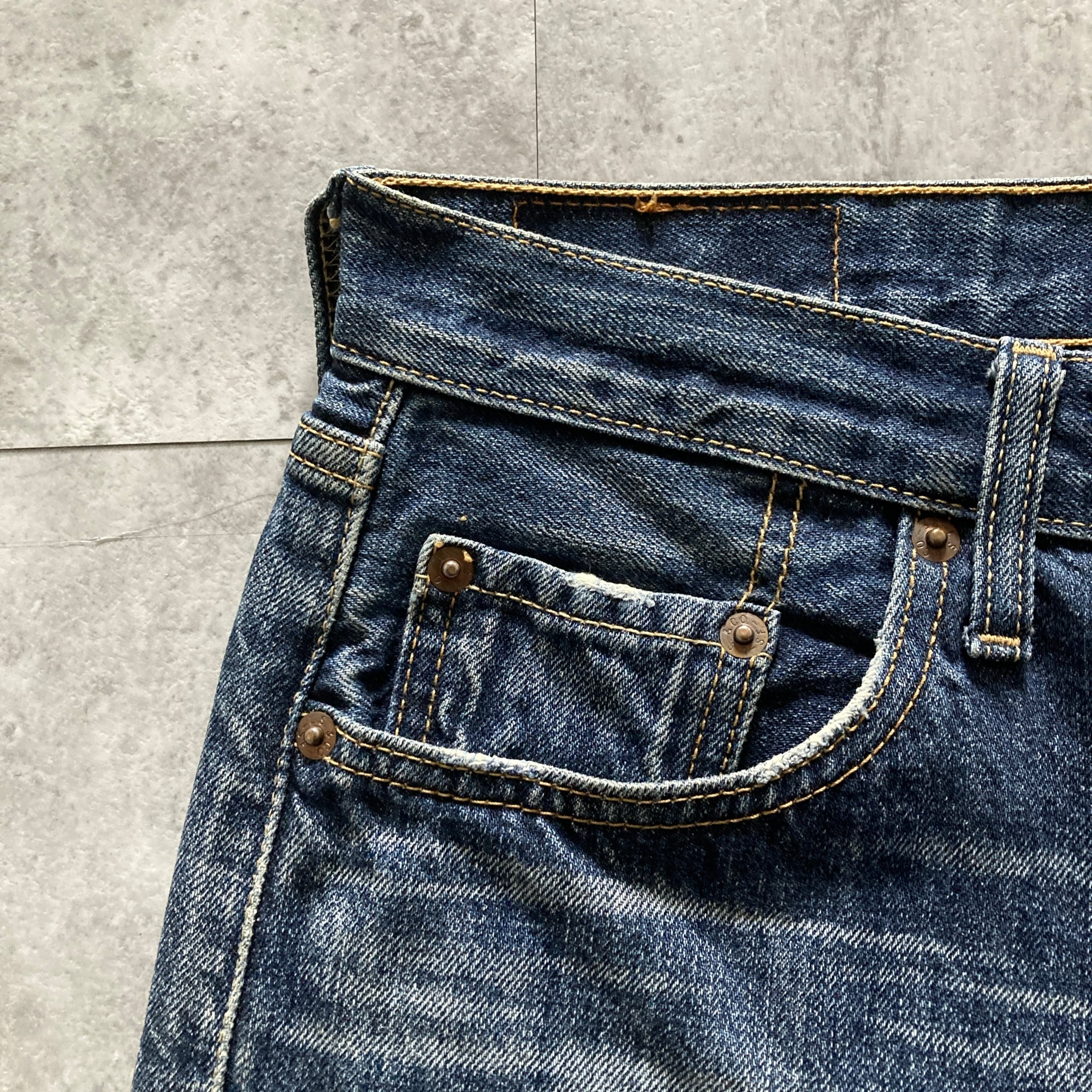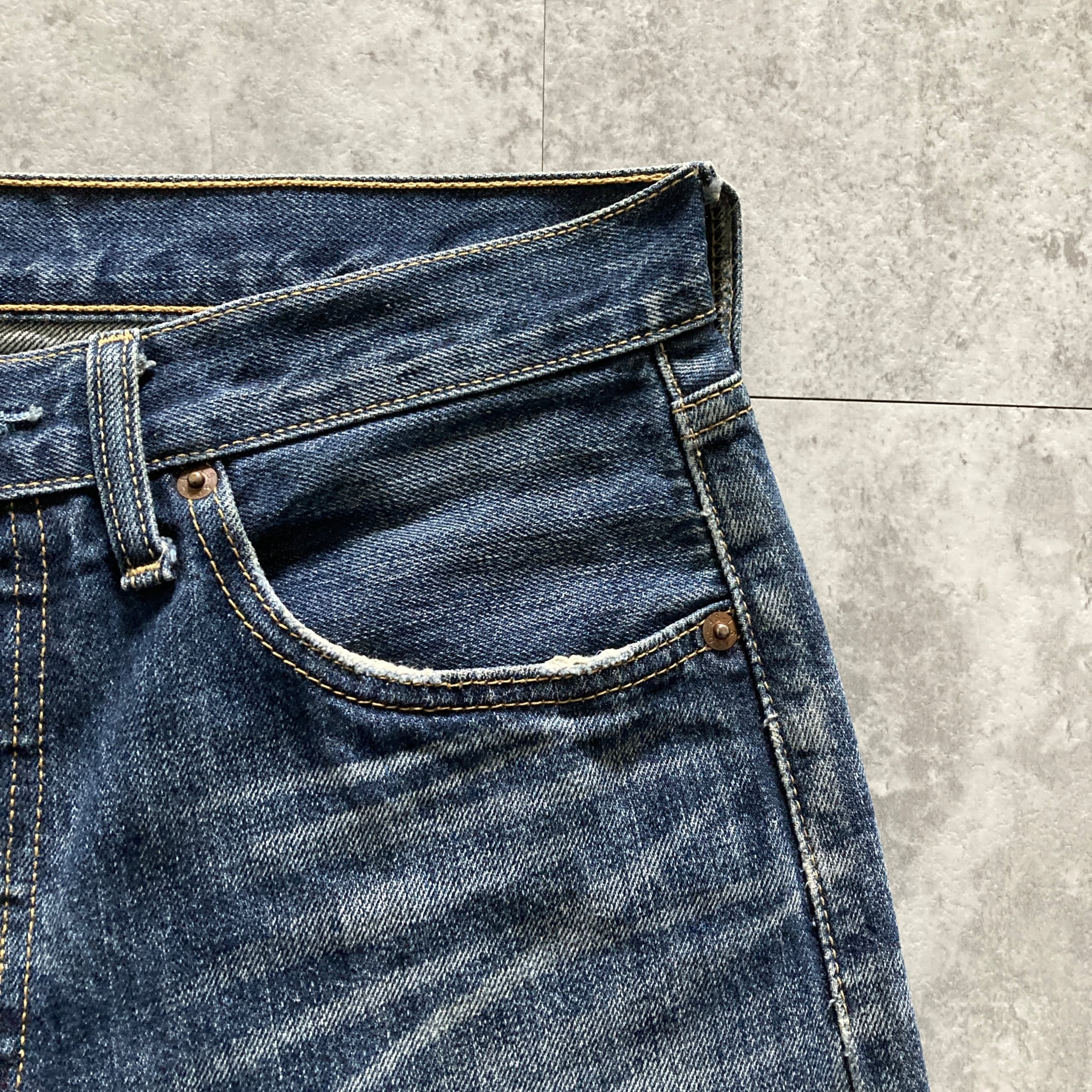 ・前後ポケット.膝.股付近.裾に擦れた傷あり