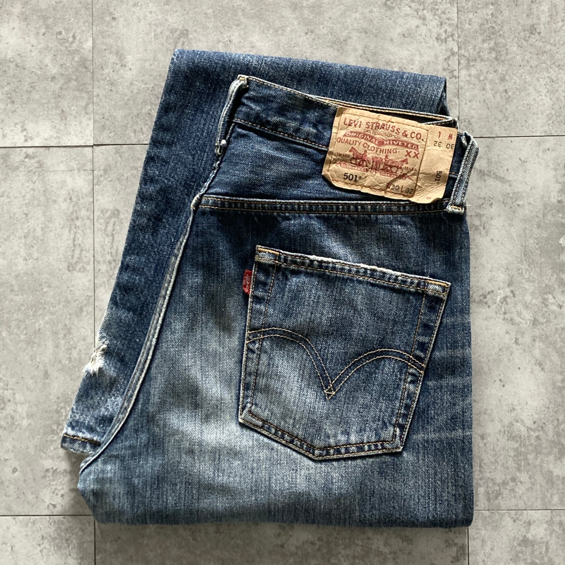 【W30 L32】00‘s Levis 501 リーバイス 07年製 ボタンフライ 縦落ち ヒゲ ハチノス ダメージ デニムパンツ ジーンズ