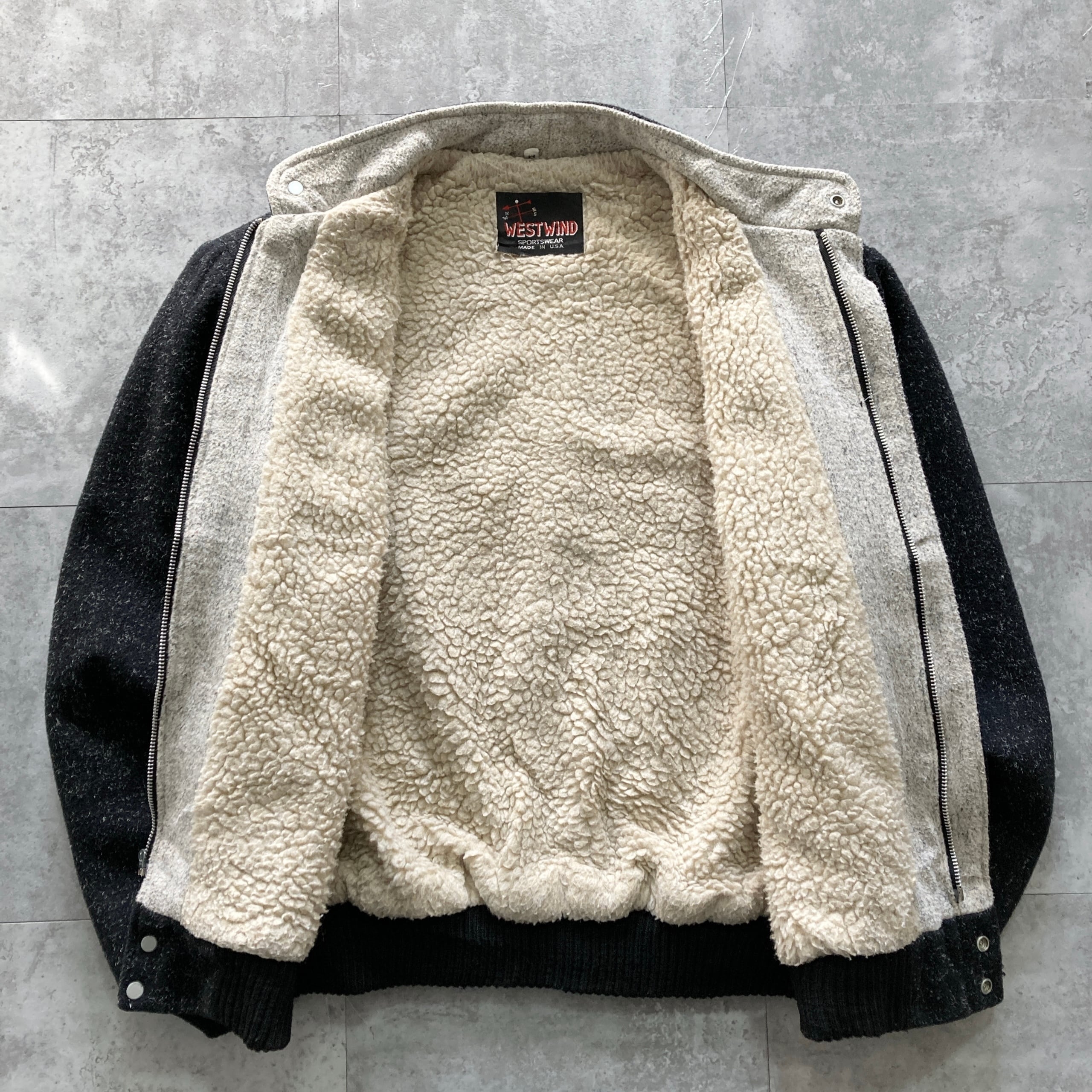 【USA製】80s WESTWIND 表記M スタンドカラー ケンピツイード 比翼仕立て ウールボアジャケット