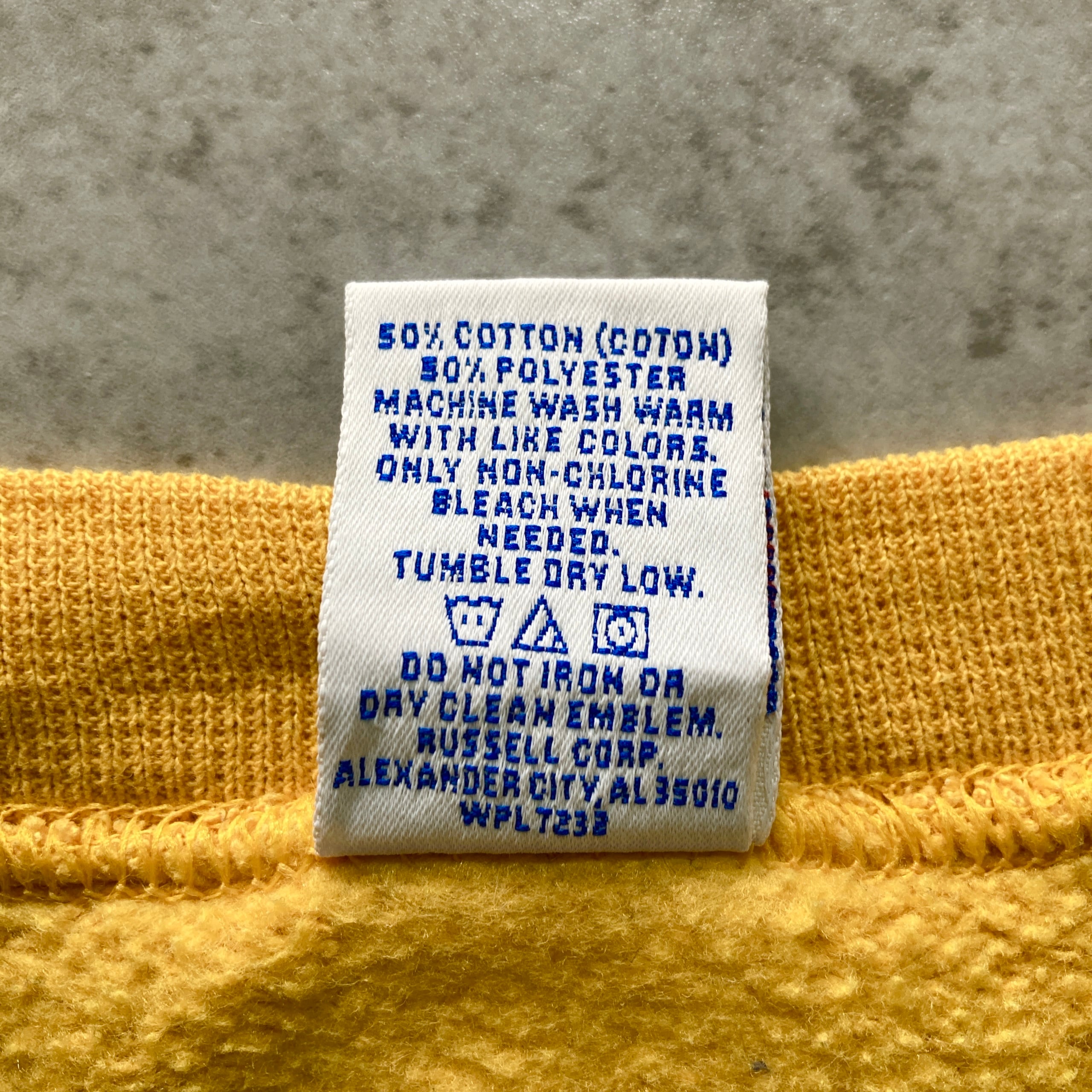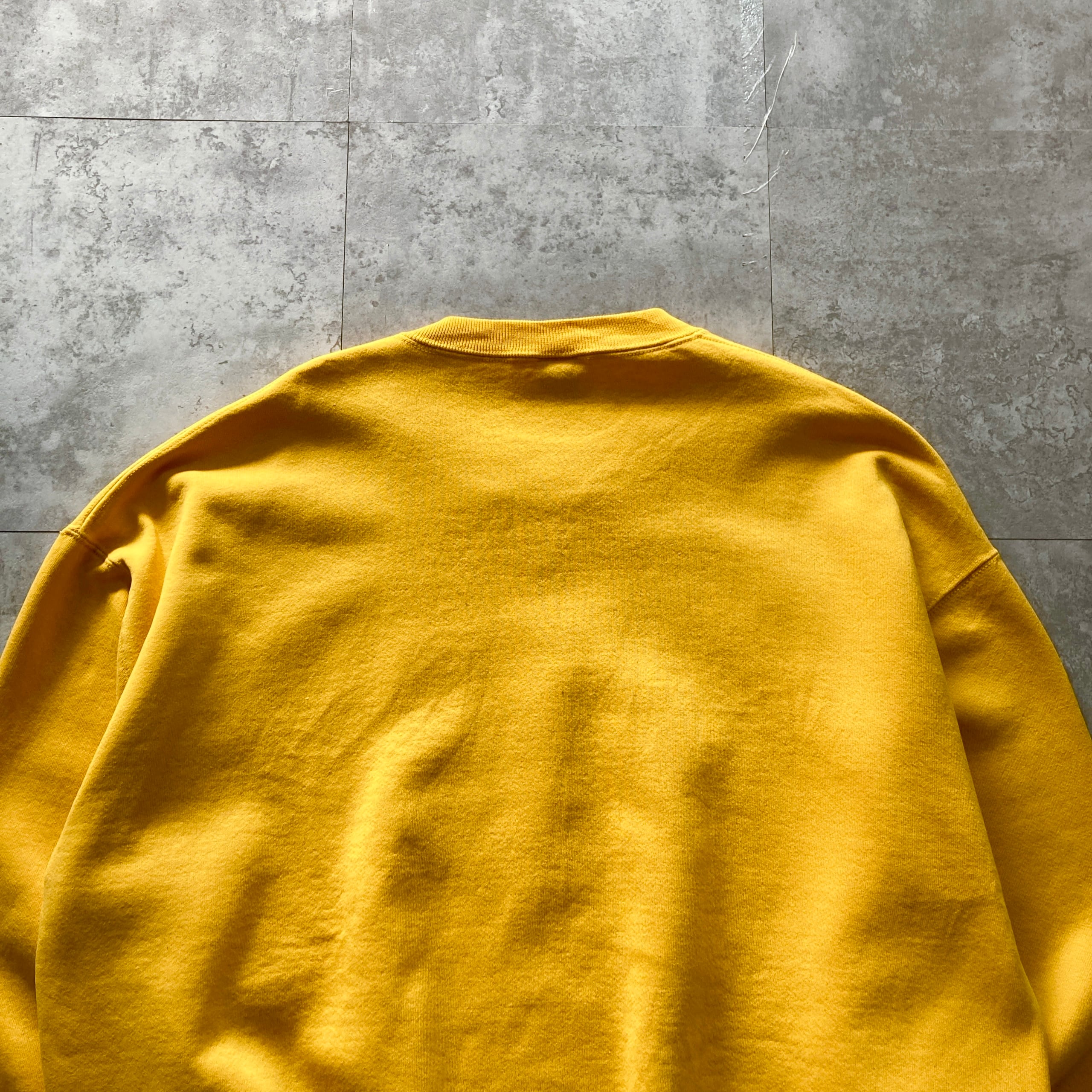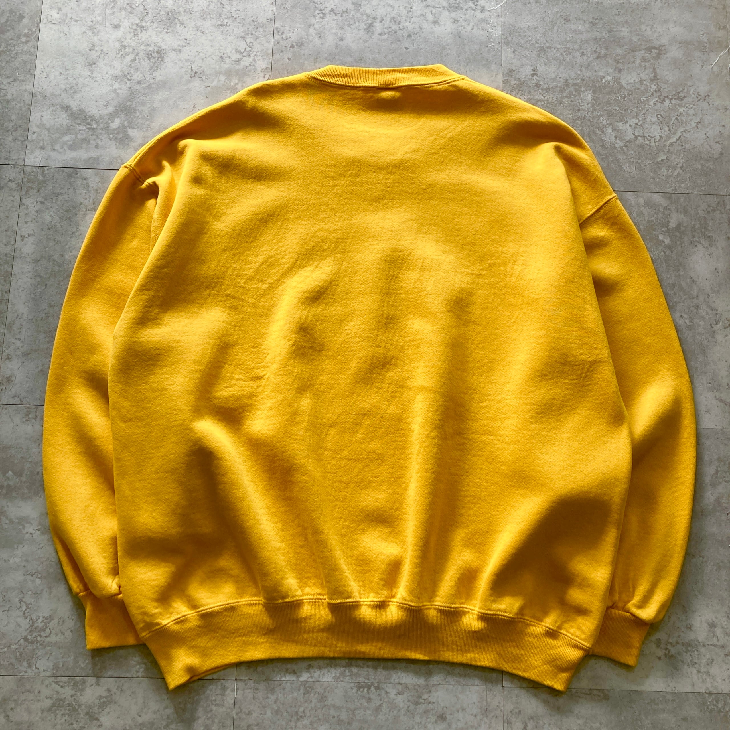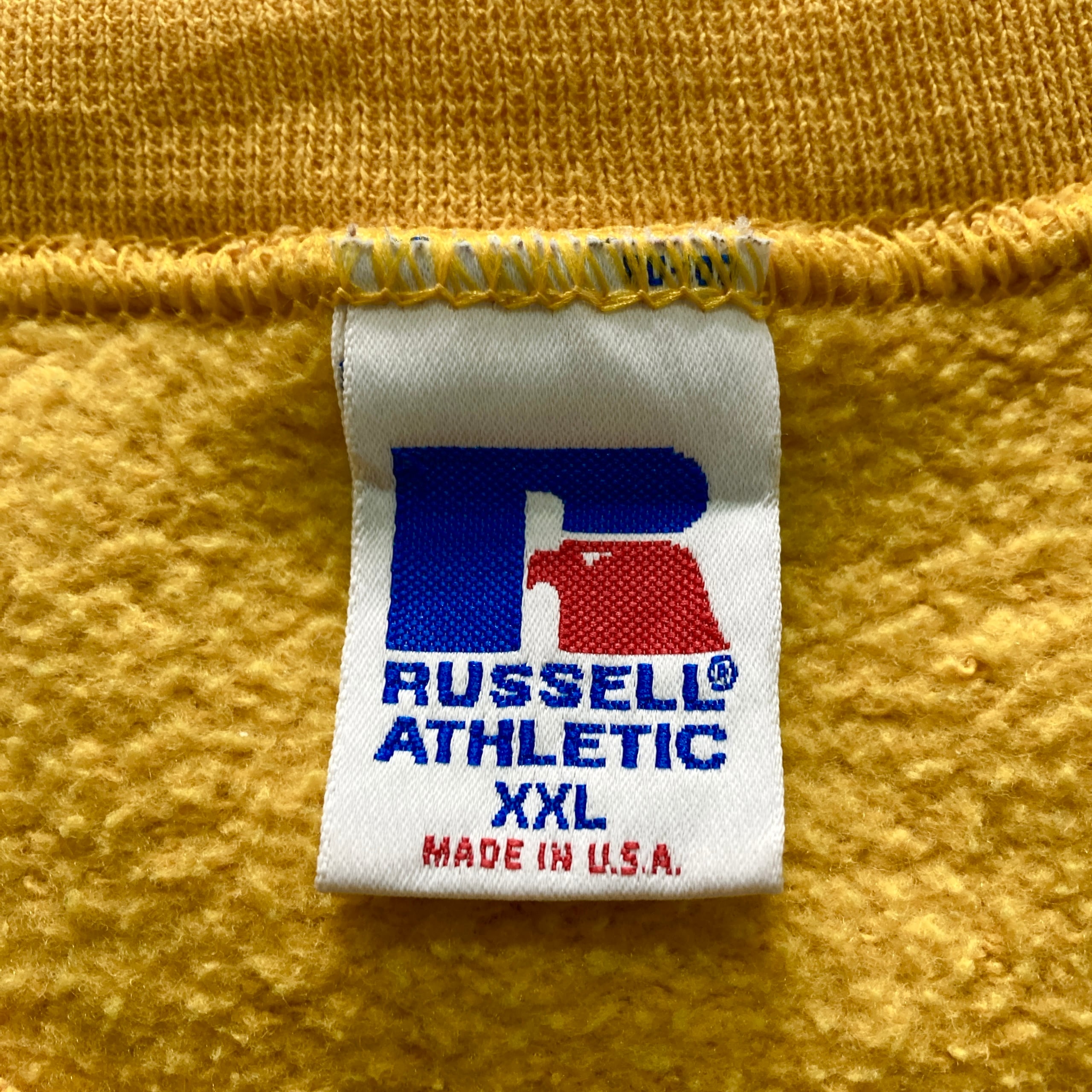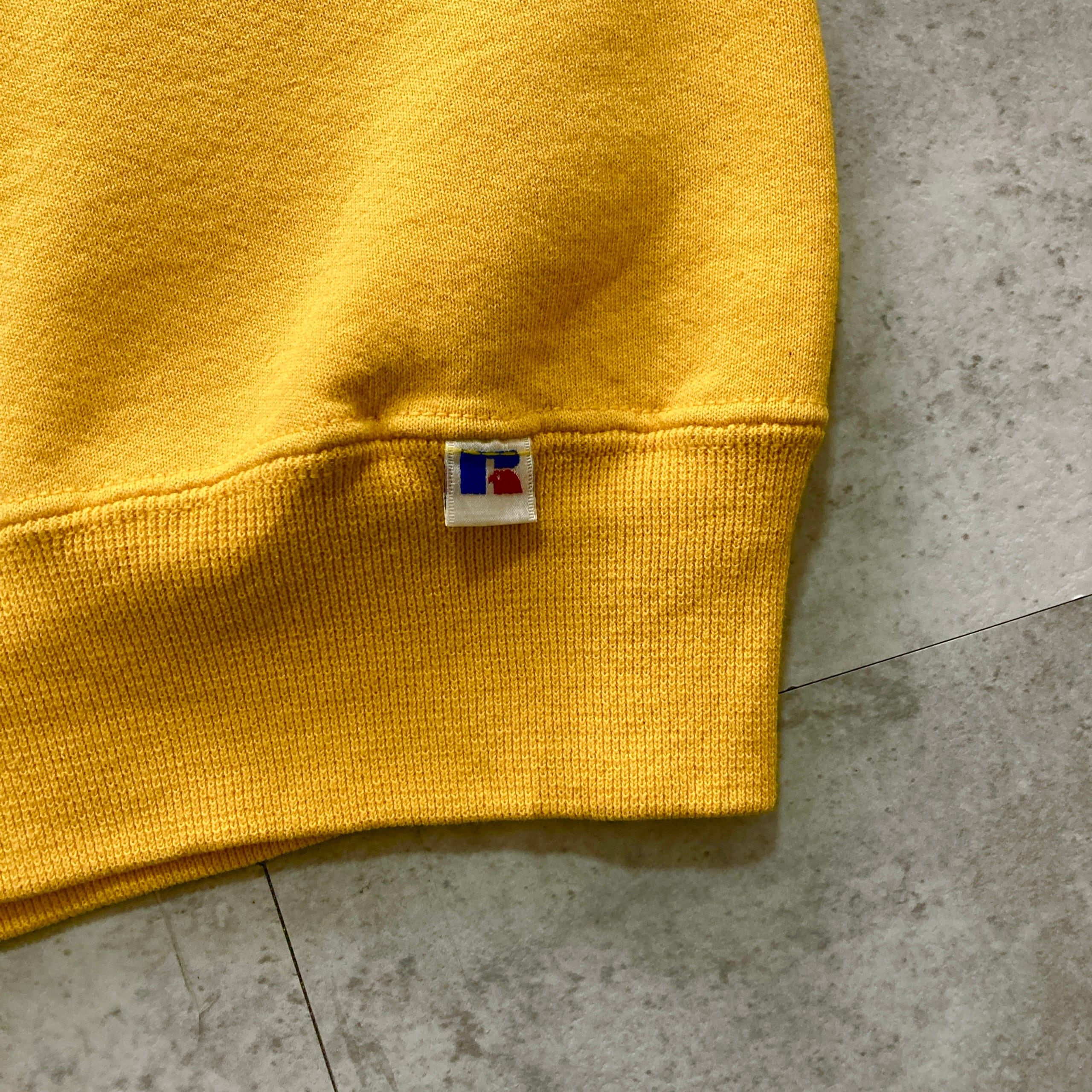【USA製】90s RUSSELL ラッセル 表記XXL アメリカ製 前V イエロー 無地 スウェット