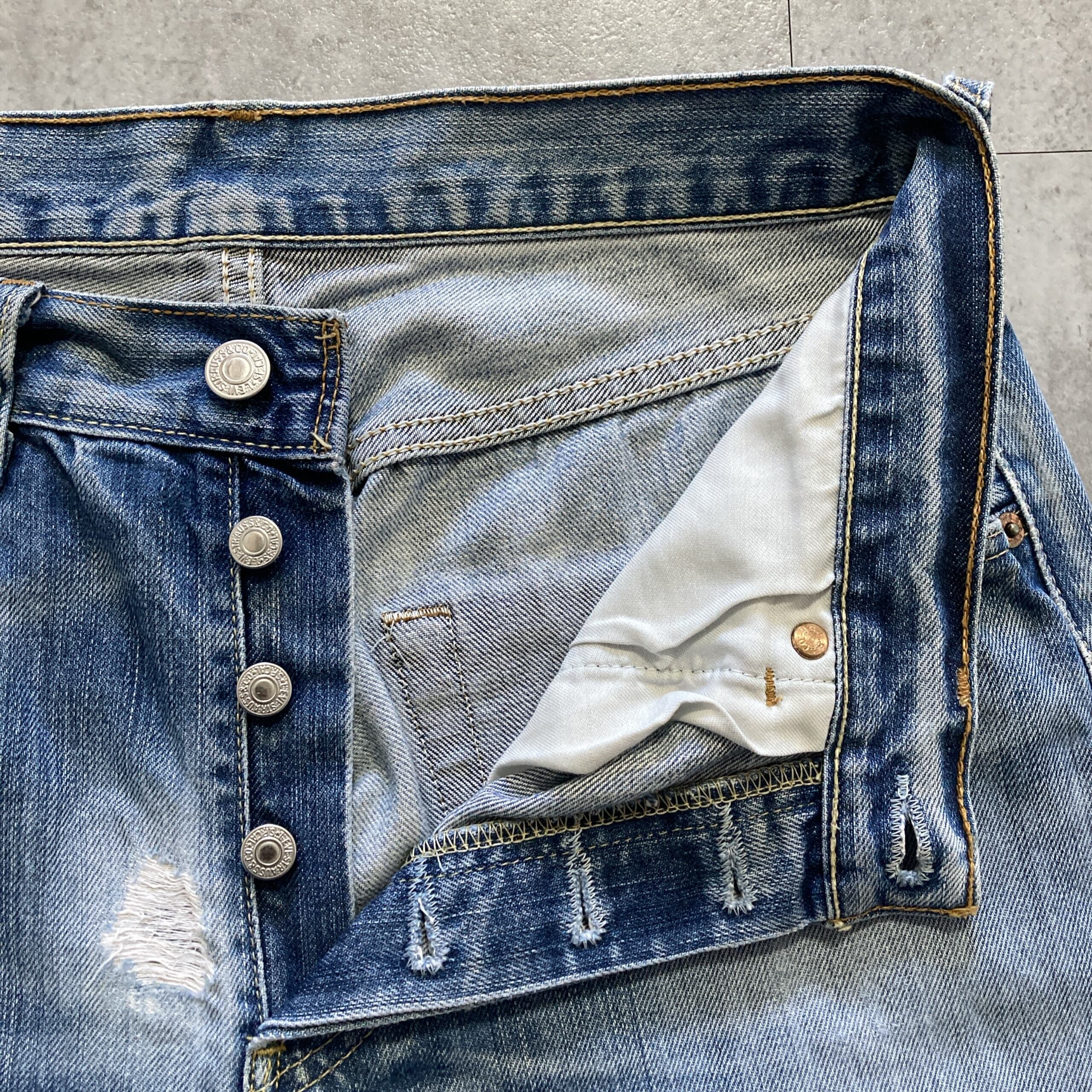 【W31 L32】00‘s Euro Levis 501 ユーロリーバイス ボタンフライ トルコ製 裏ボタン刻印(093) 縦落ち ヒゲ ハチノス ダメージ デニムパンツ ジーンズ