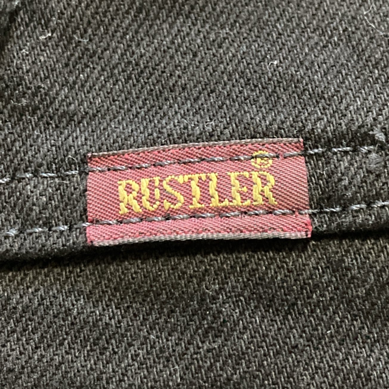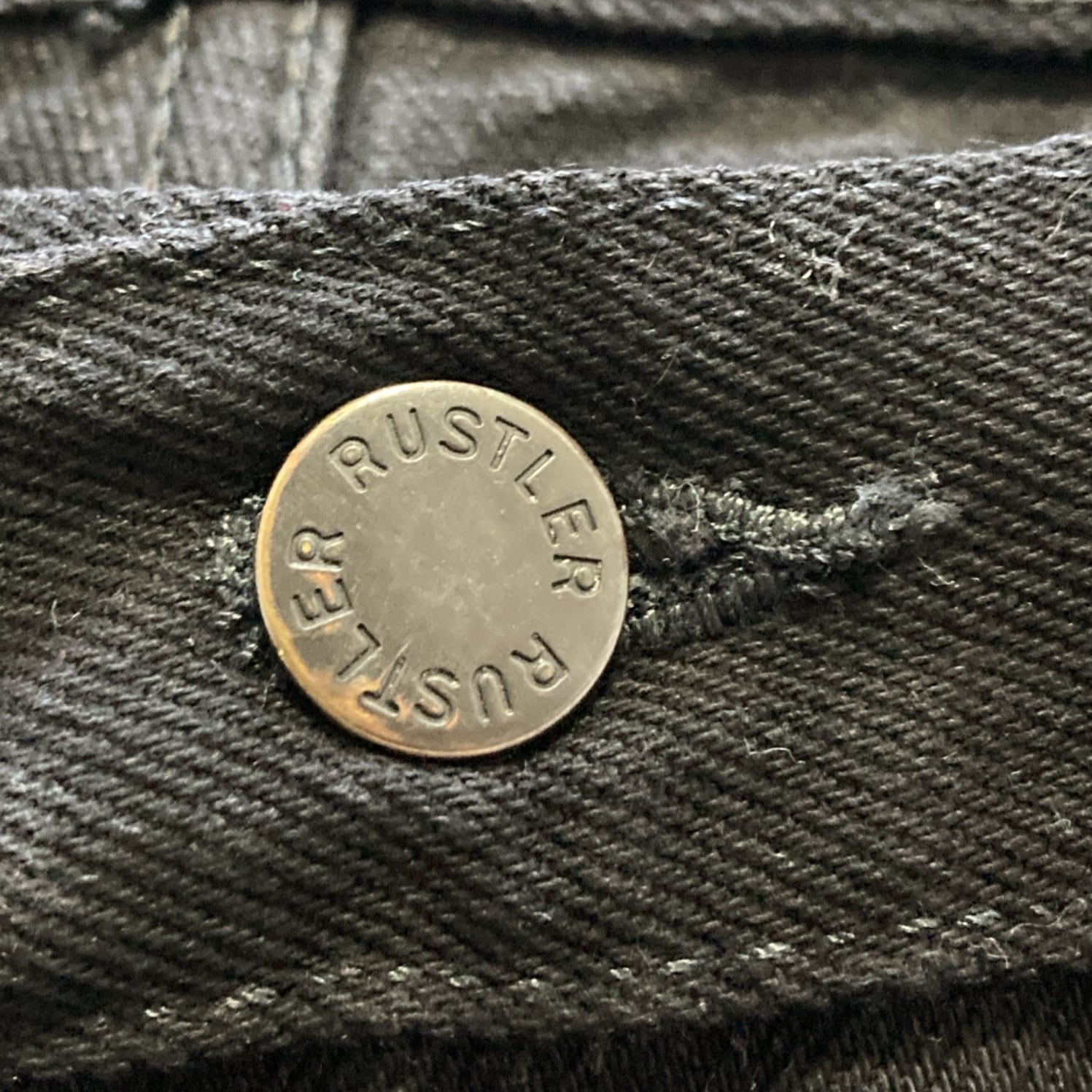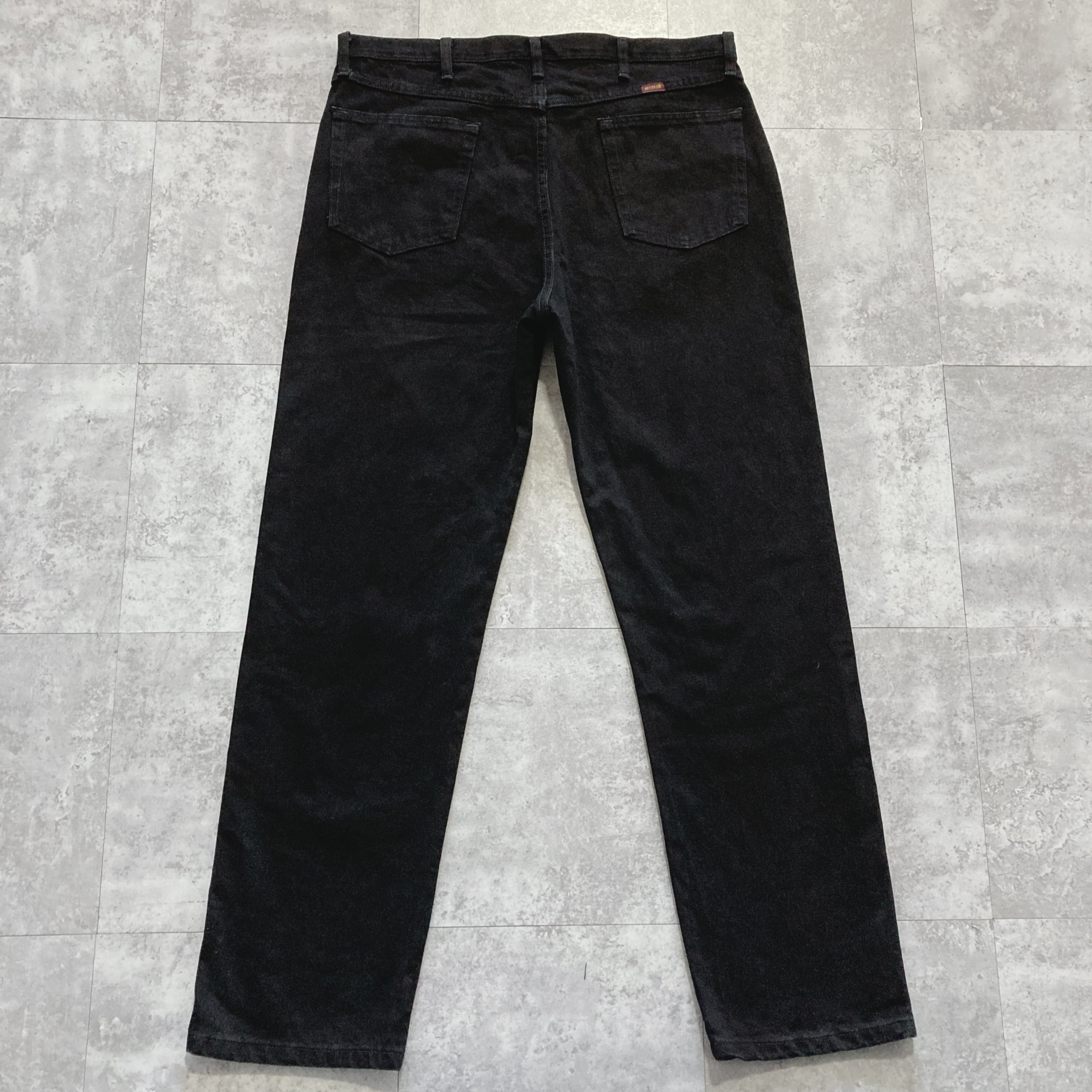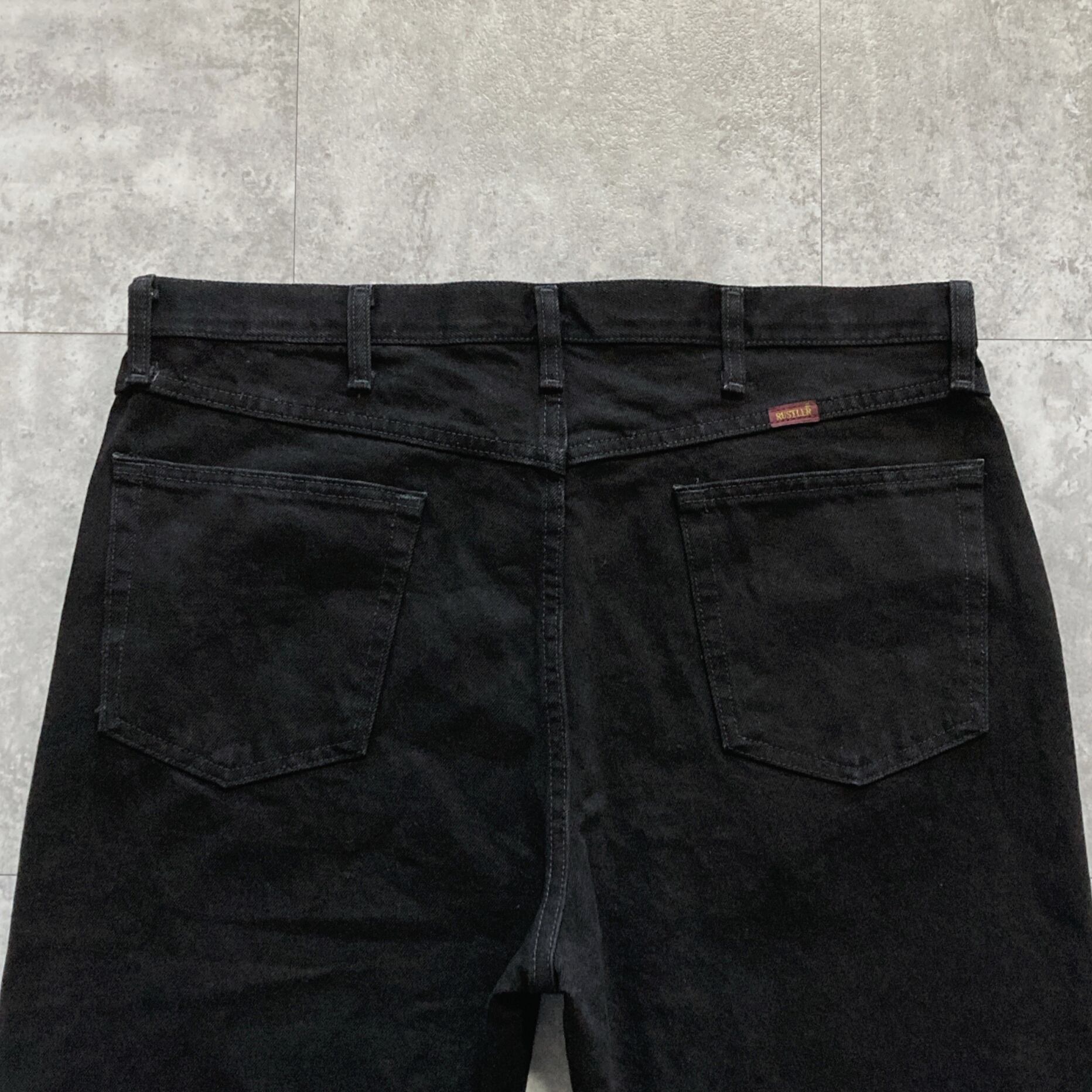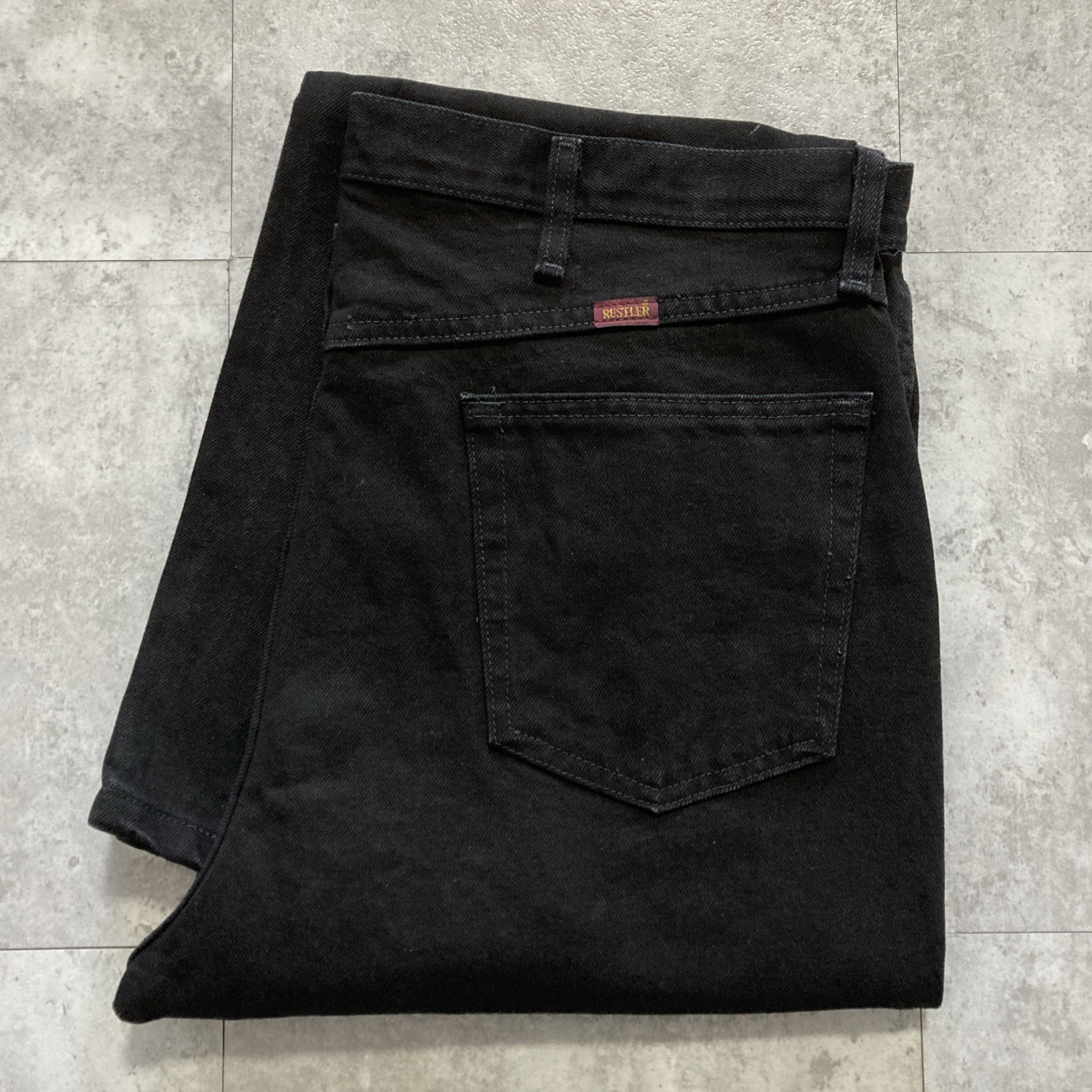 【38×32】RUSTLER ラスター ジッパーフライ ワンポイント ロゴ刺繍 ビッグサイズ ブラック デニムパンツ ジーンズ