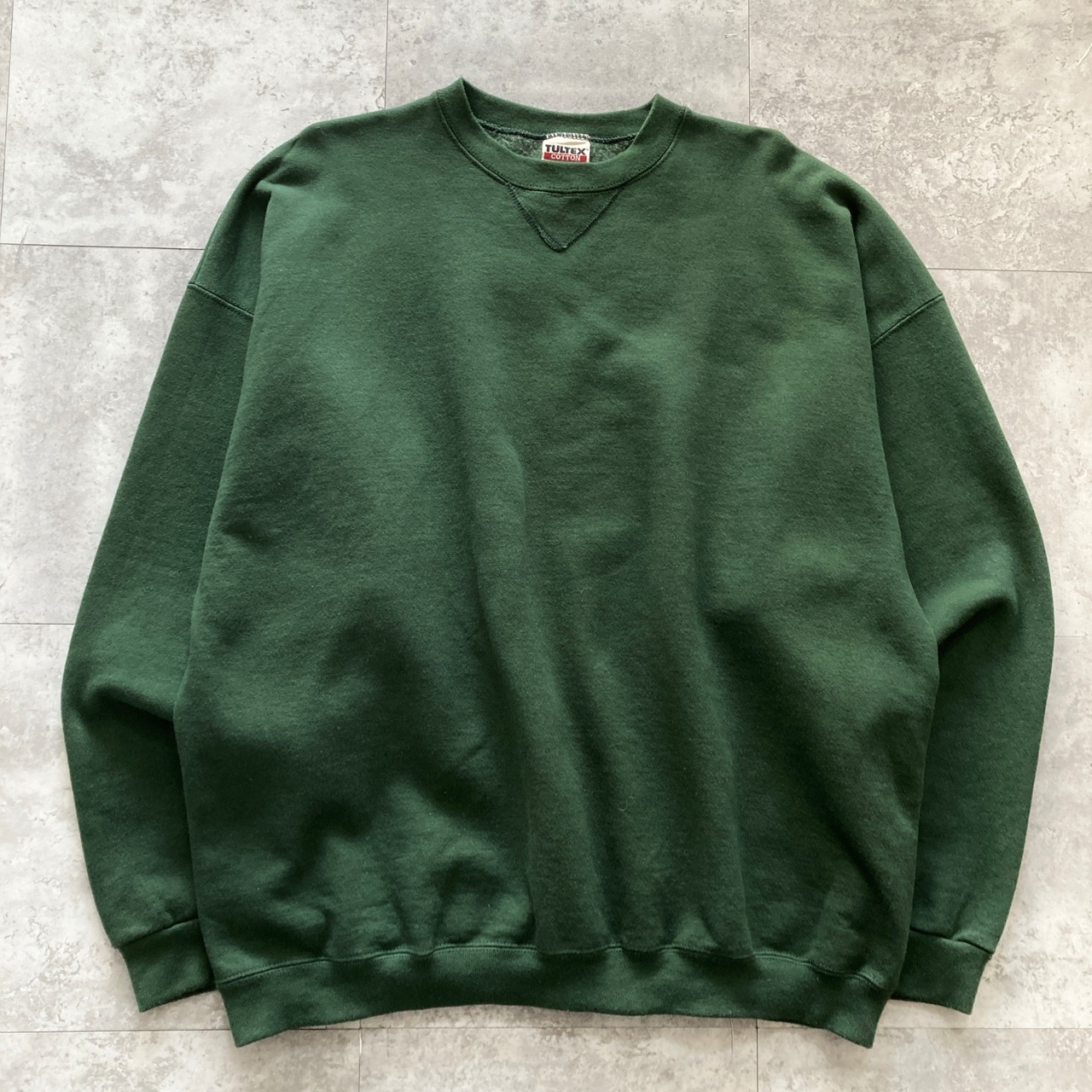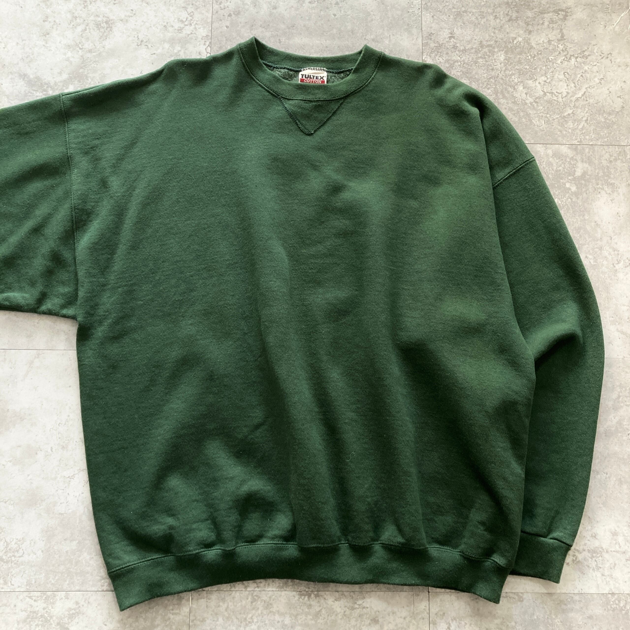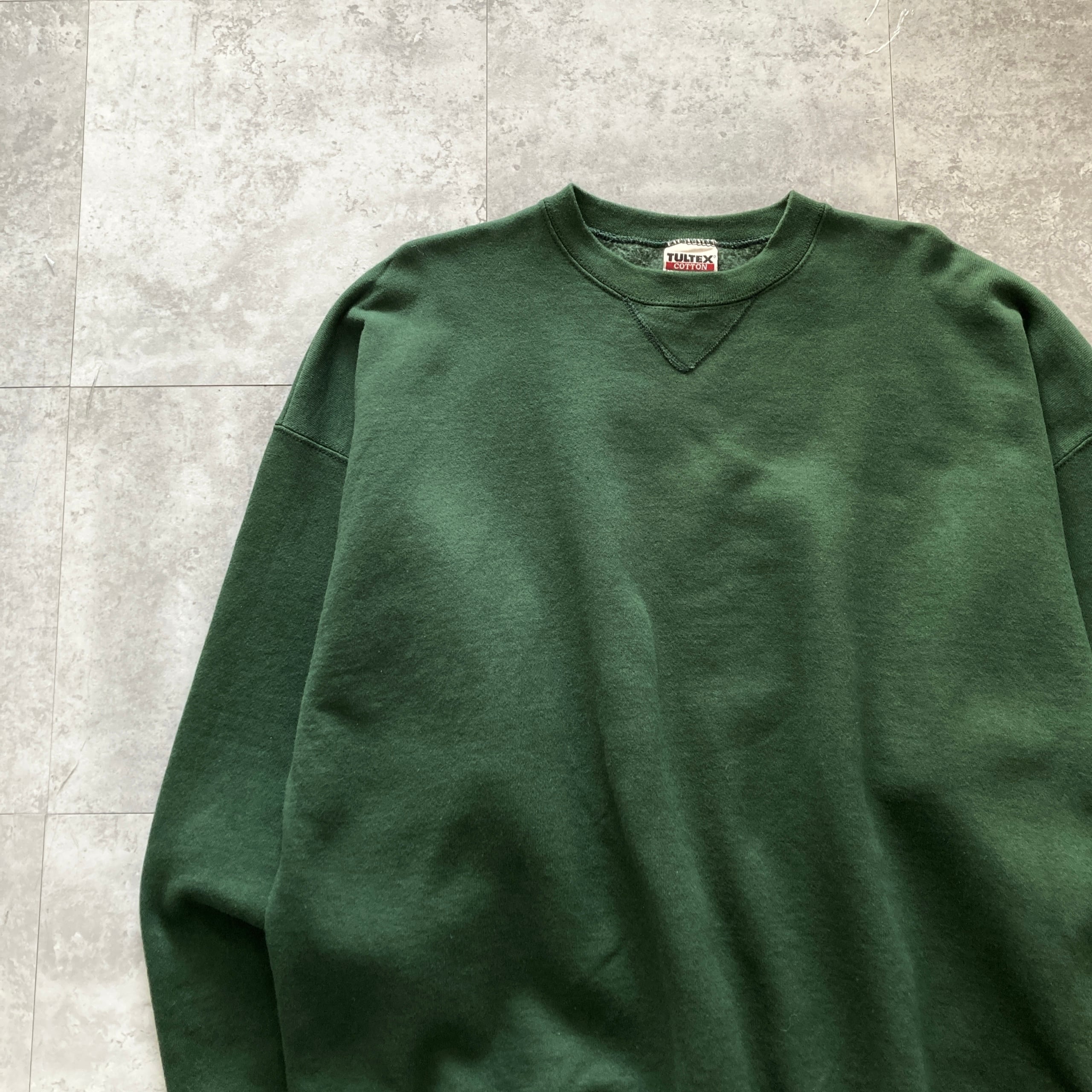 【USA製】90s TULTEX タルテックス 表記XL アメリカ製 グリーン 前V 無地 スウェット