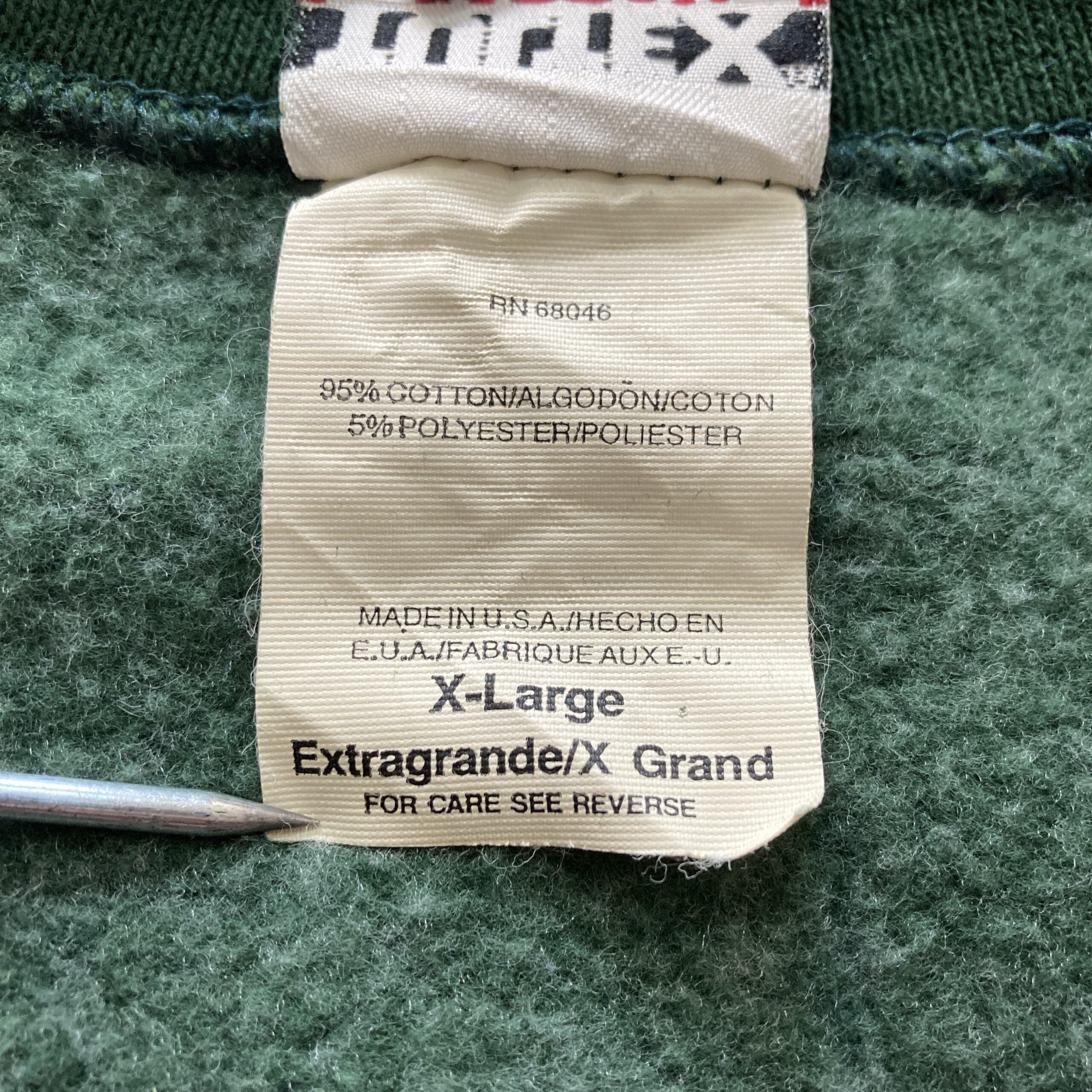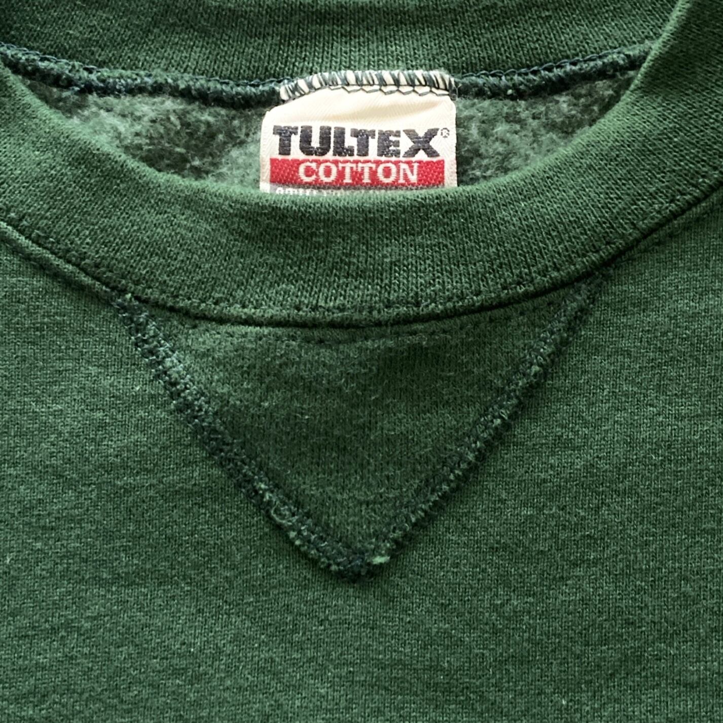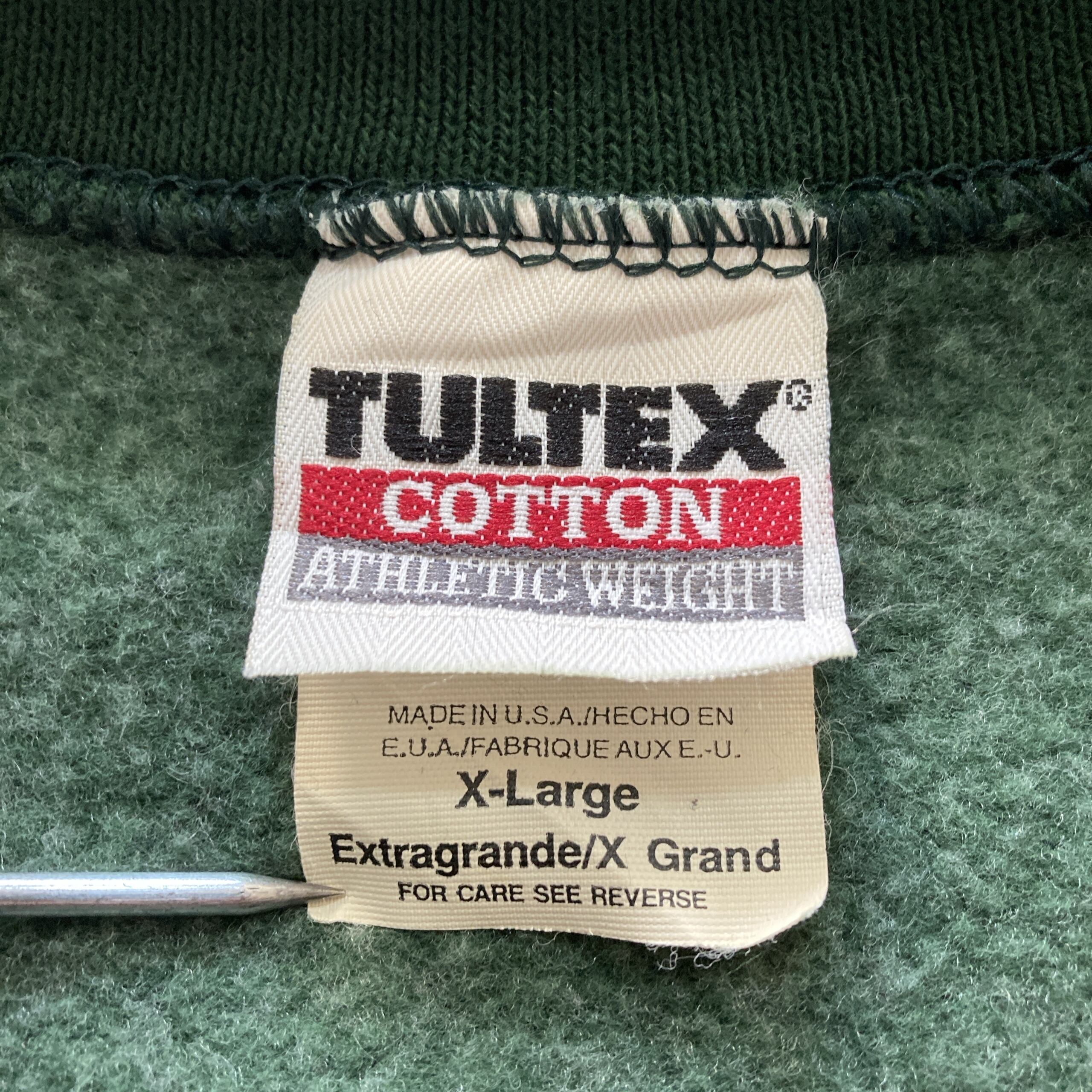 【USA製】90s TULTEX タルテックス 表記XL アメリカ製 グリーン 前V 無地 スウェット