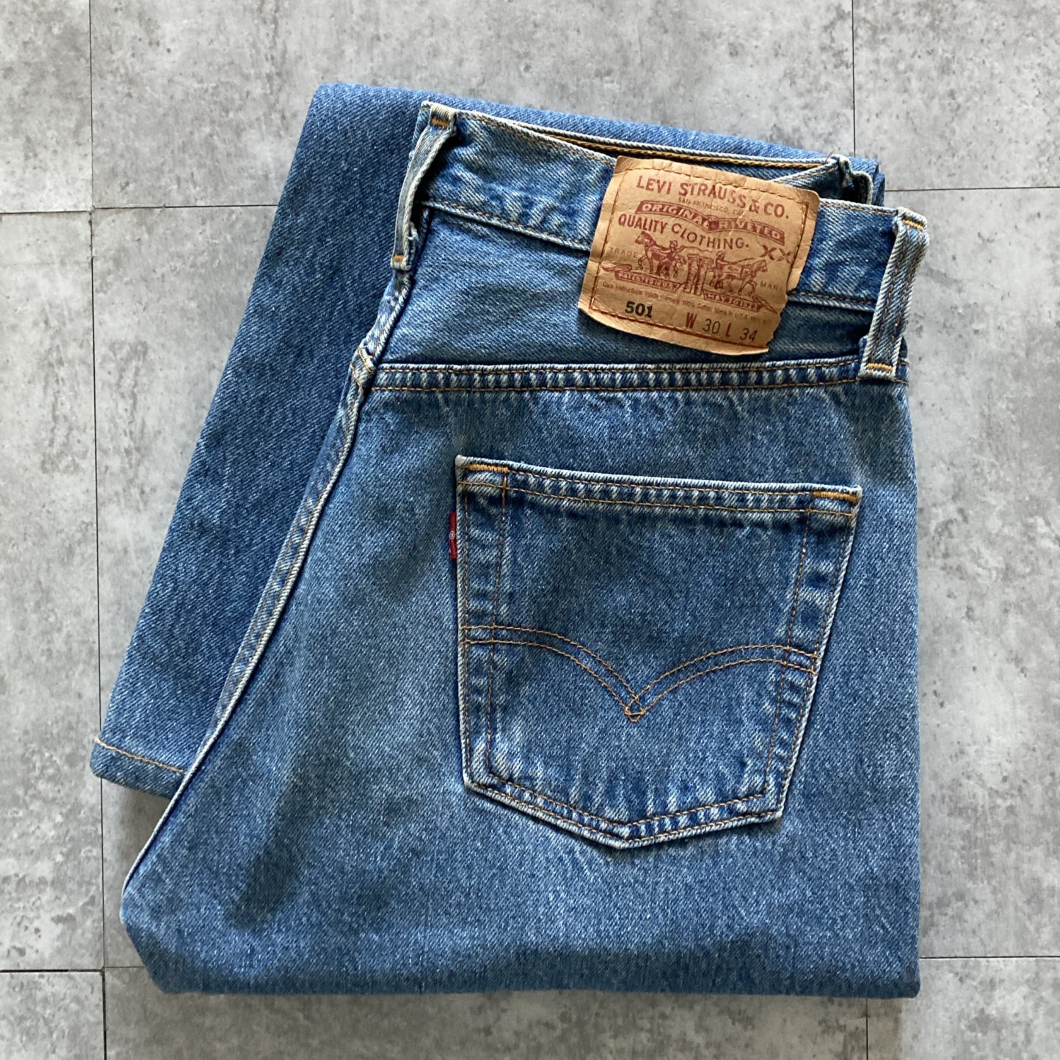 【W30 L34】90's US.Levis 501 リーバイス エルパソ工場(522) ボタン裏刻印522 USA製 アメリカ製 95年製 ボタンフライ 縦落ち デニムパンツ ジーンズ | Only_Denim+