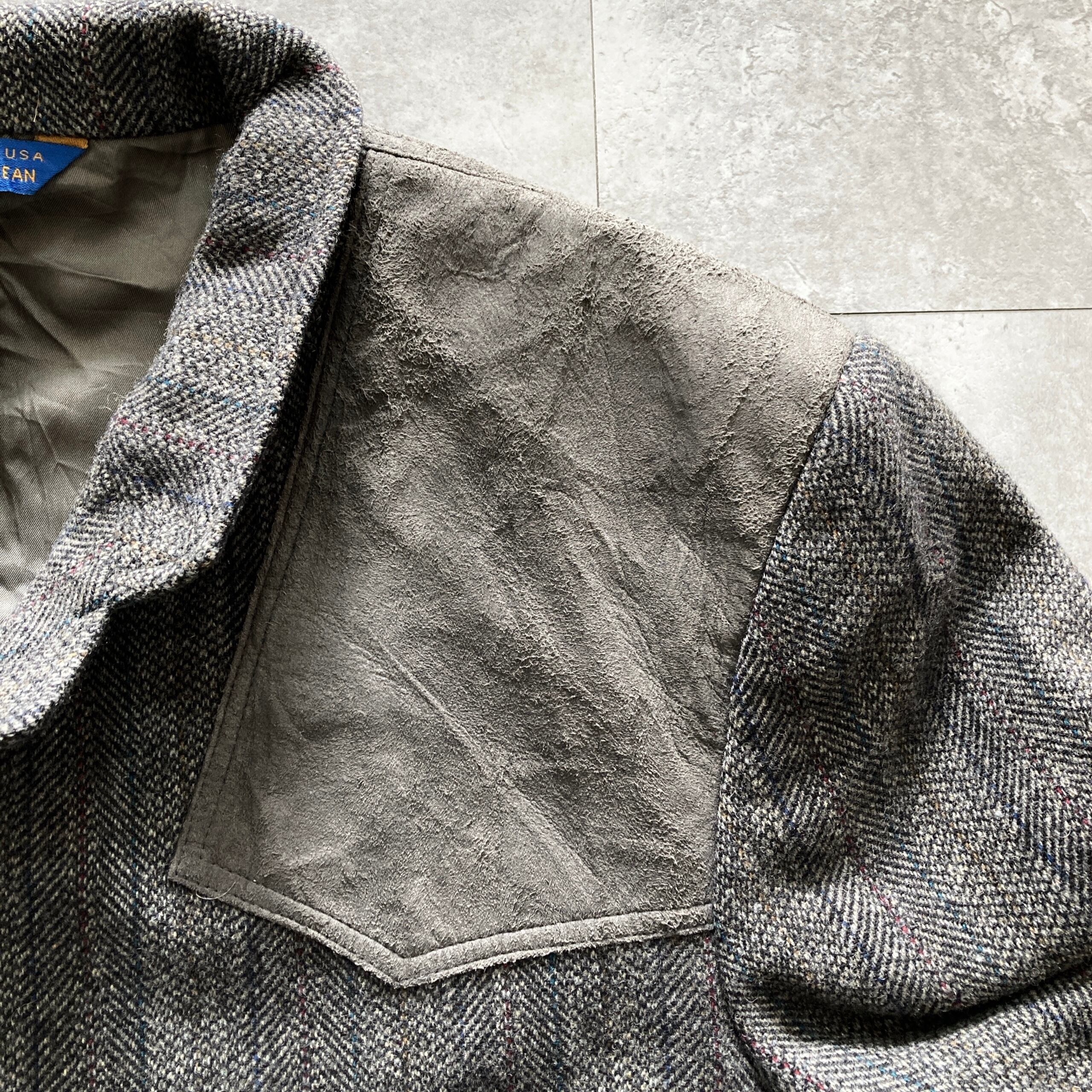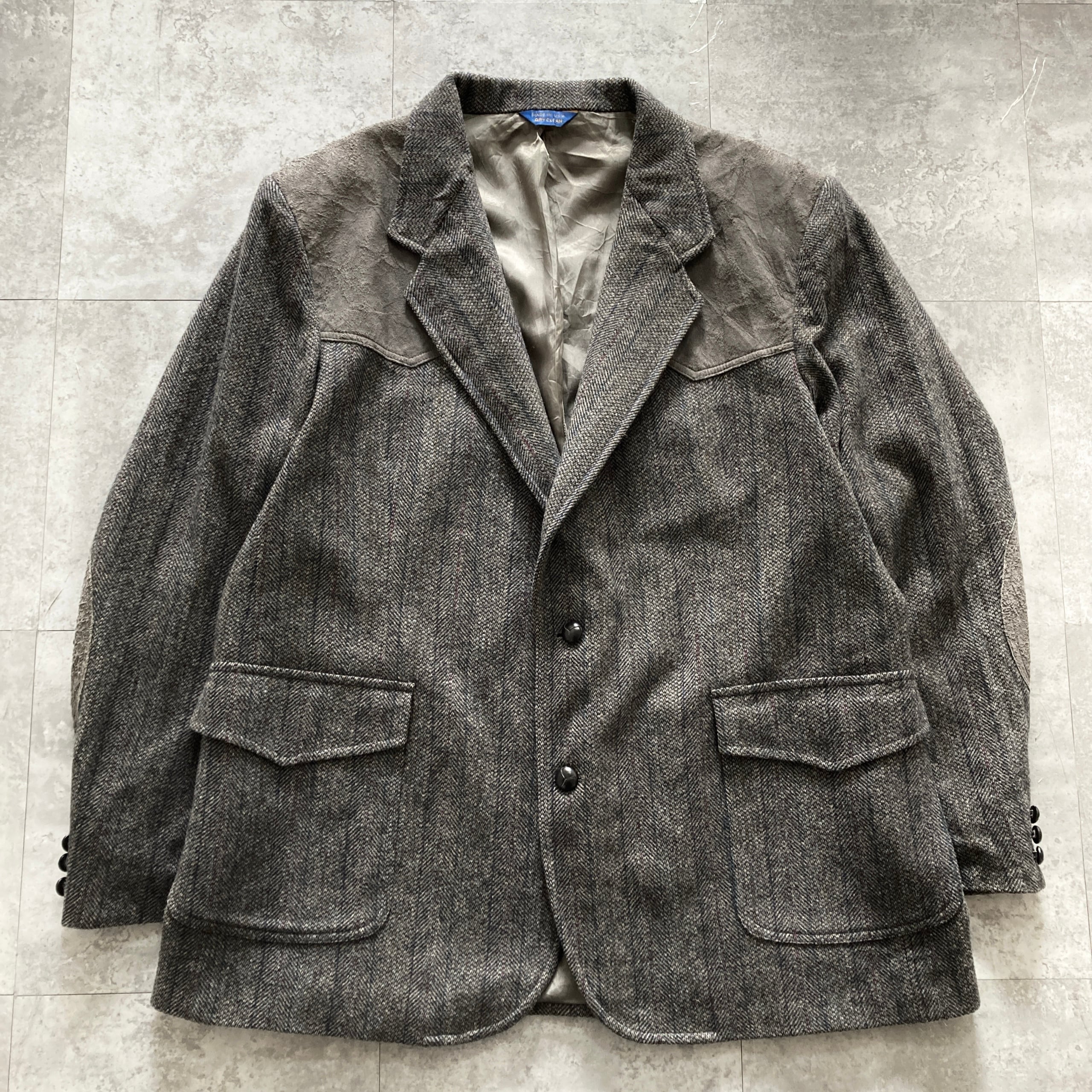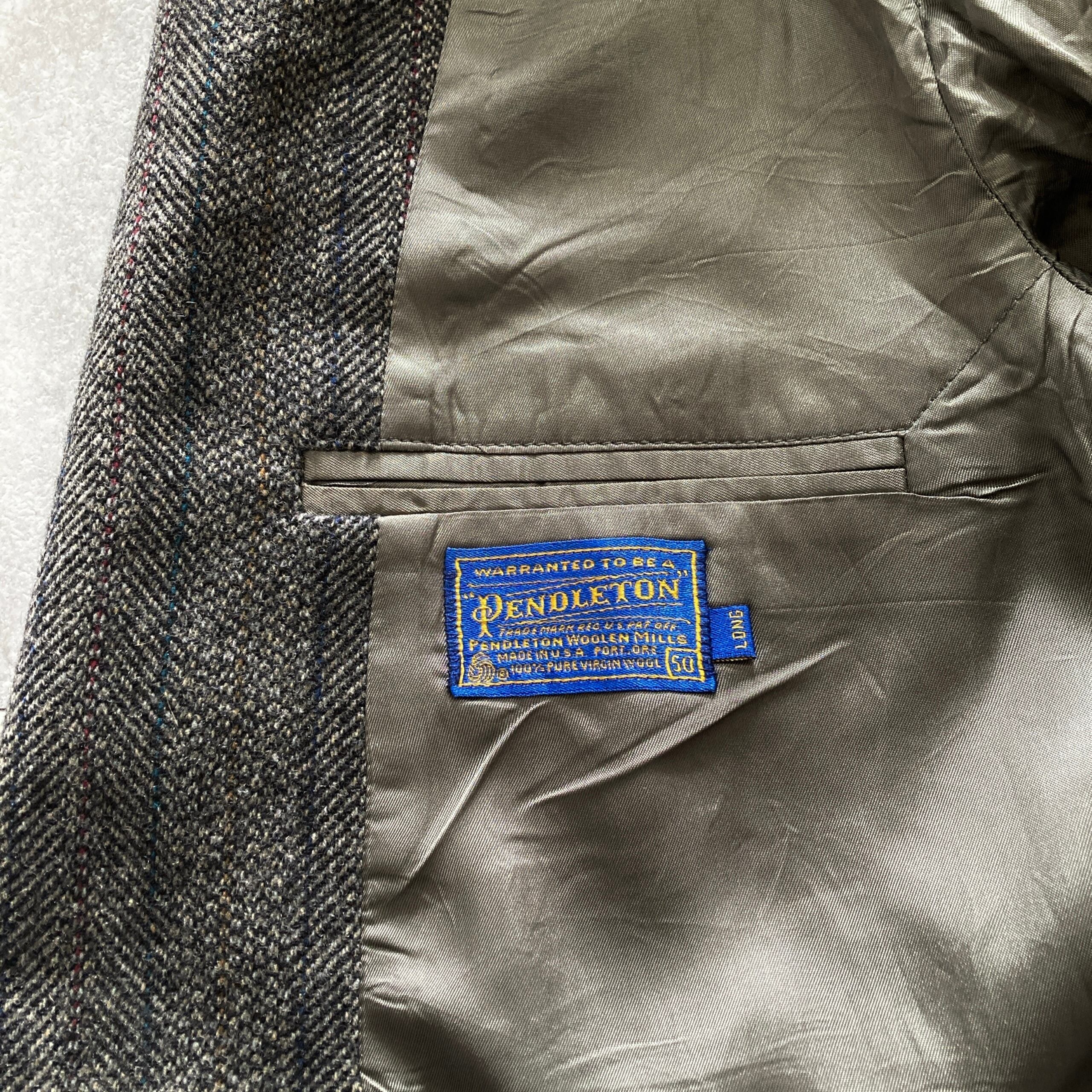 【USA製】80s PENDLETON ペンドルトン 表記50 アメリカ製 エルボーパッチ ショルダーパッチ シャドーストライプ ウール テーラードジャケット