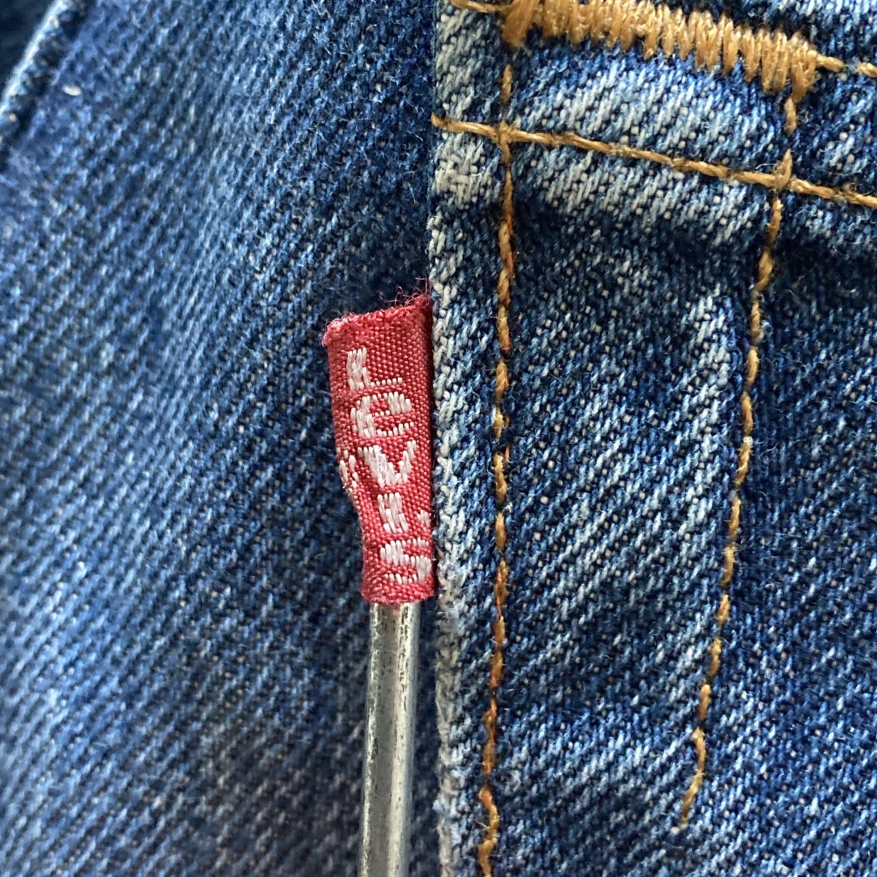 ・後ポケットにステッチ切れあり