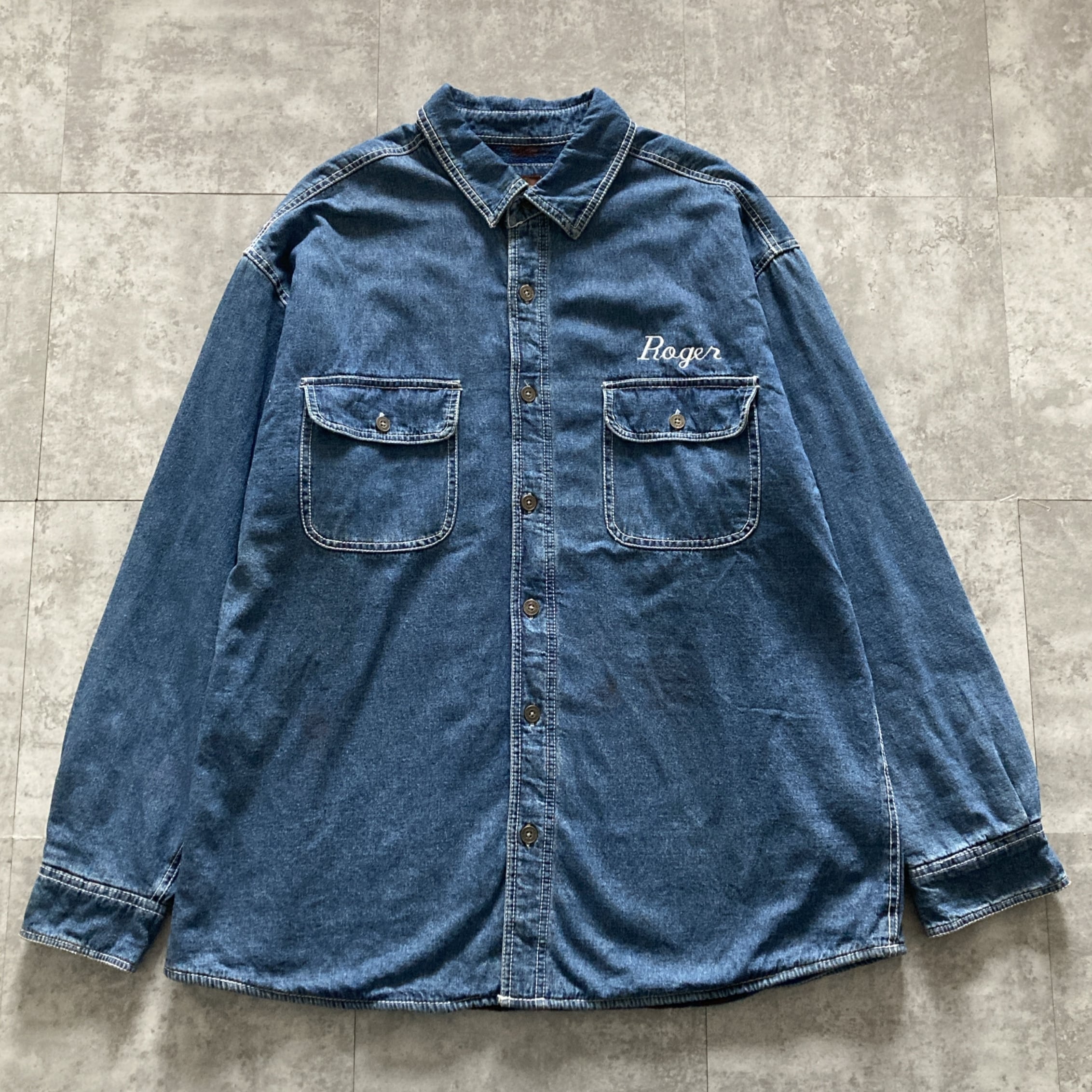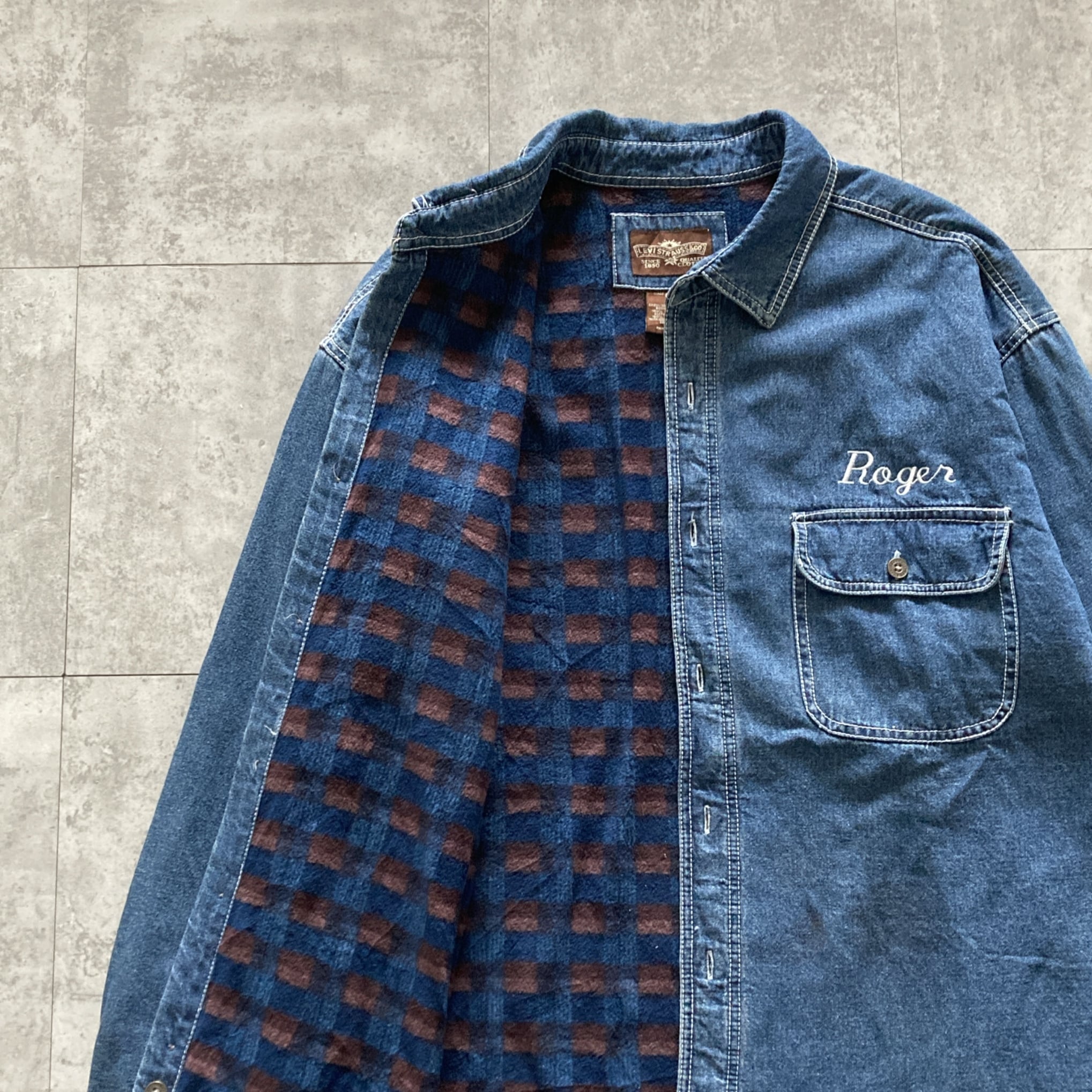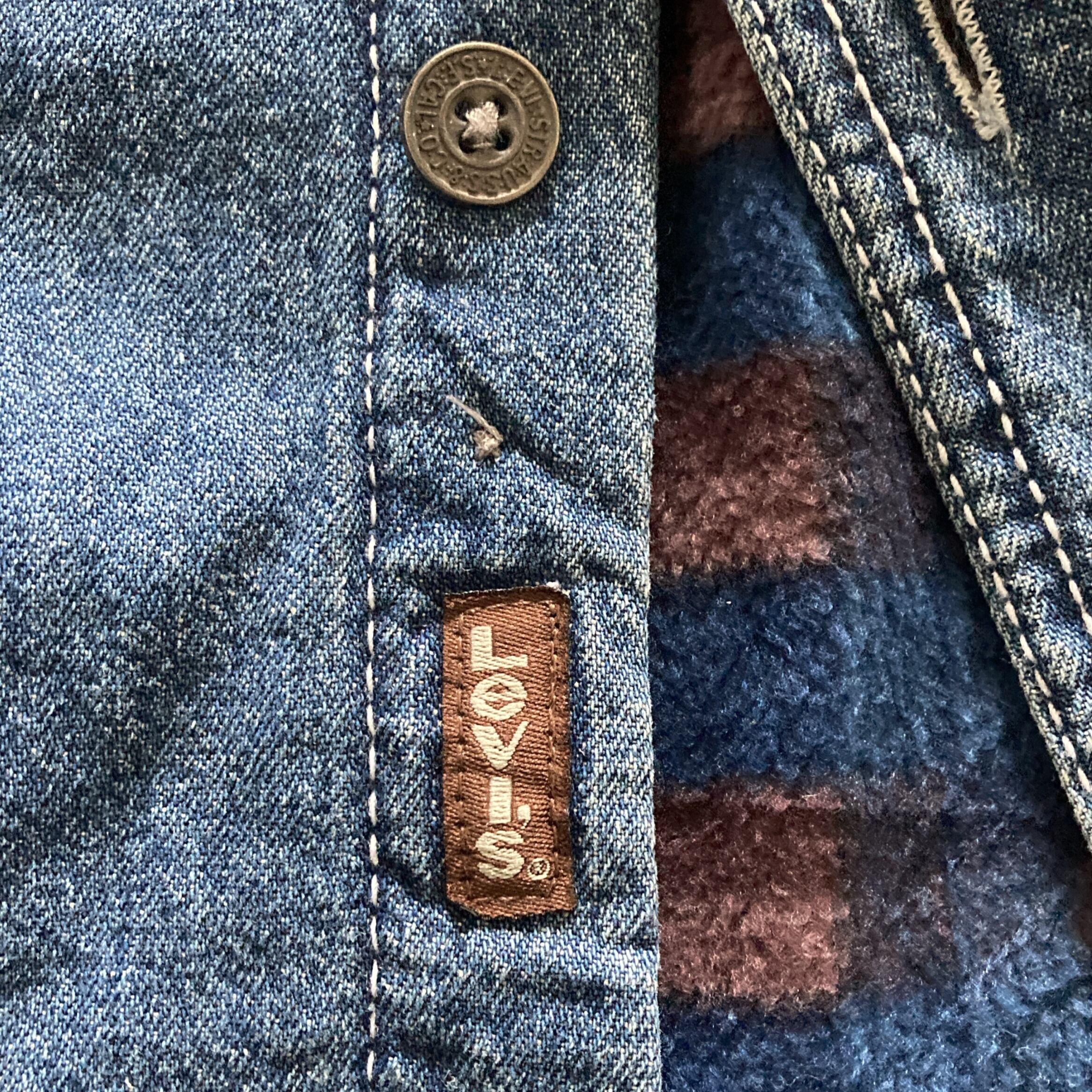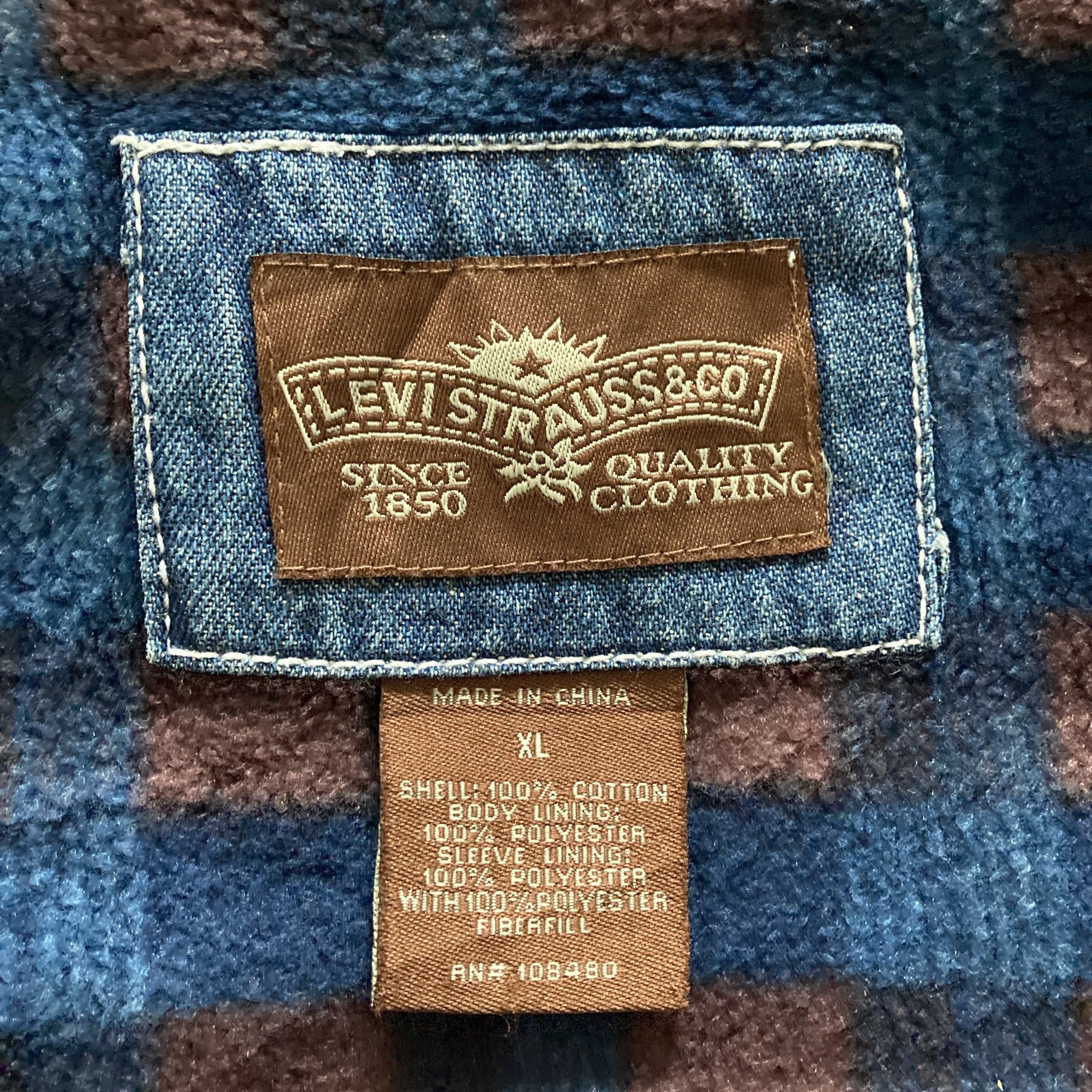 【Size.XL】Levis リーバイス メタルボタン 胸元刺繍 裏地チェック ビッグサイズ アウターシャツ デニムシャツ