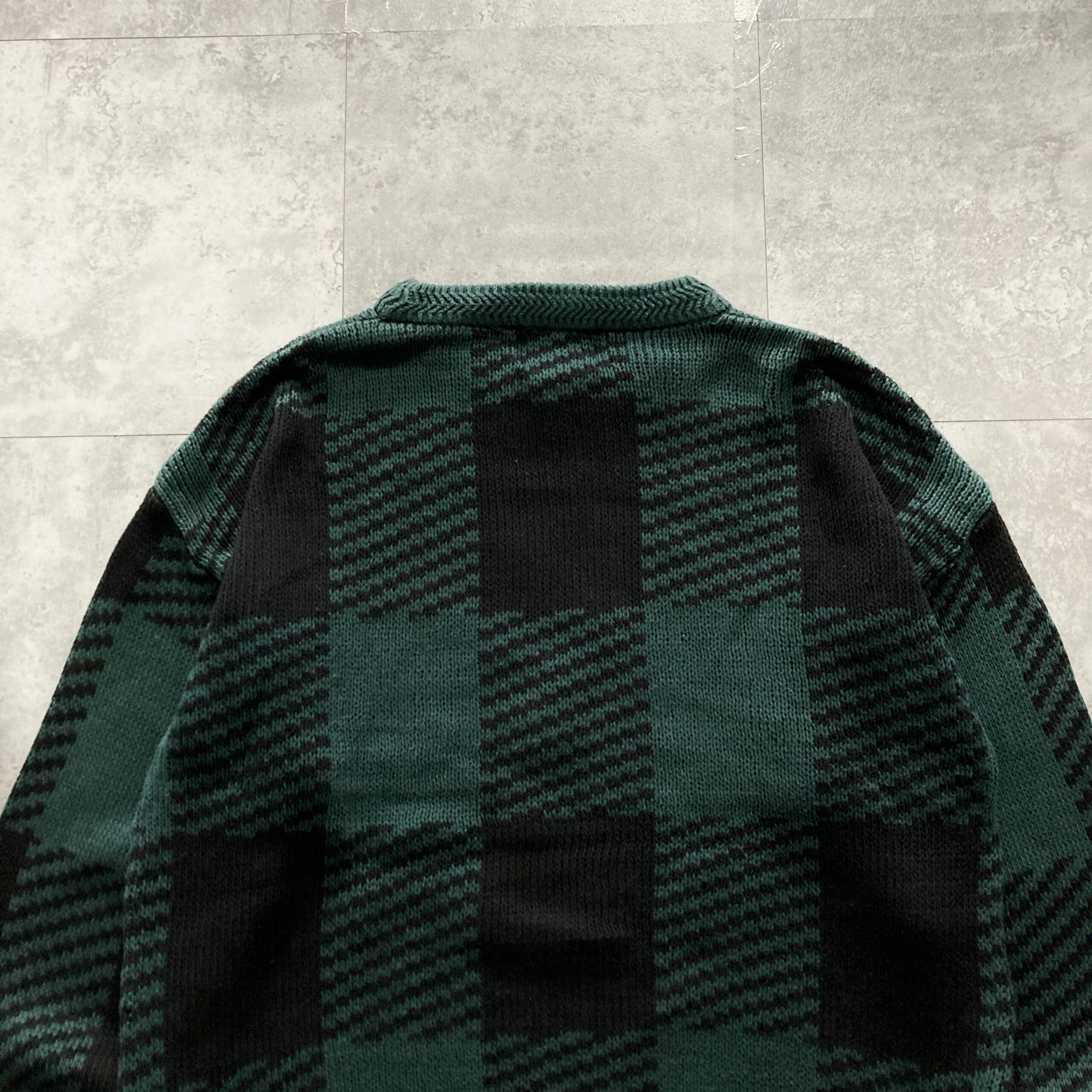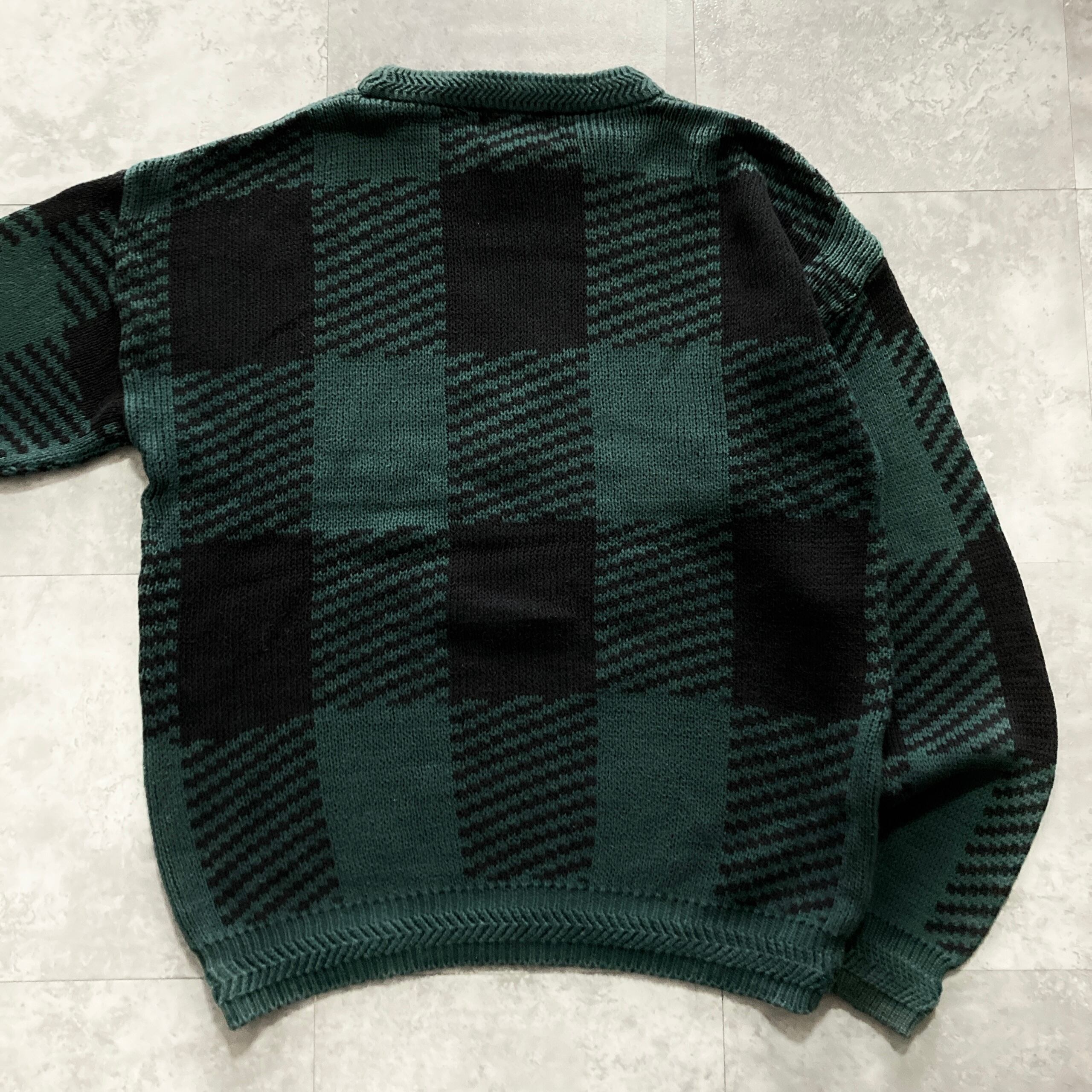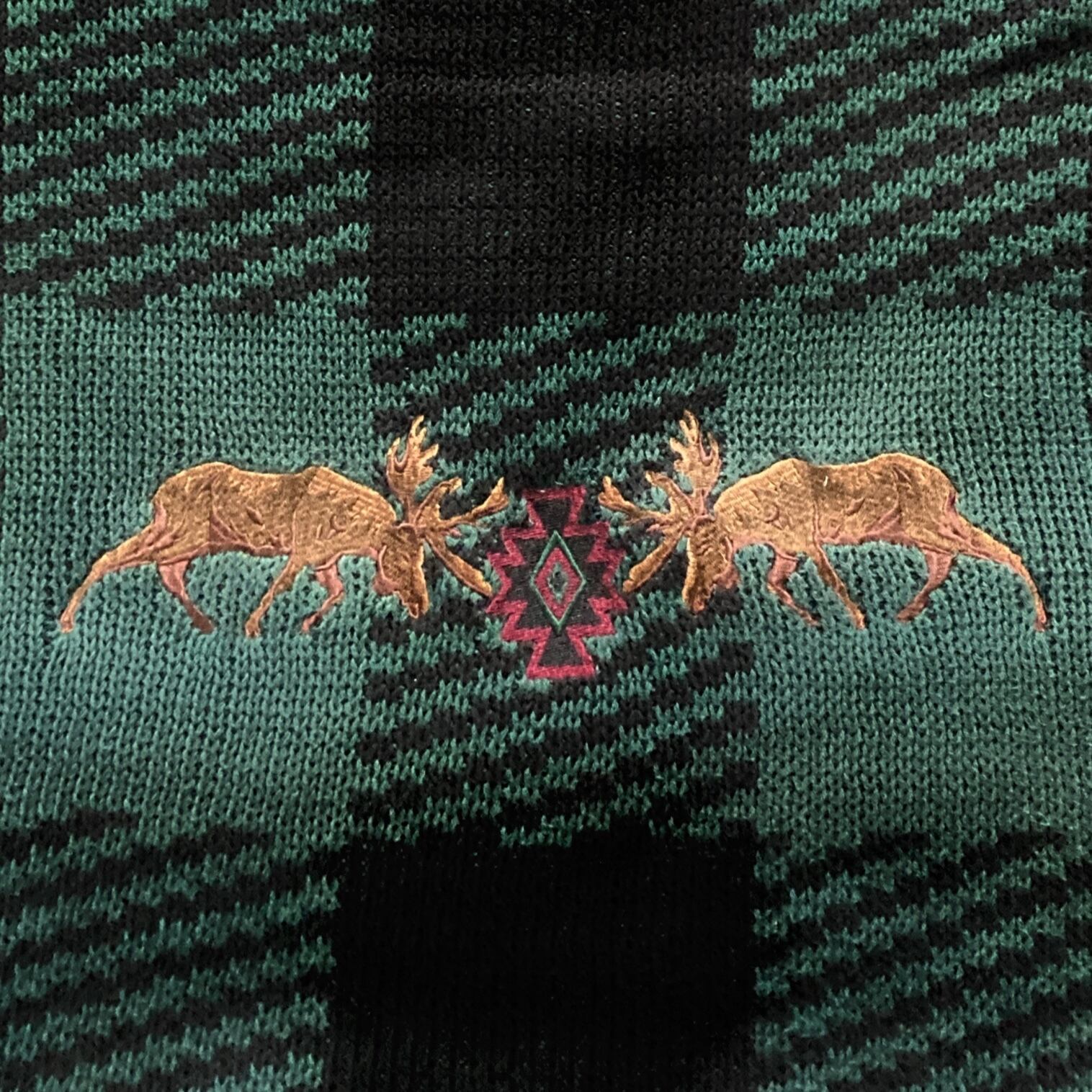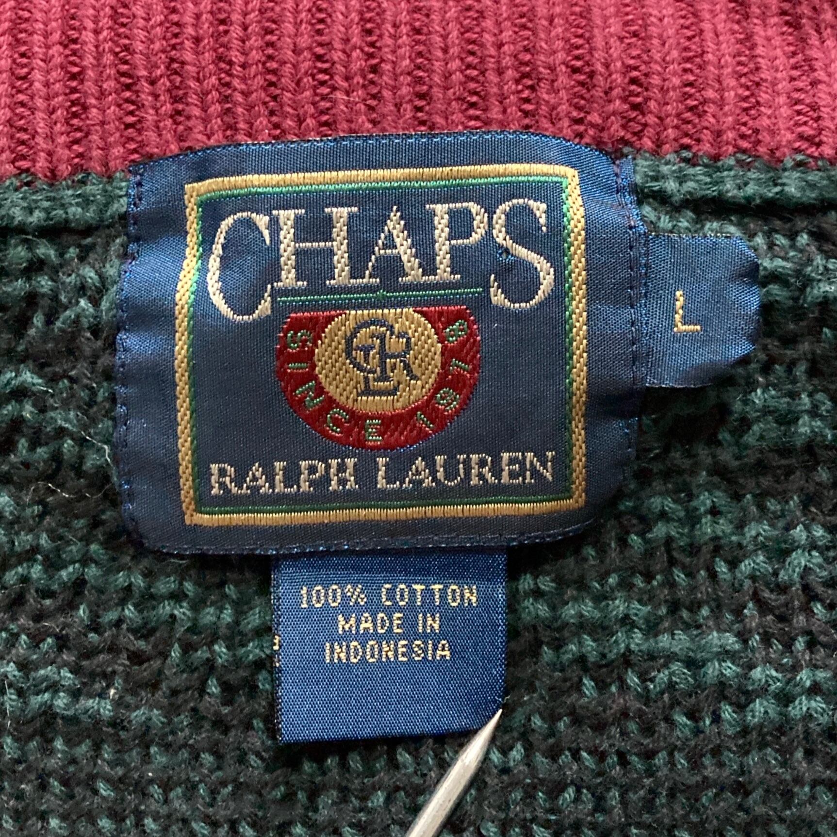 【80s】CHAPS RALPH LAUREN チャップスラルフローレン 表記L センター刺繍 トナカイ ノルディック柄 チェック柄 肉厚 コットン ニット/セーター