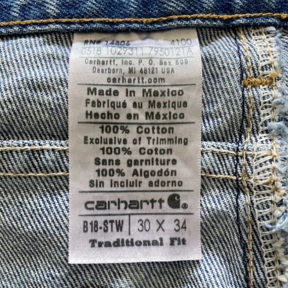 【W30 L34】carhartt カーハート ワンポイントロゴ ジッパーフライ デニムパンツ ジーンズ