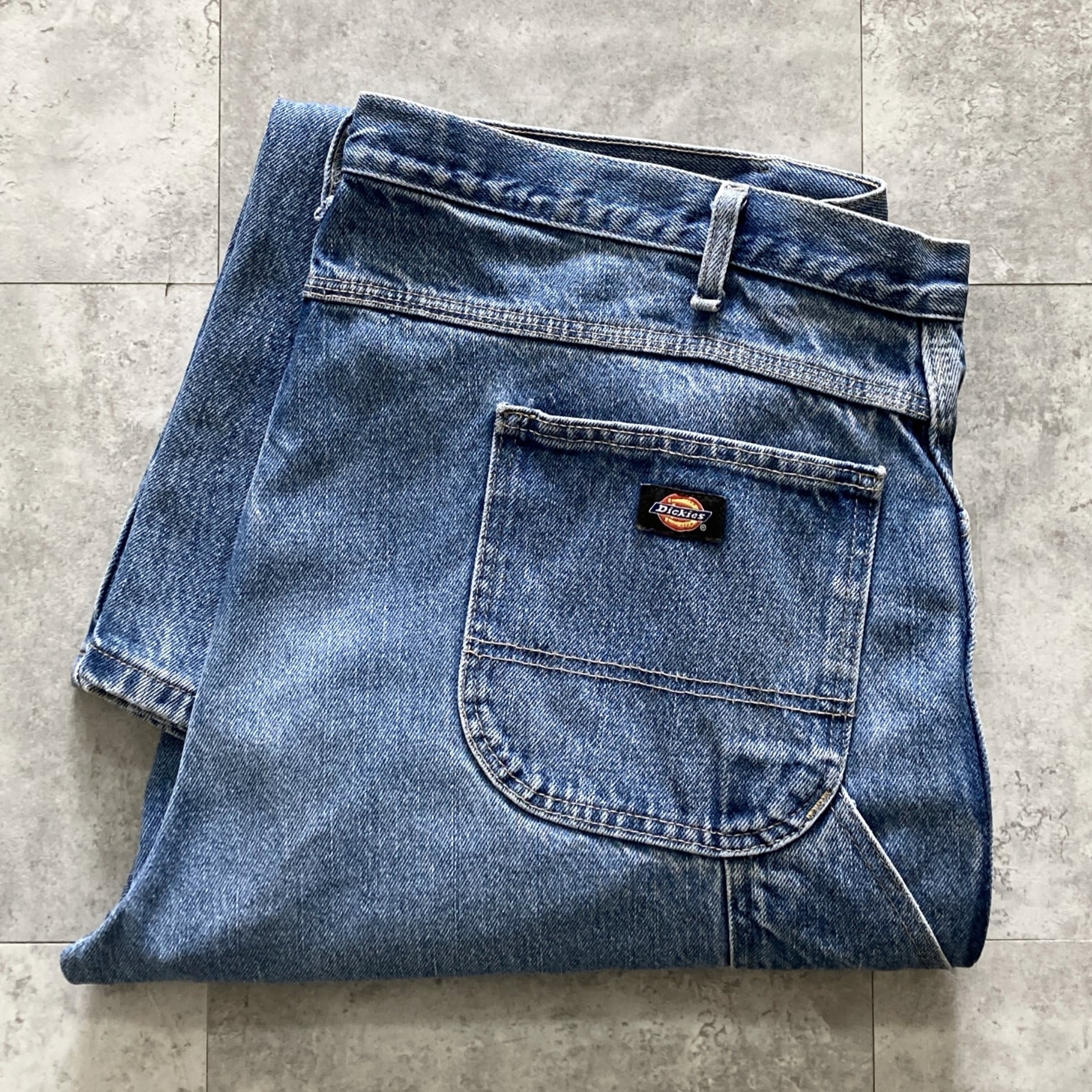 【Size.44×30】Dickies ディッキーズ ジッパーフライ ワンポイント ロゴ刺繍 ビッグサイズ 縦落ち ヒゲ ペインターパンツ デニムパンツ