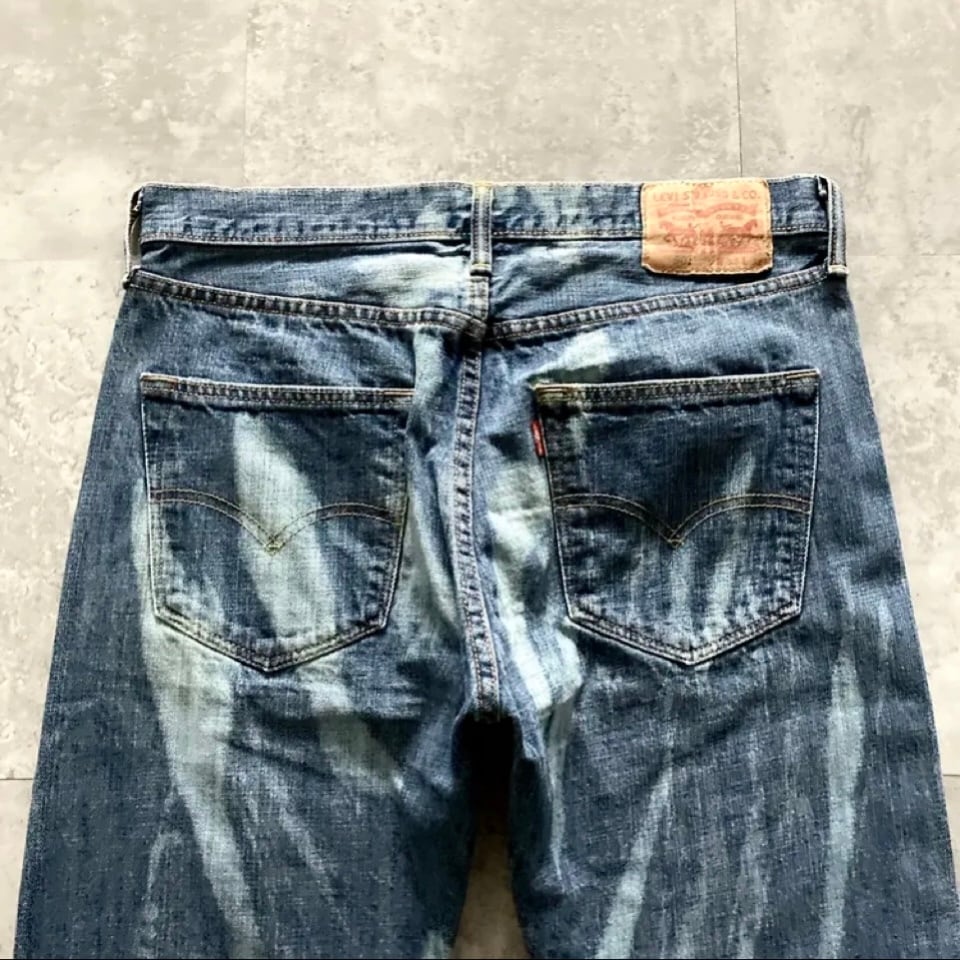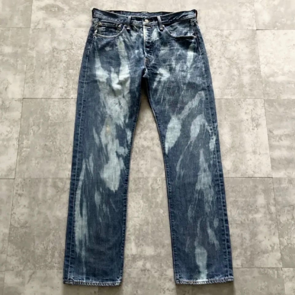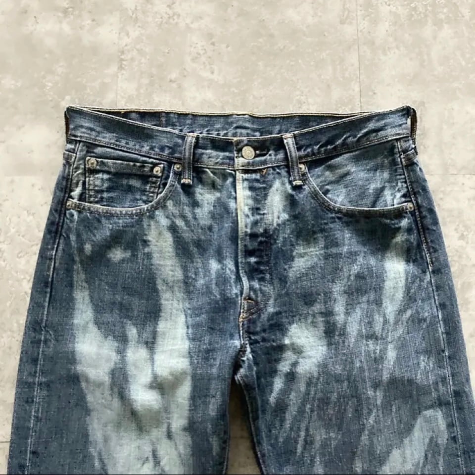・デニム紺 ブリーチ加工