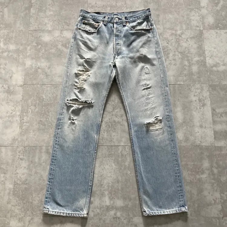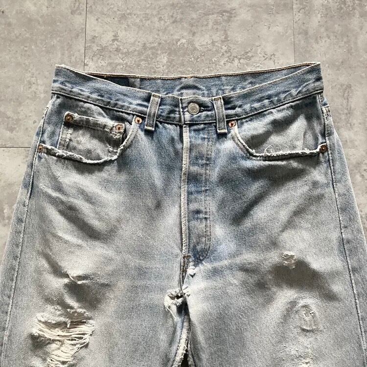 【W32 L32】90s US.Levis 501 リーバイス 91年製 USA製 アメリカ製 マーフィー工場(546) 裏ボタン刻印546 ボタンフライ 縦落ち ヒゲ ダメージ デニムパンツ ジーンズ | Only_Denim+
