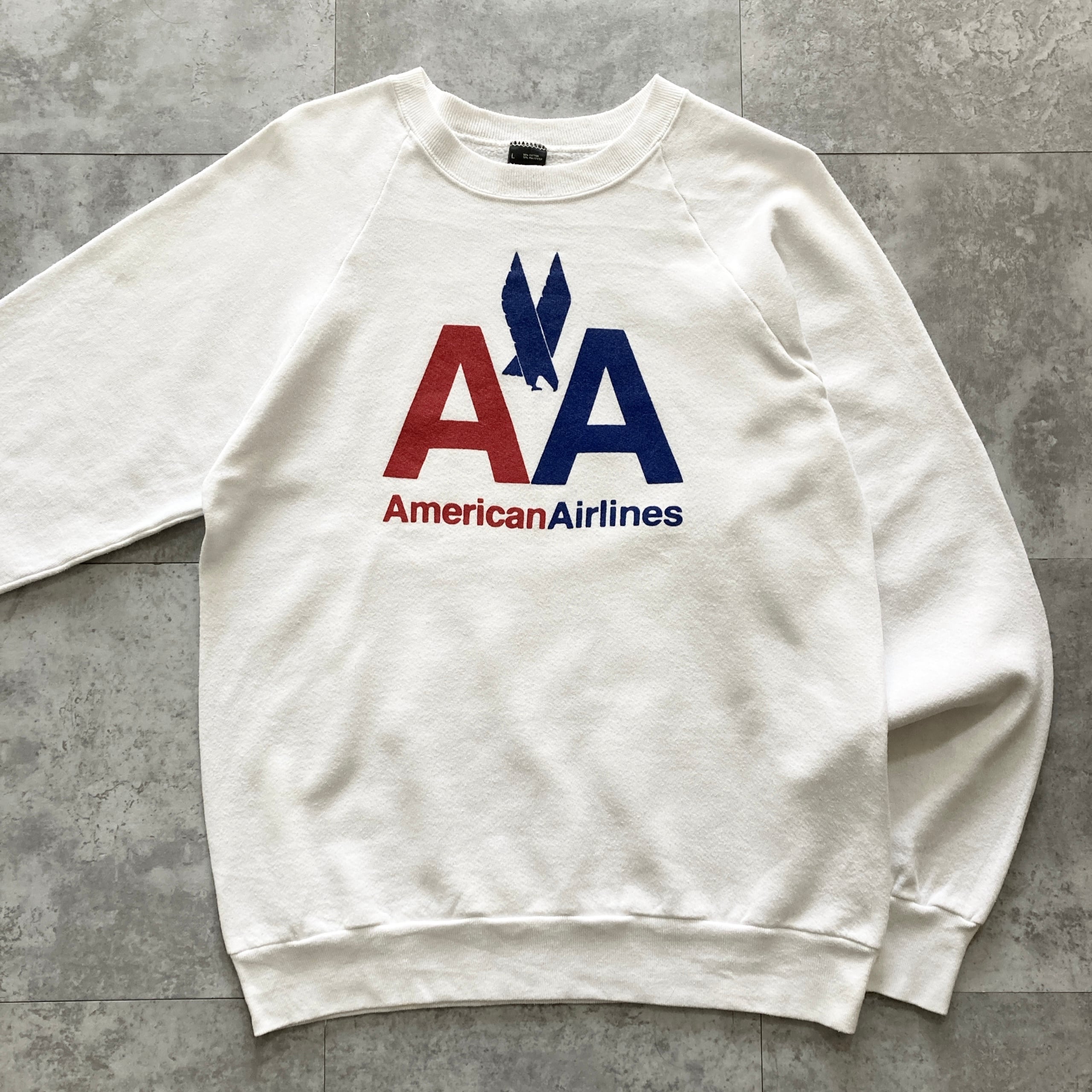 【USA製】企業物 90s SCREEN STARS スクリーンスターズ アメリカ製 American Airlines アメリカン航空 表記L ホワイト スウェット