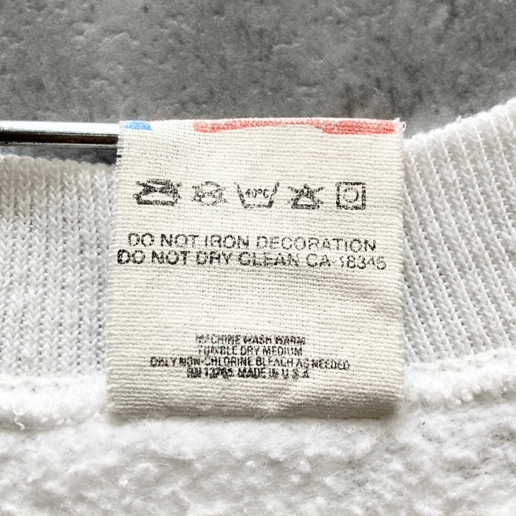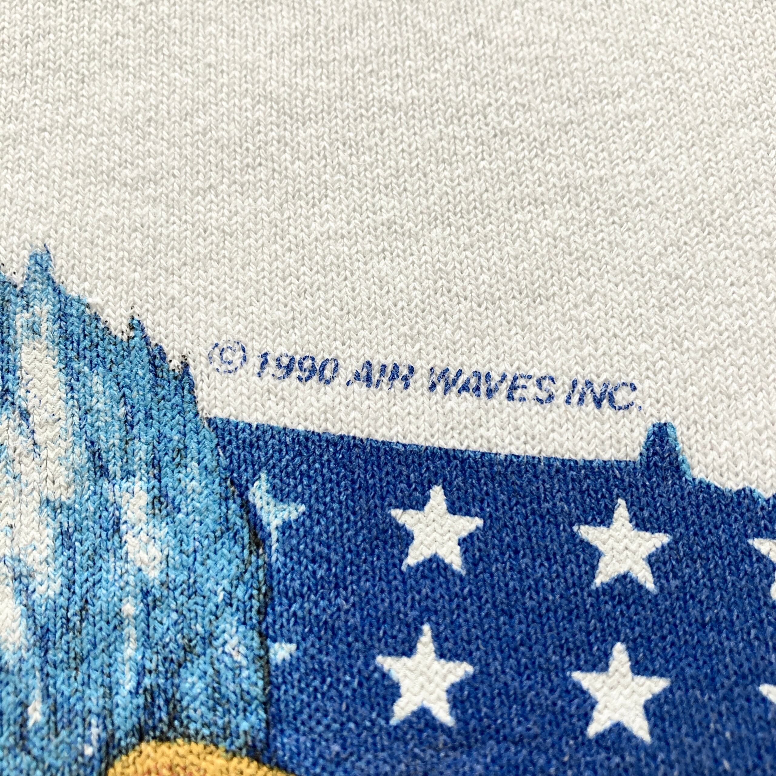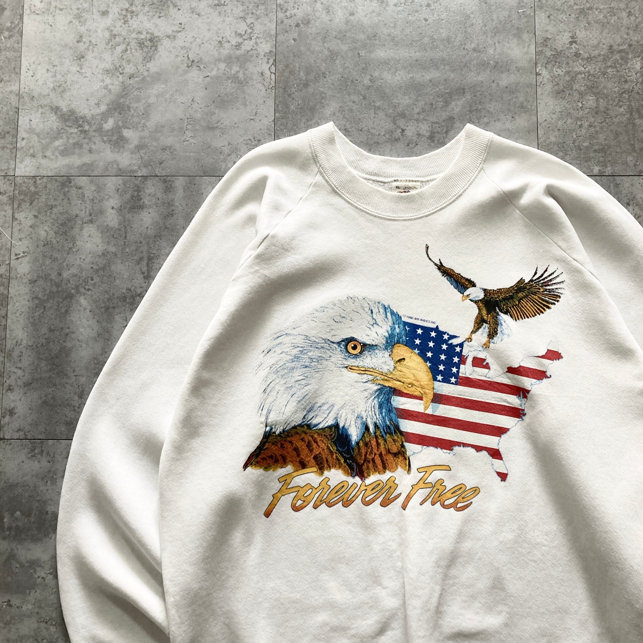 【USA製】90s FRUIT OF THE ROOM フルーツオブザルーム 表記XL アメリカ製 コピーライト1990年 Forever Free AIR WAVES INC. エアウェーブス社 星条旗 イーグル 鷹 鷲 ホワイト スウェット | Only_Denim+